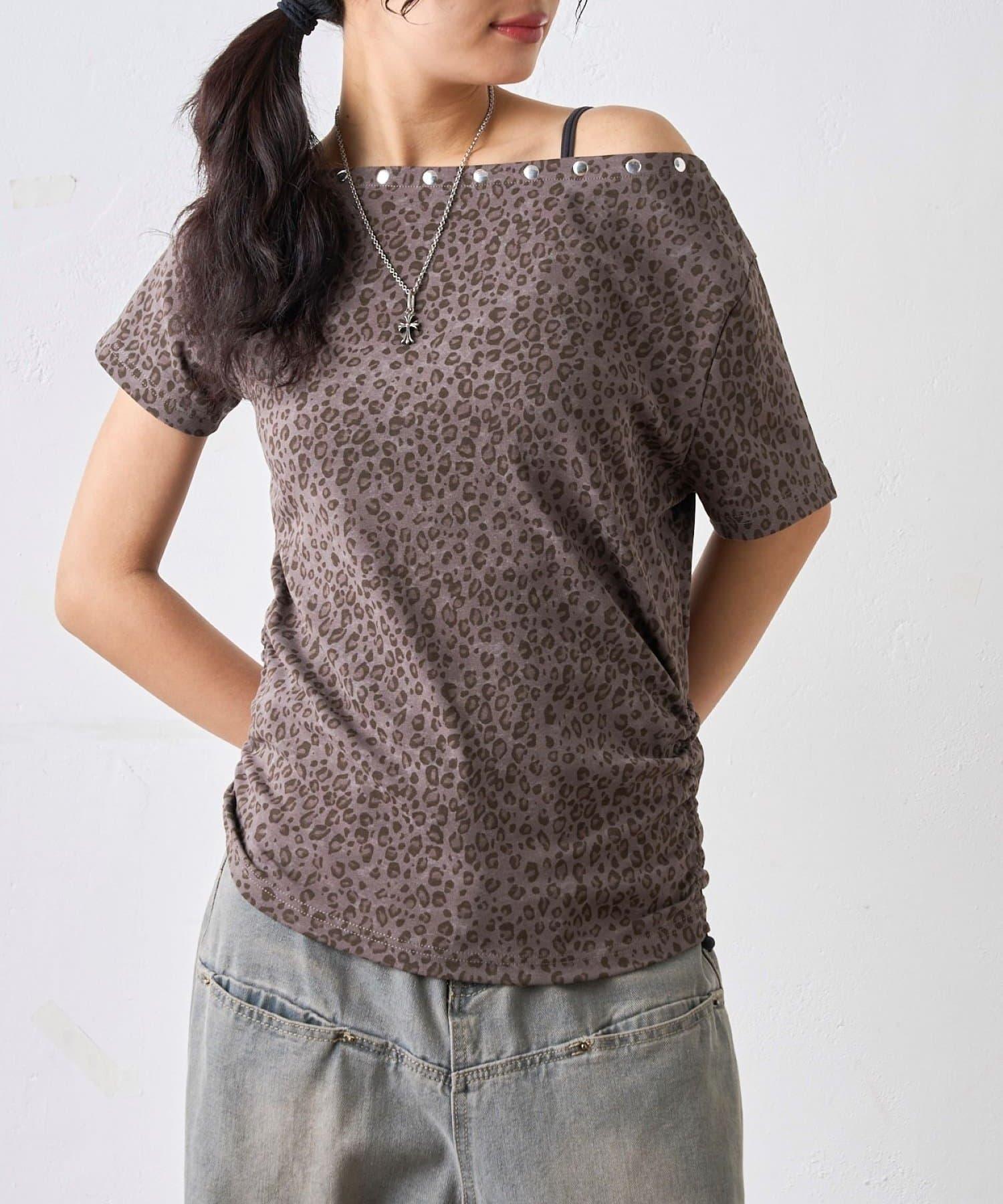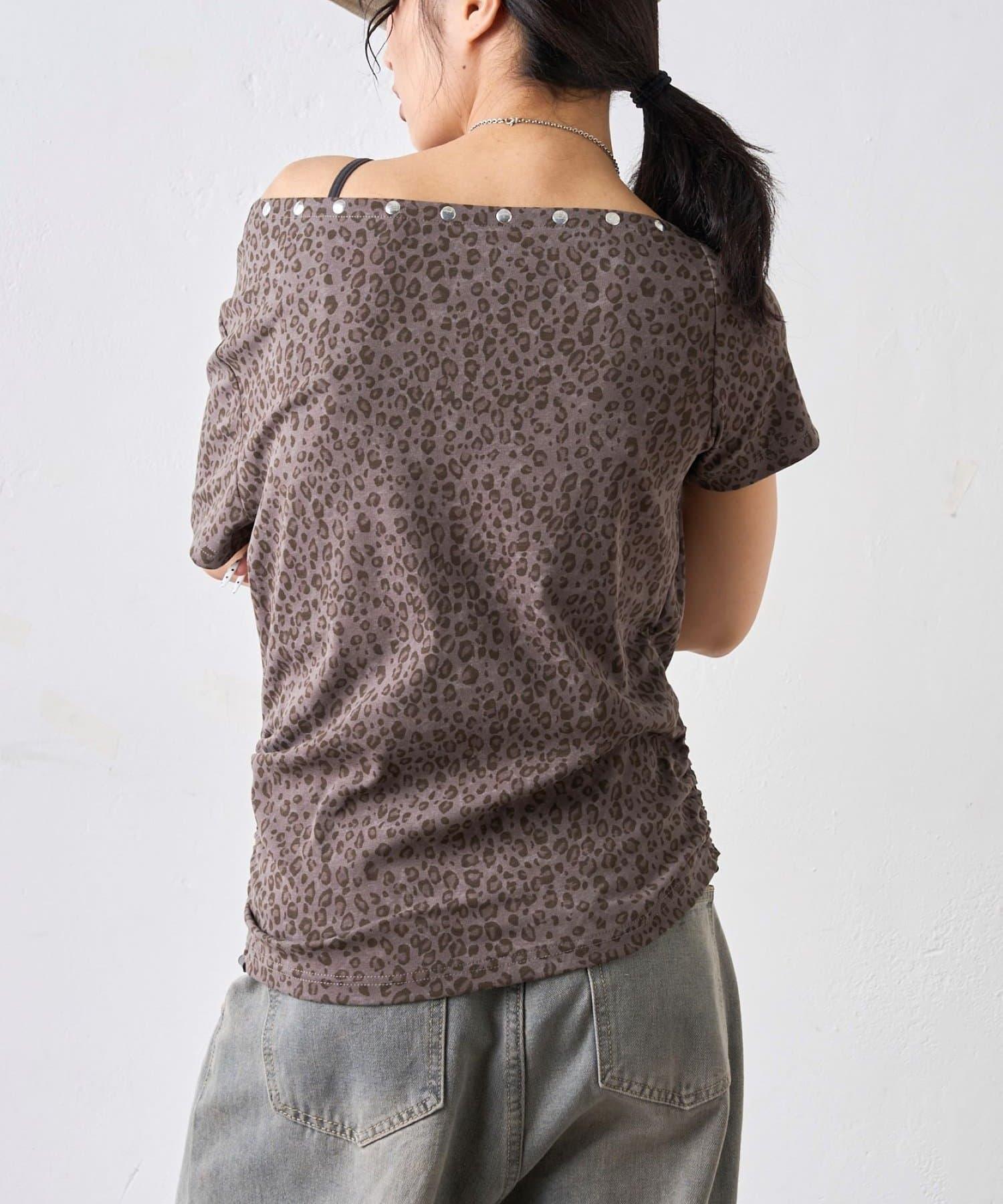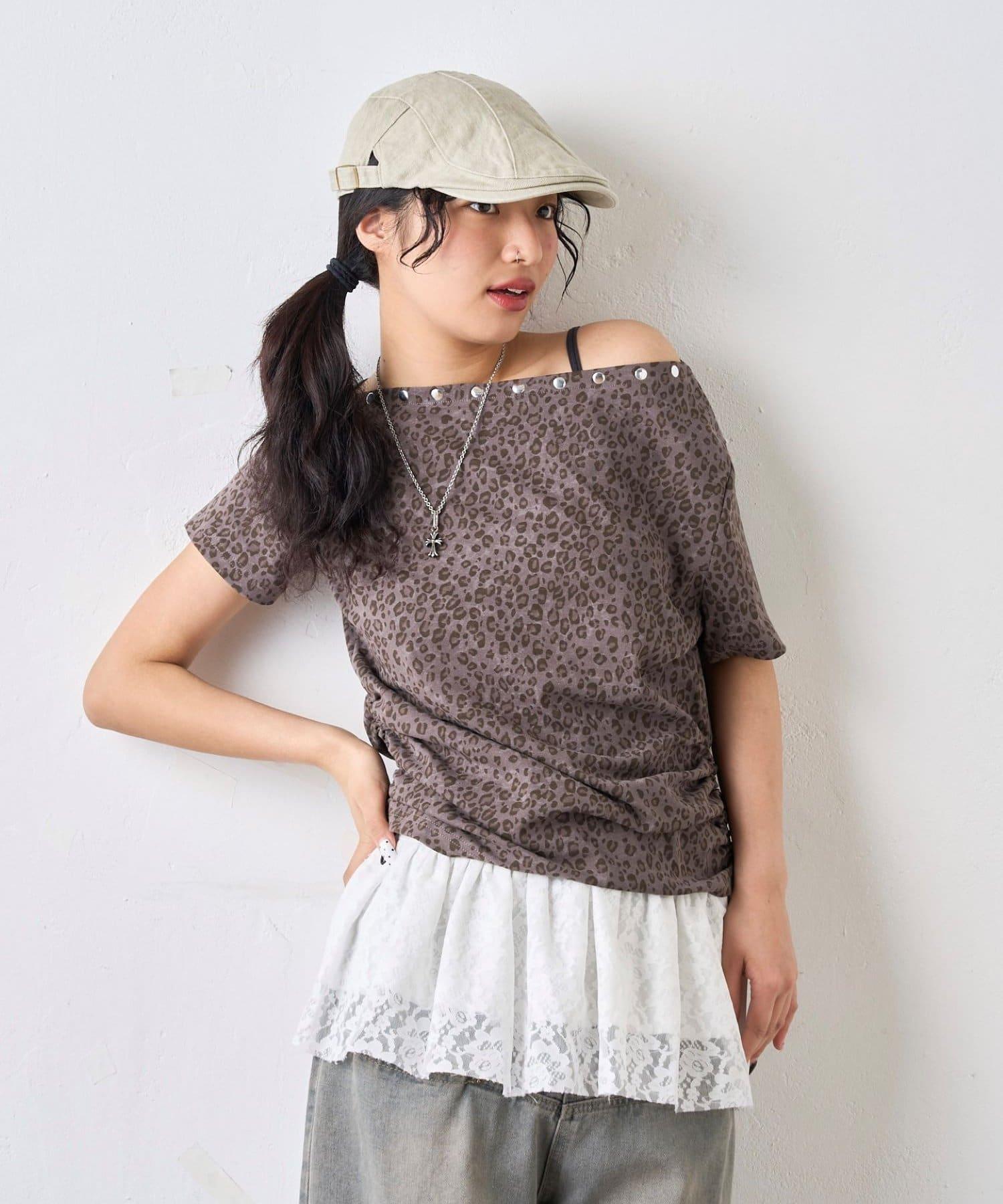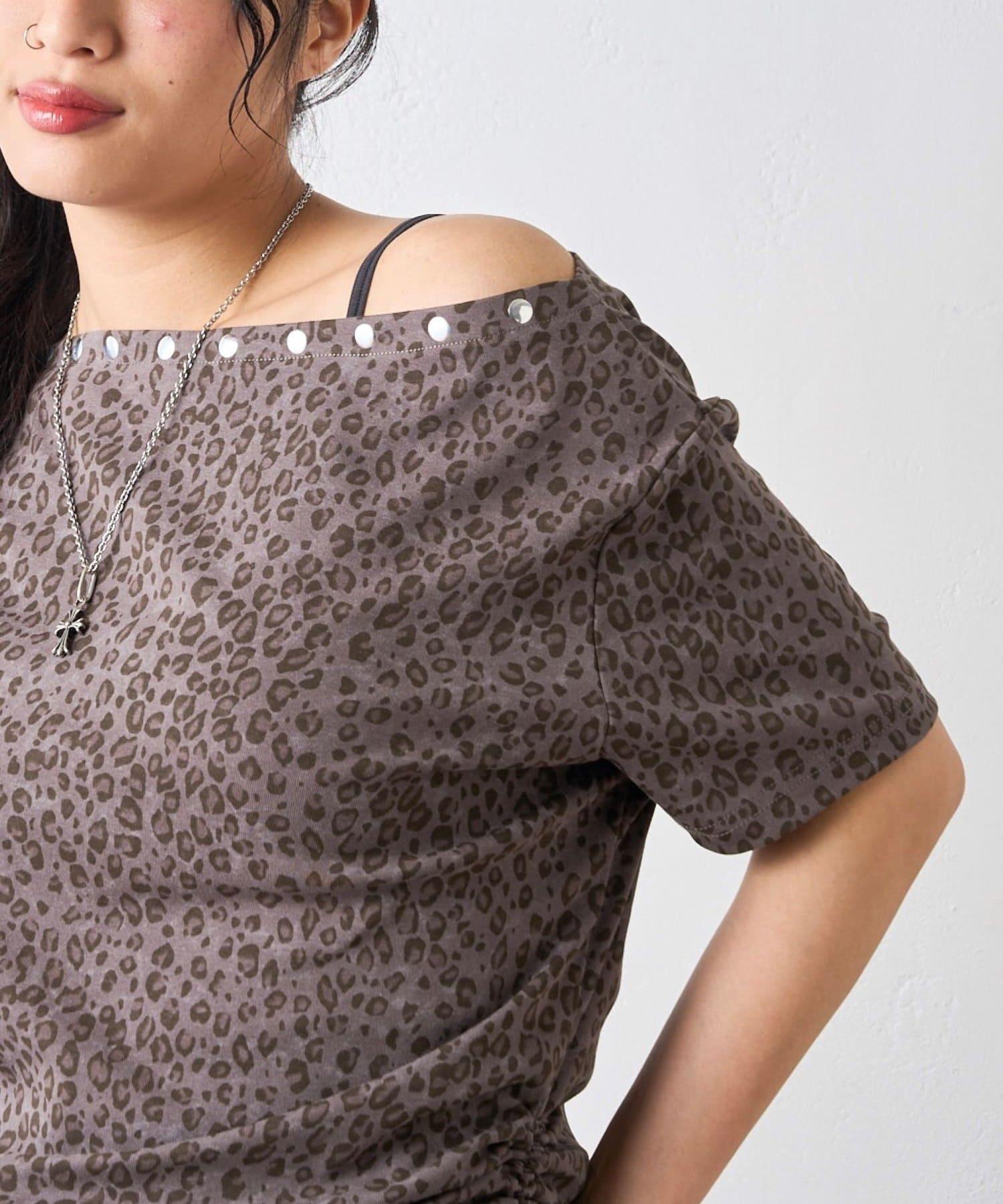 迷彩和豹紋印花!流行的鉚釘單肩上衣。