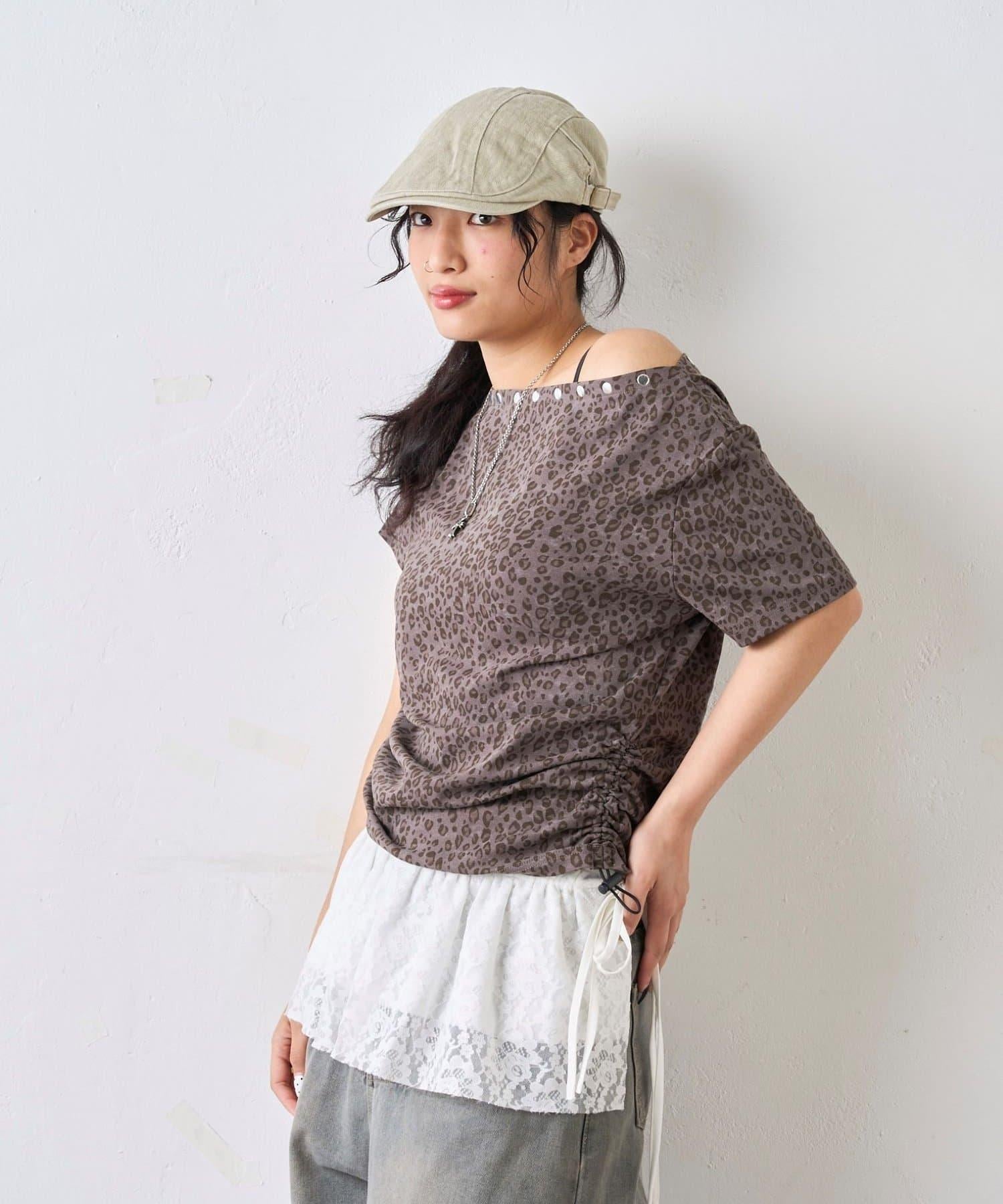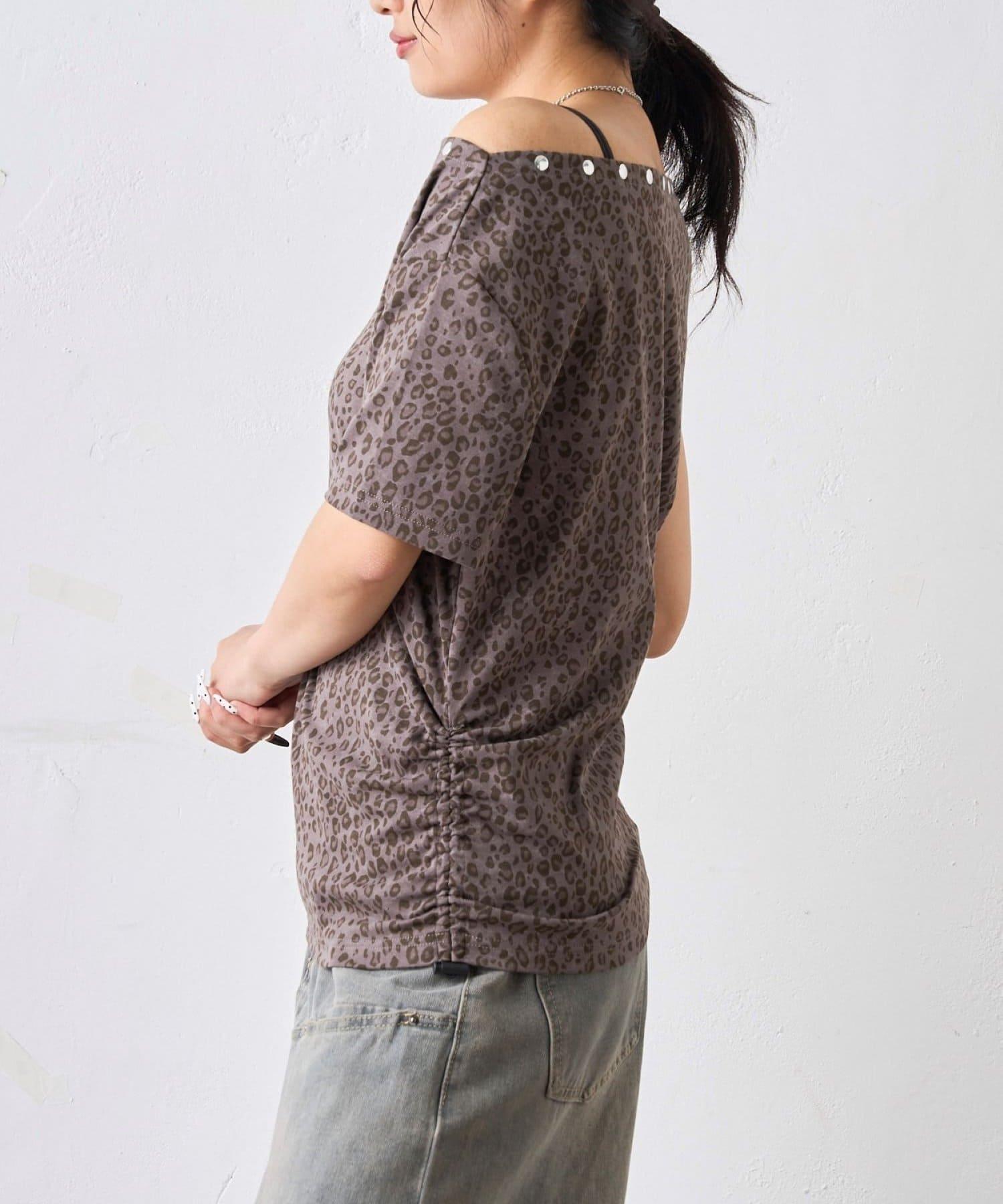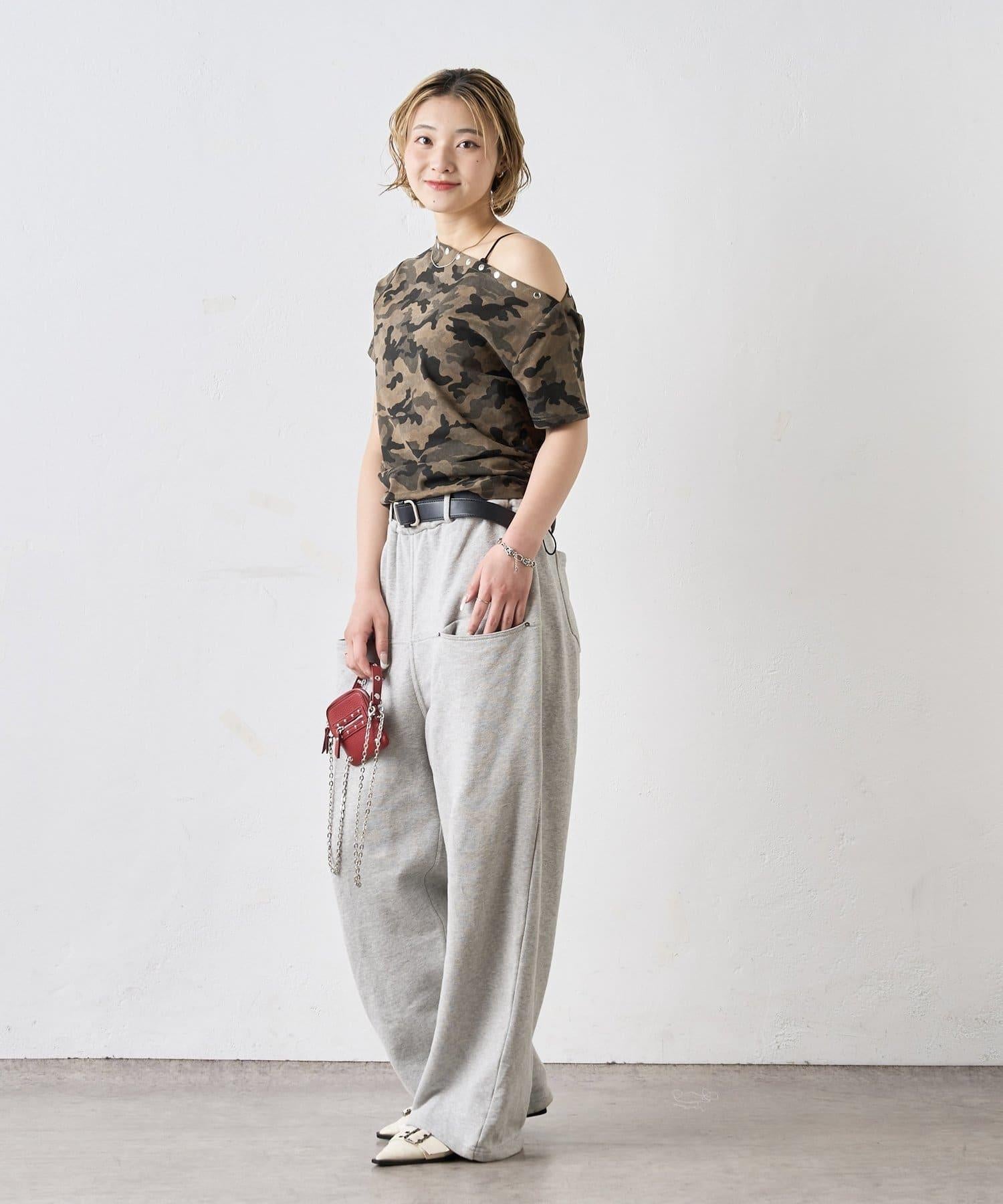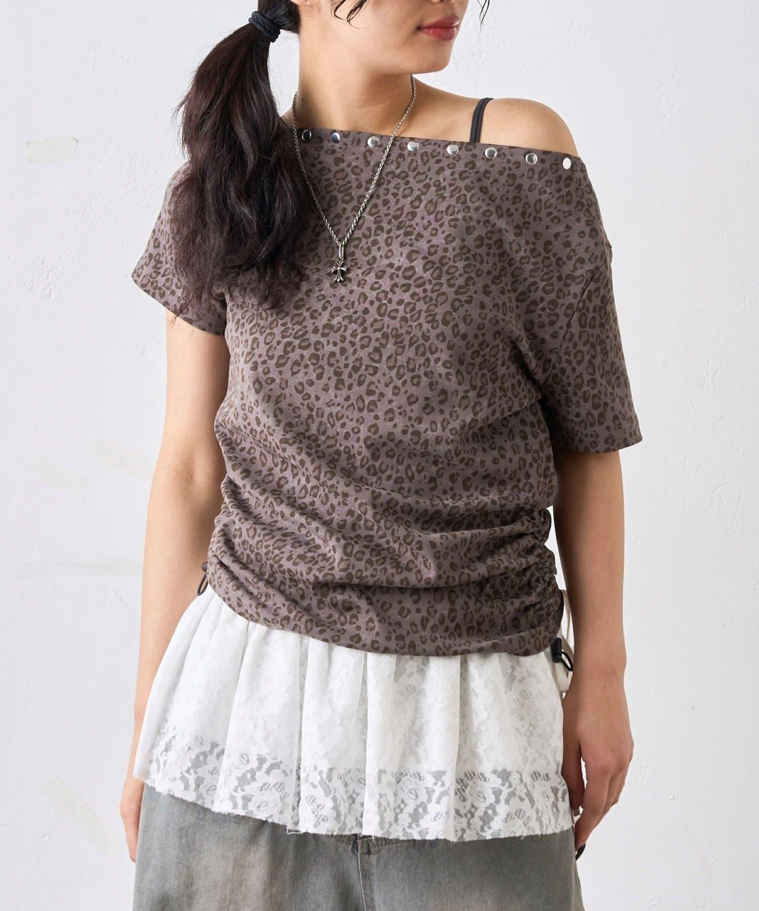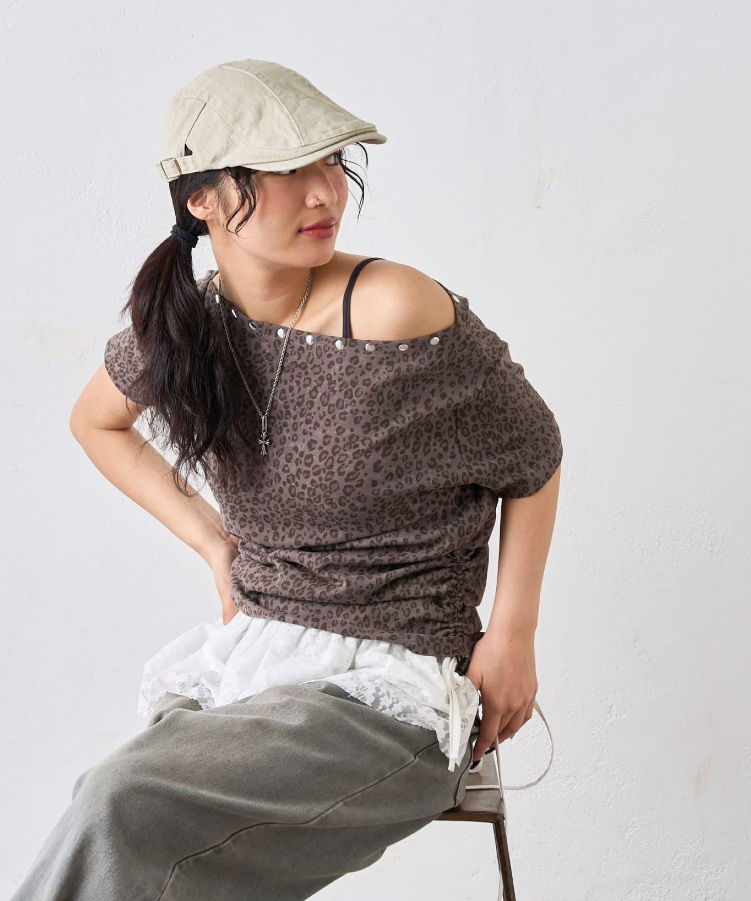 迷彩和豹紋印花!流行的鉚釘單肩上衣。