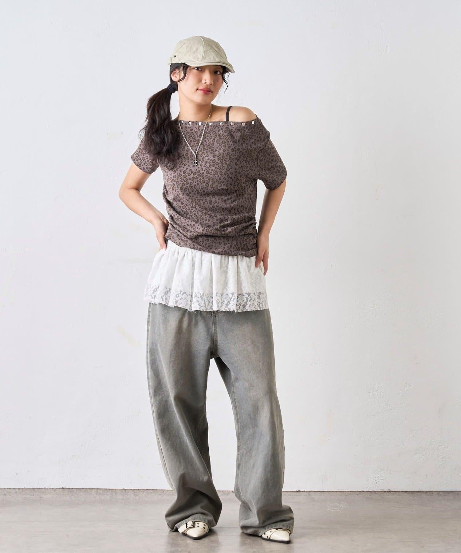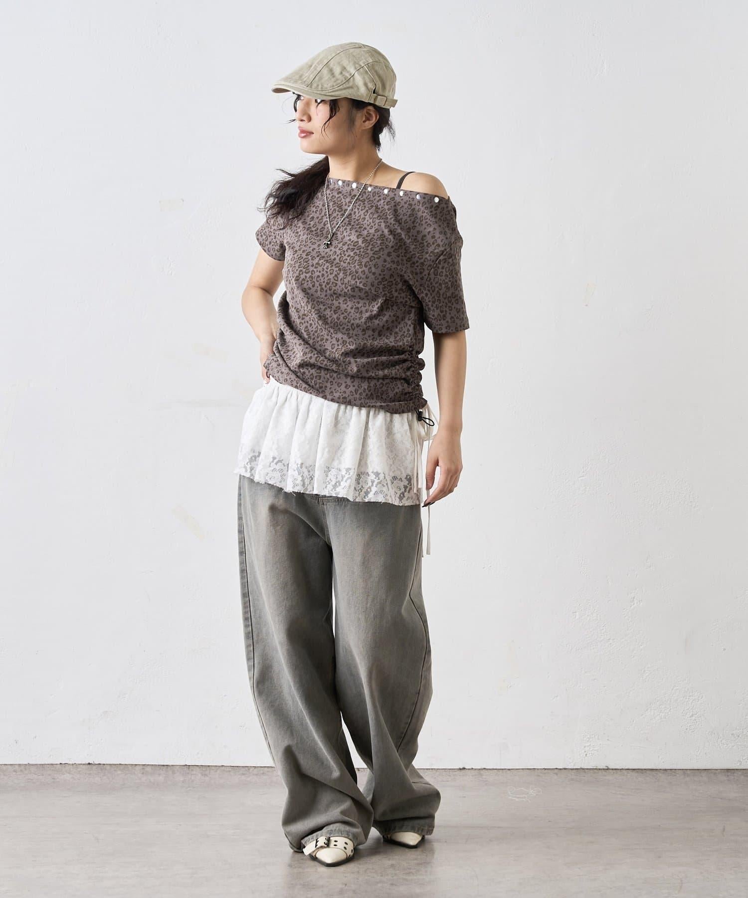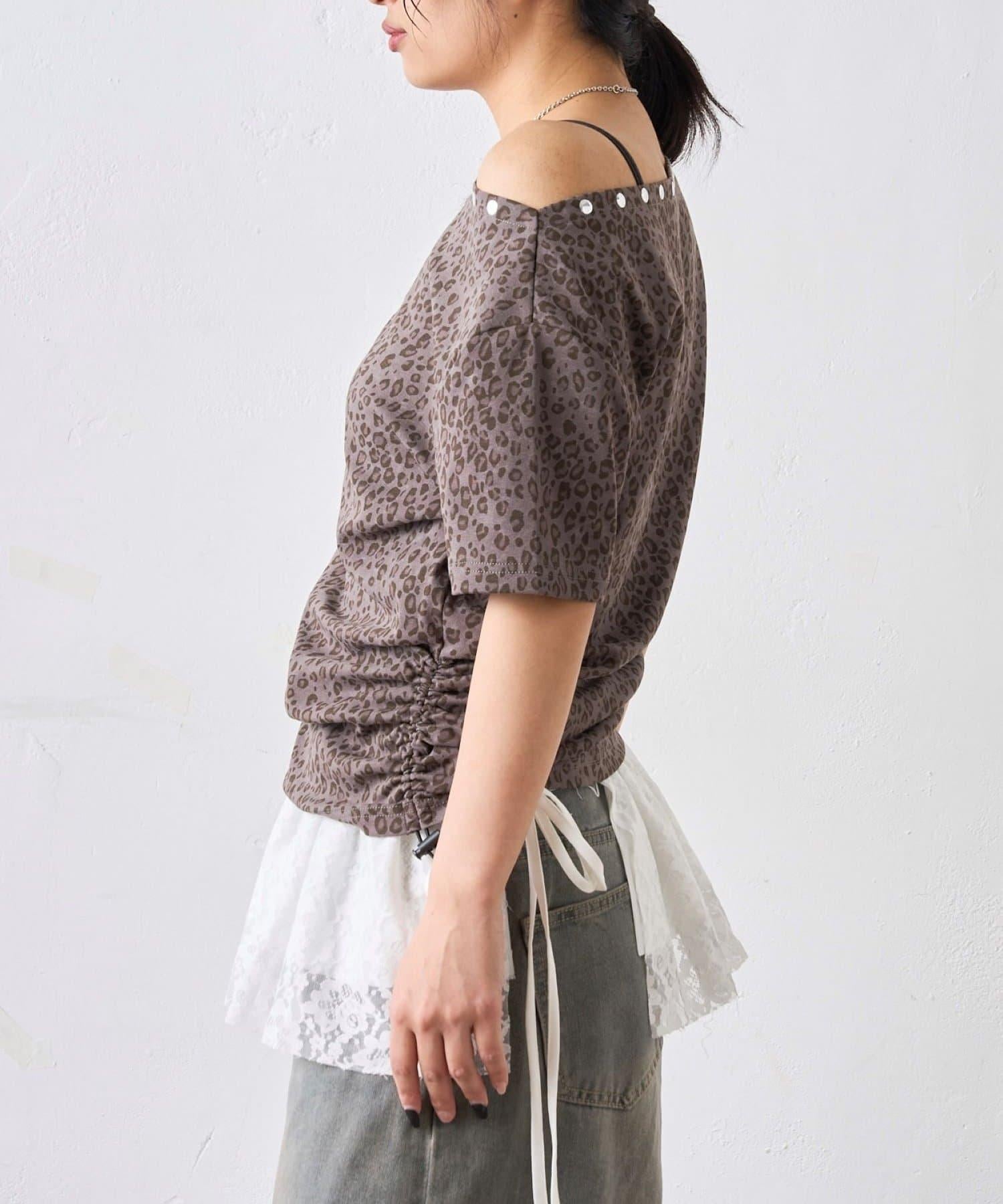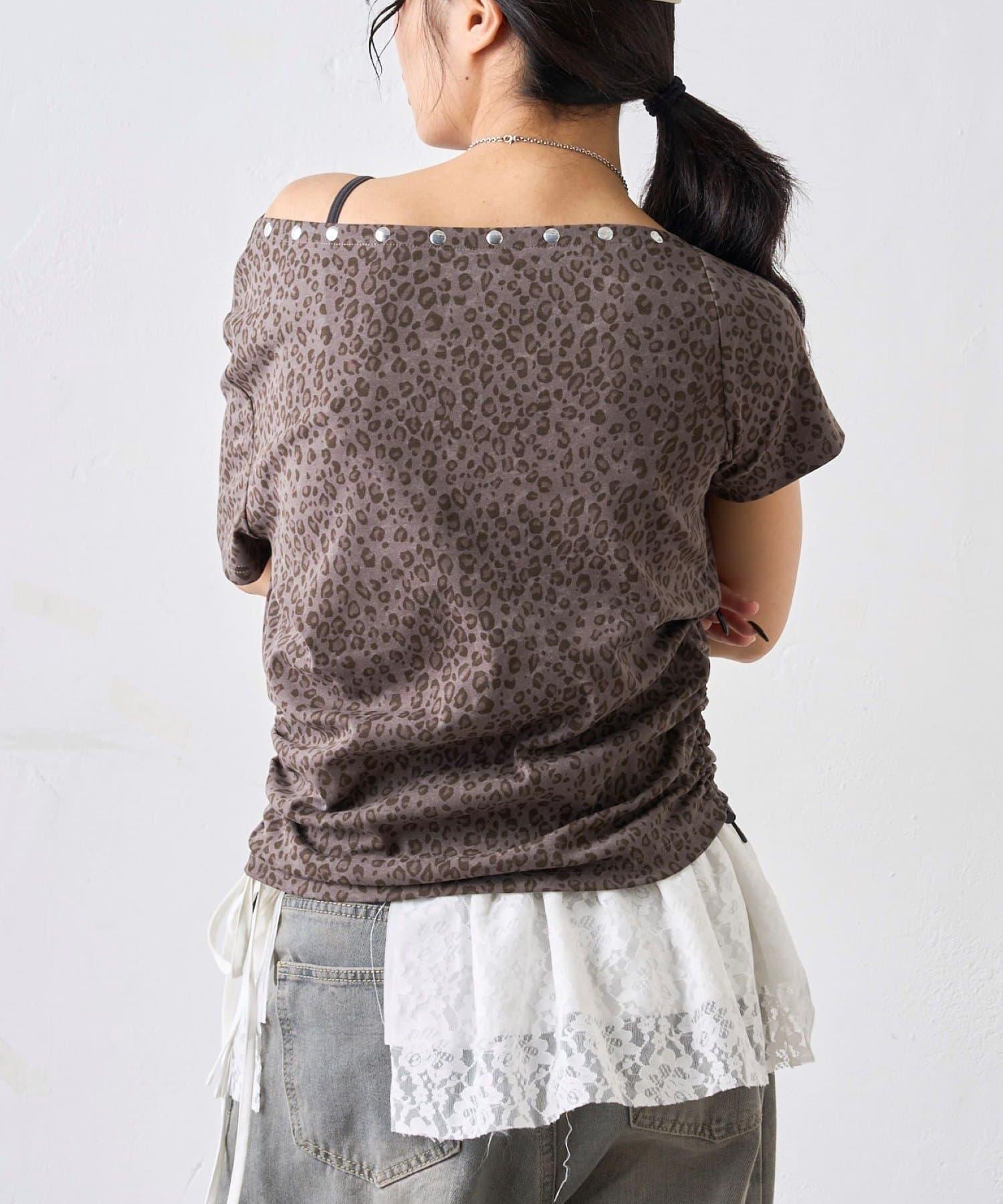 迷彩和豹紋印花!流行的鉚釘單肩上衣。