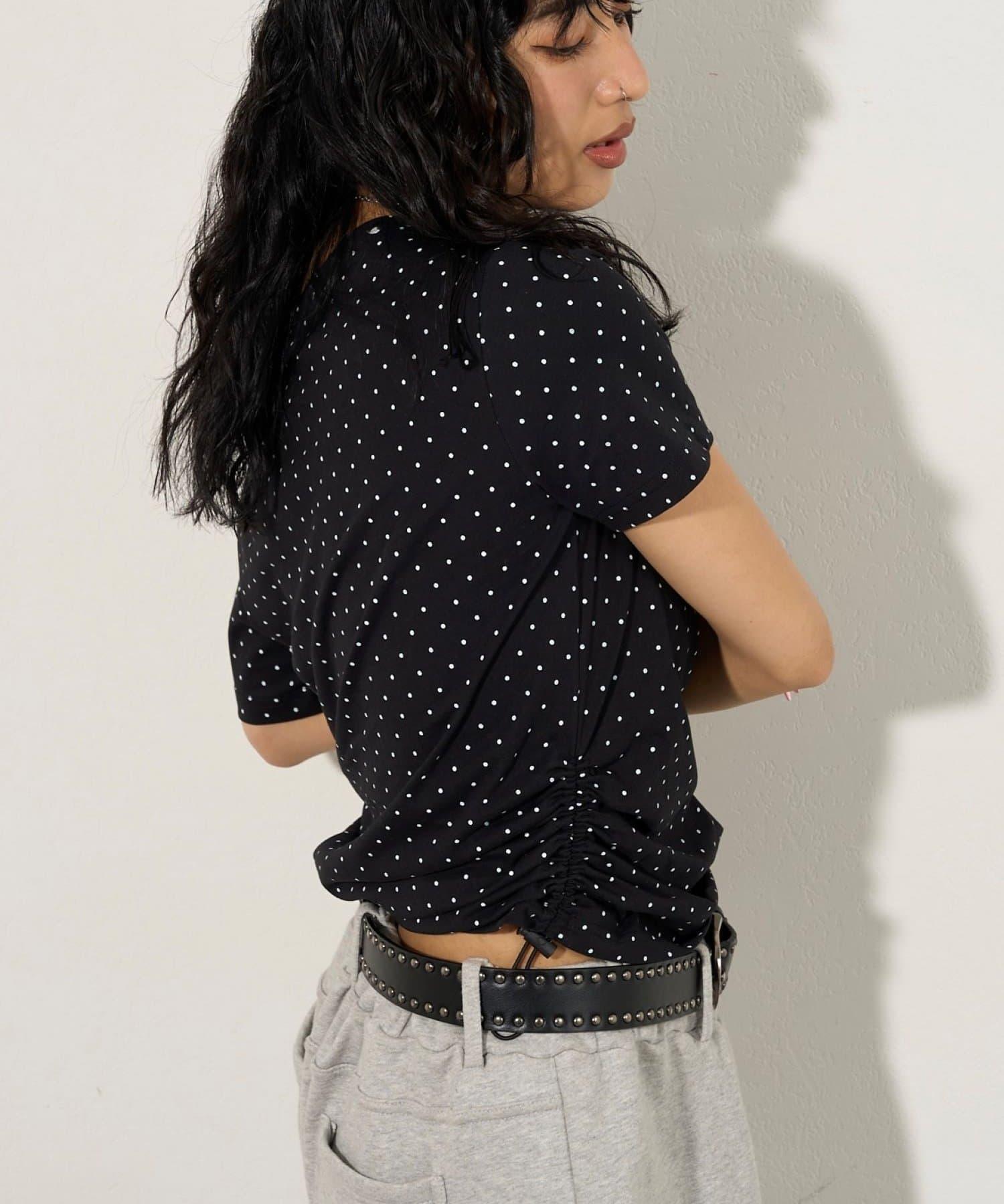 側面抽繩設計的上衣下襬呈圓形,十分可愛。