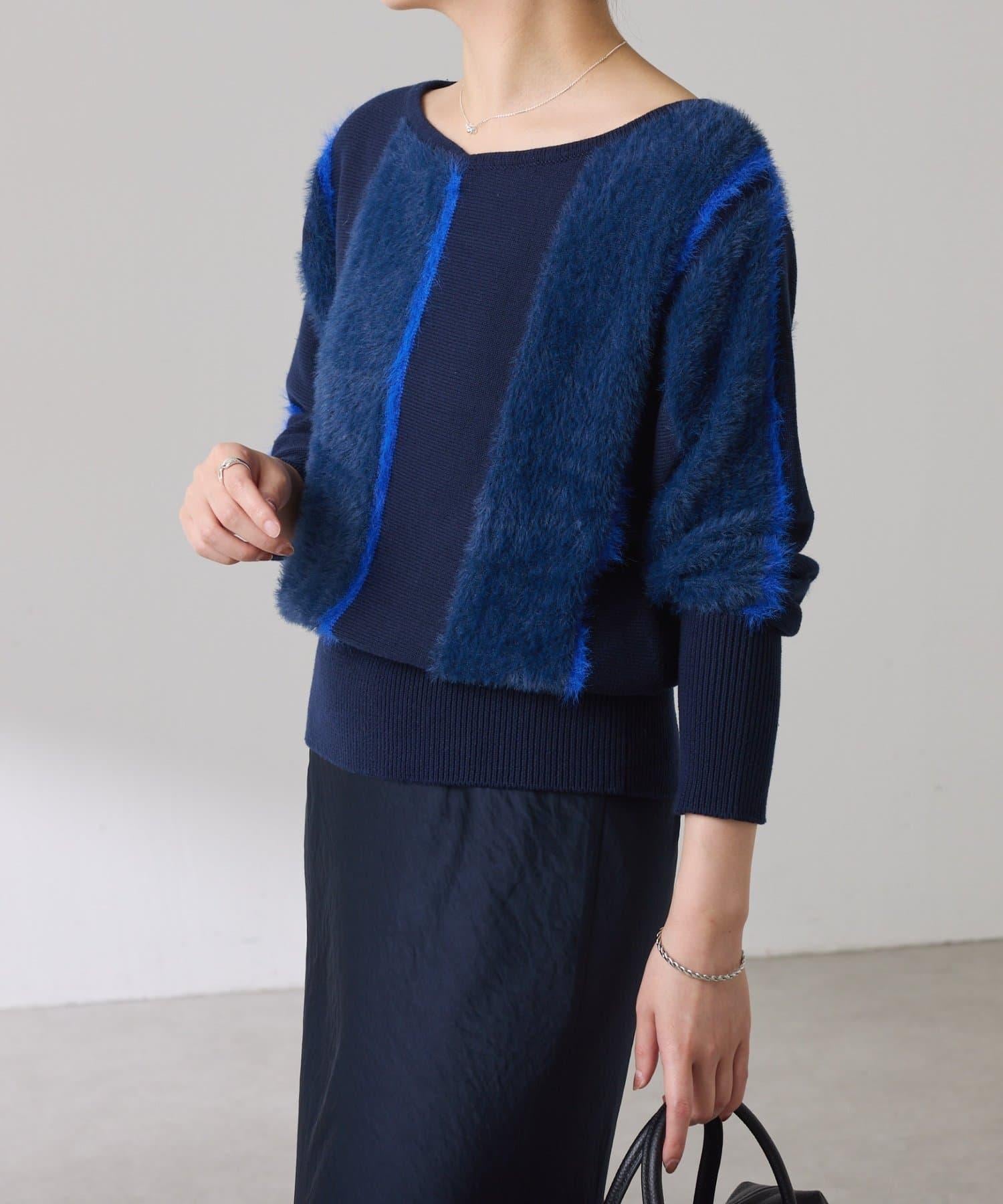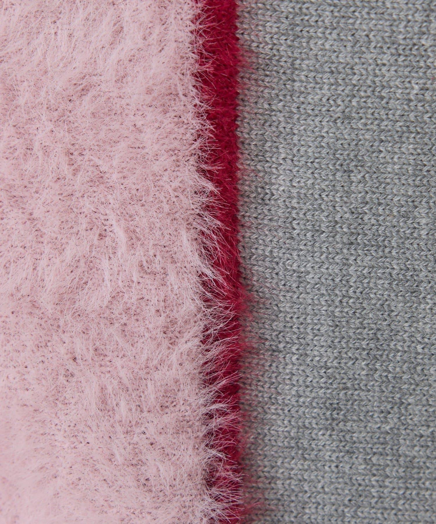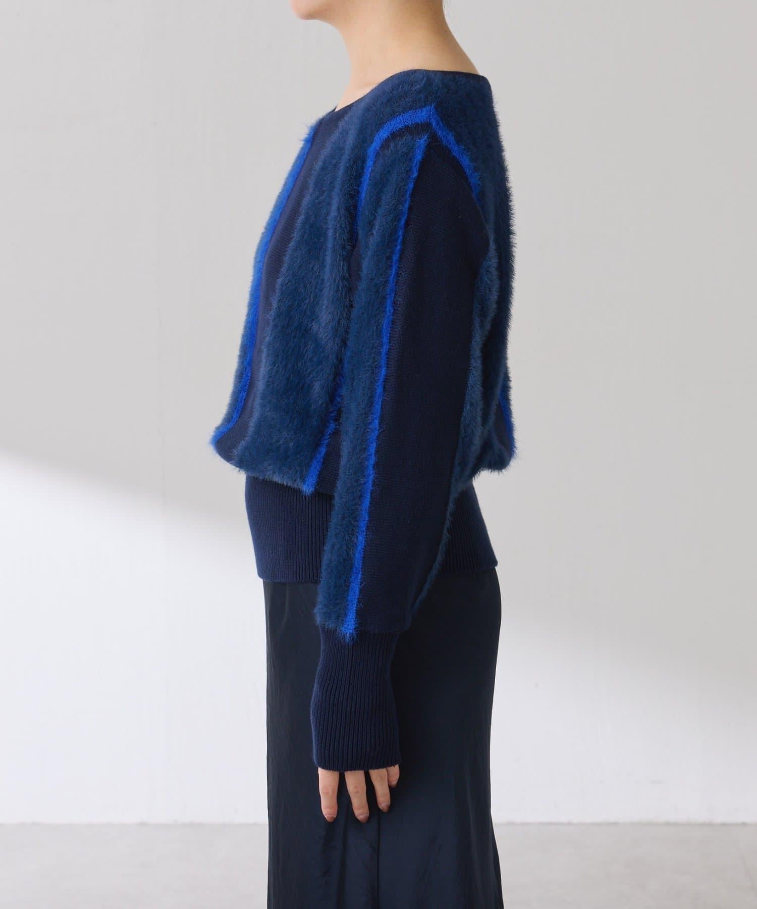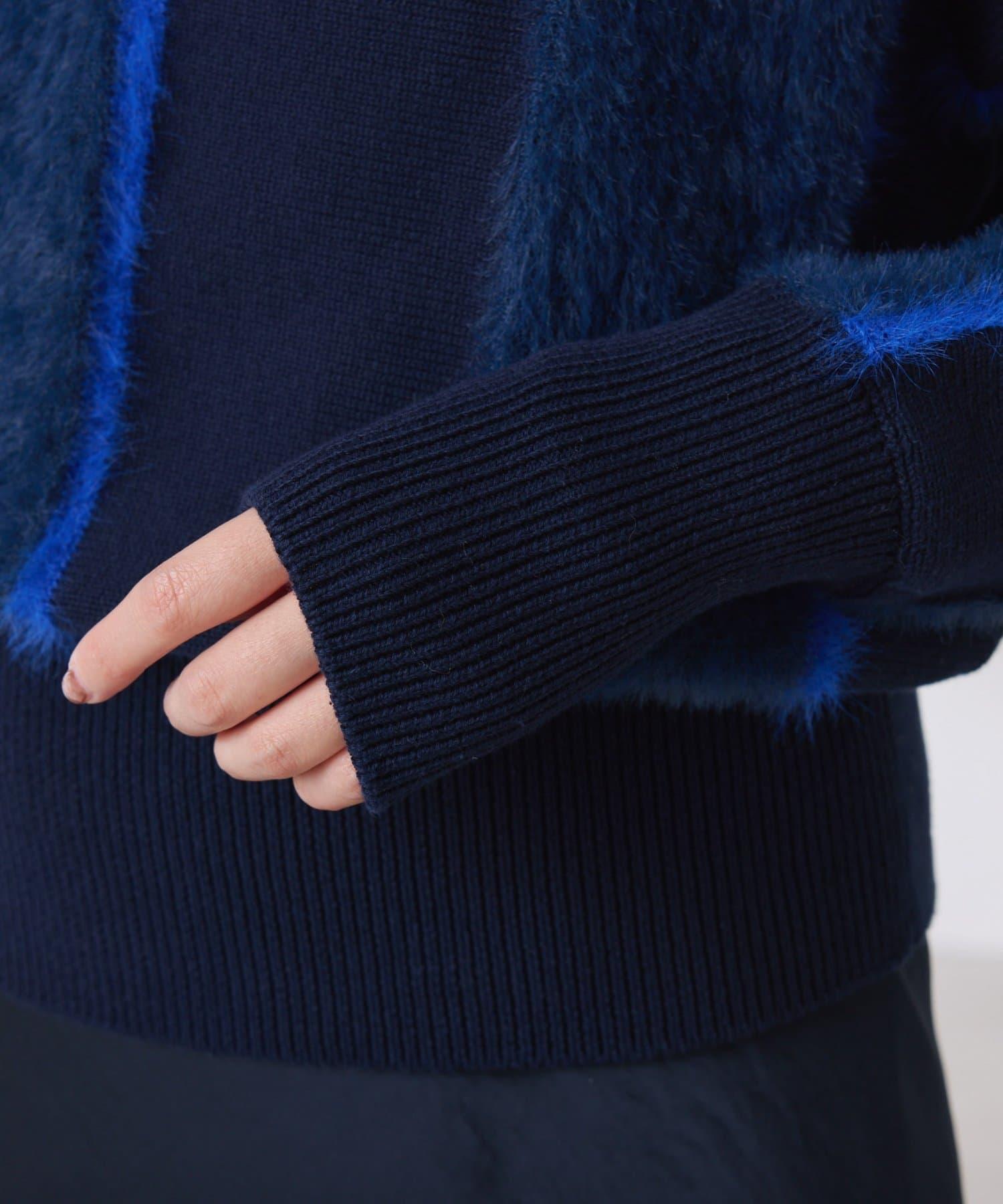 這款針織衫採用了絨毛較長的紗線混合編織,使其更具表現力。