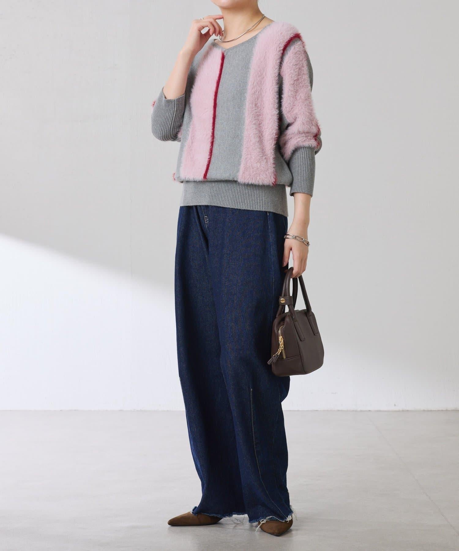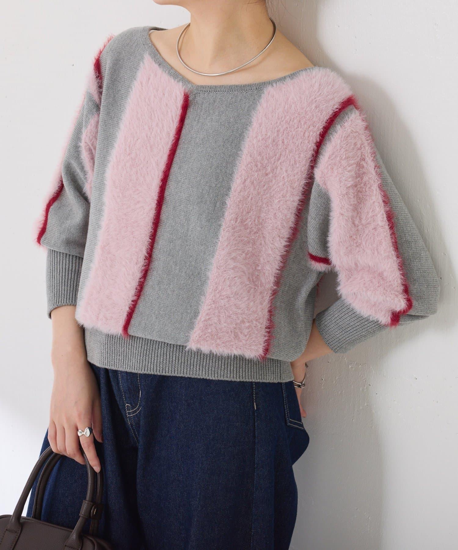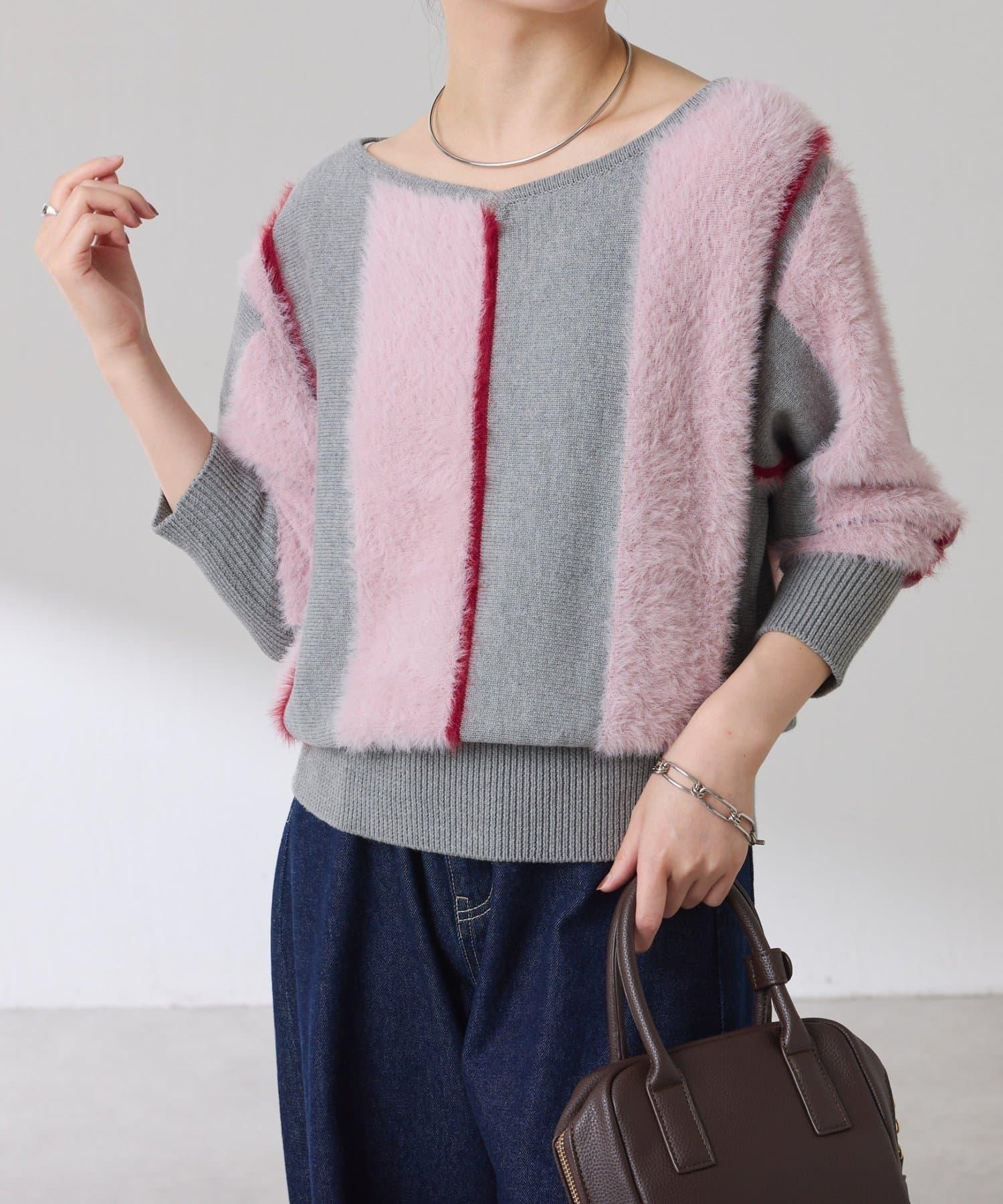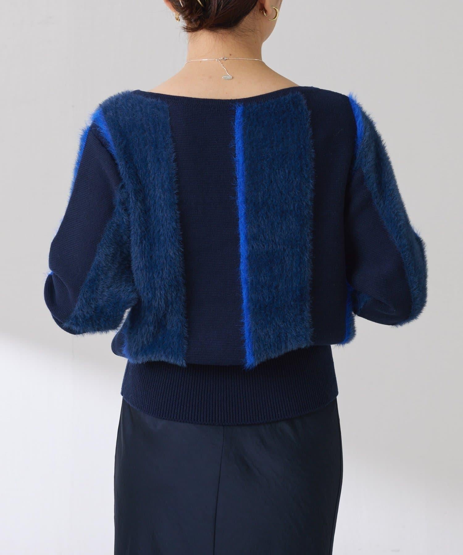 這款針織衫採用了絨毛較長的紗線混合編織,使其更具表現力。