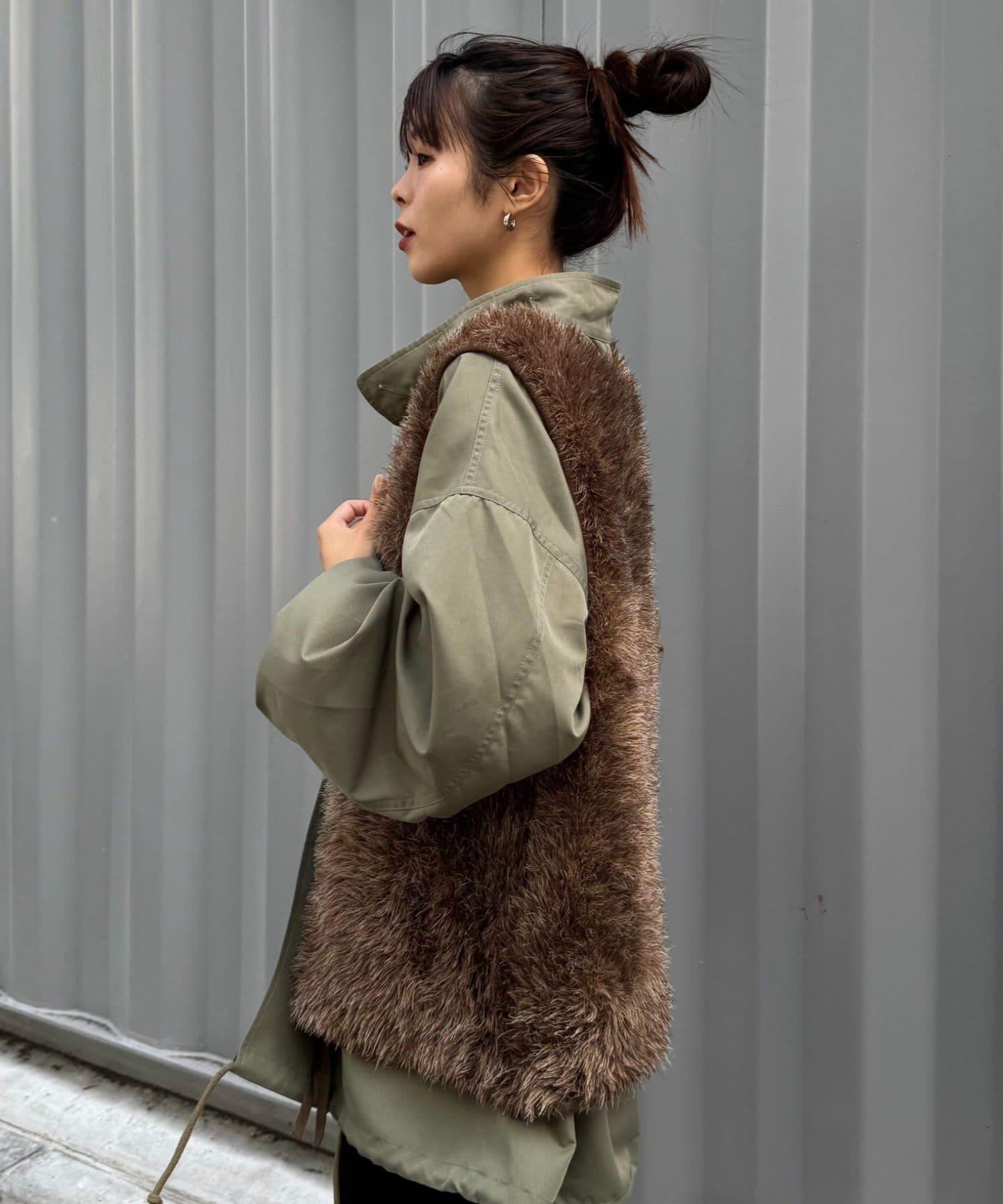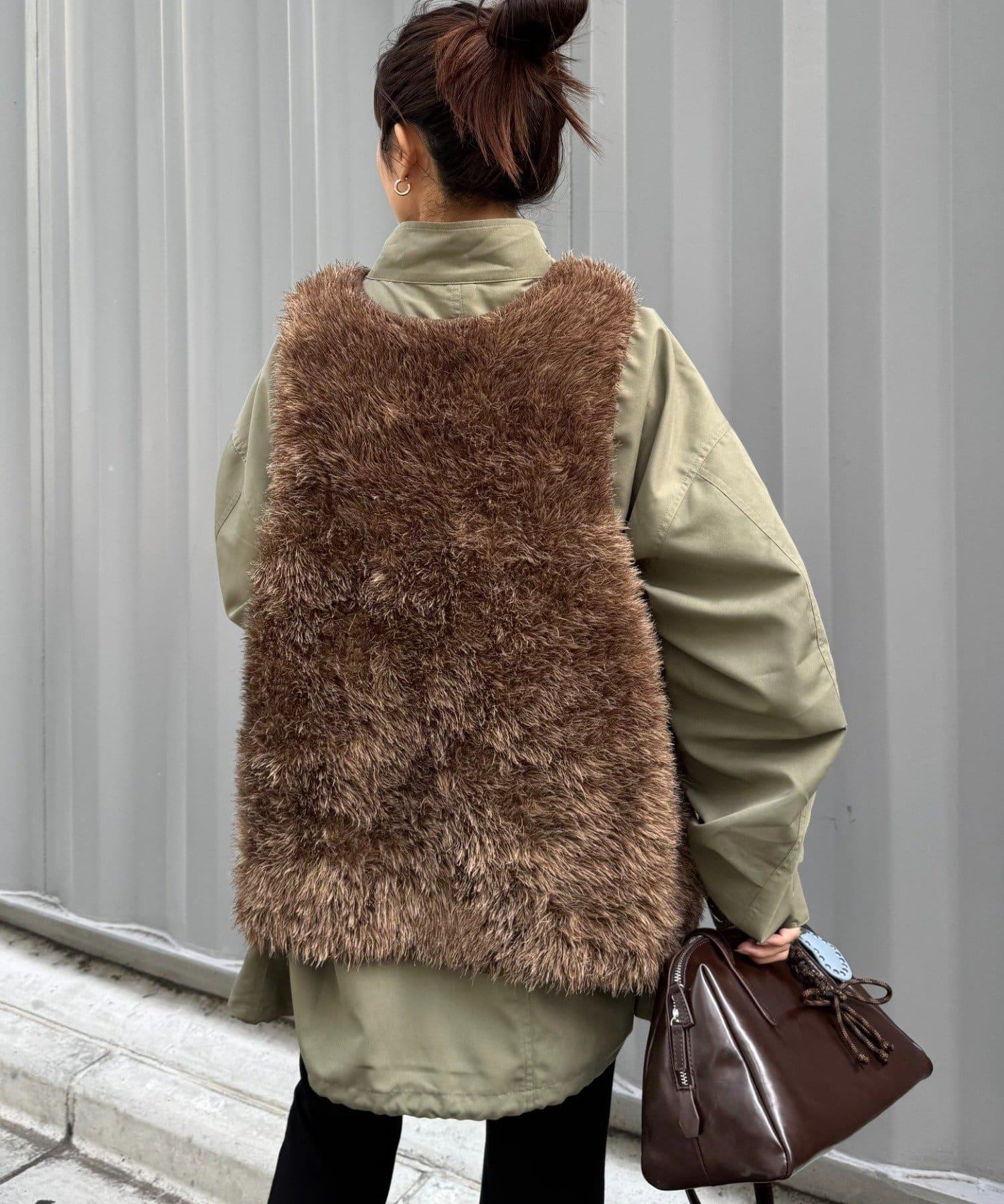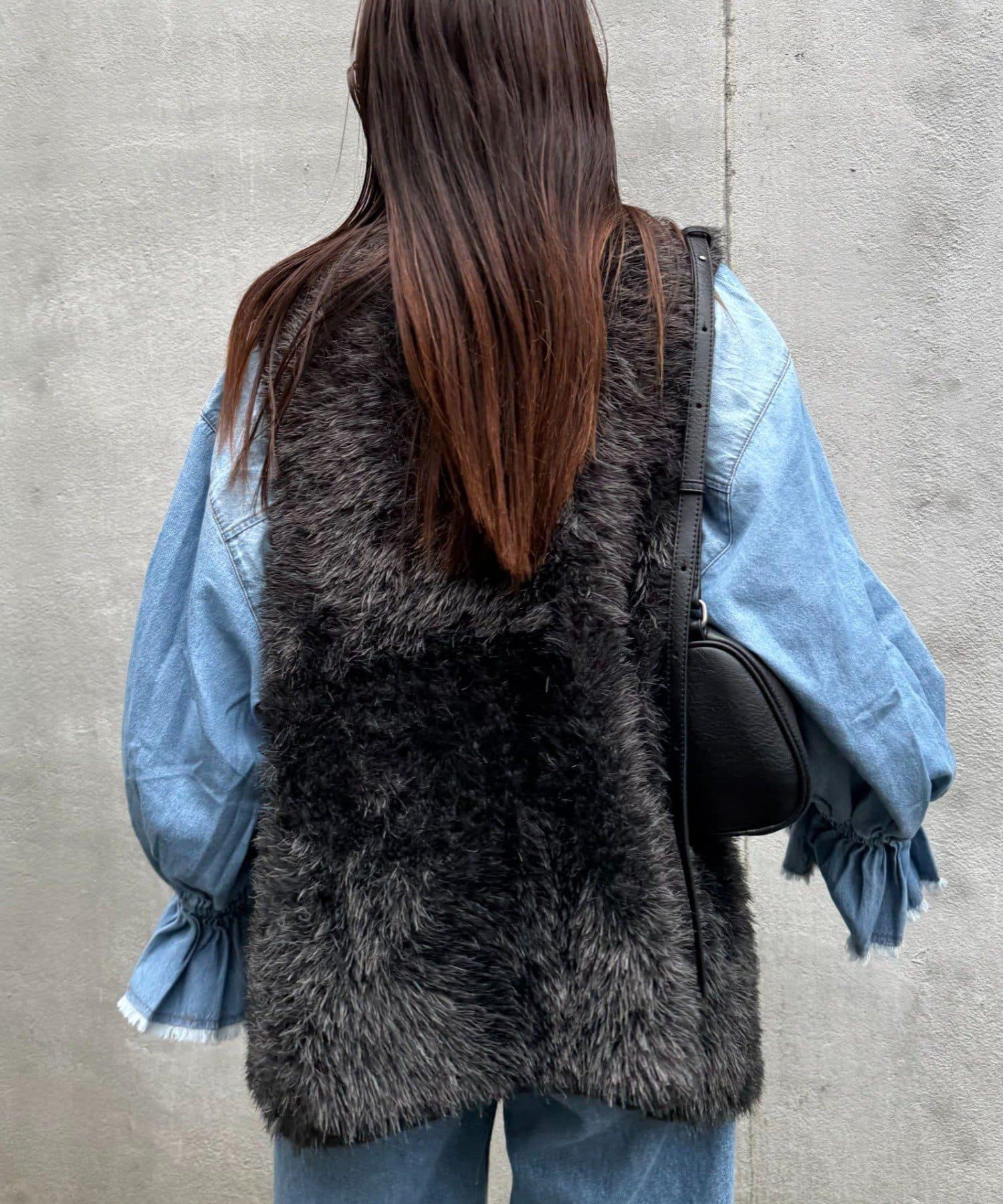 拉鍊馬甲採用絨毛材料剪裁而成!