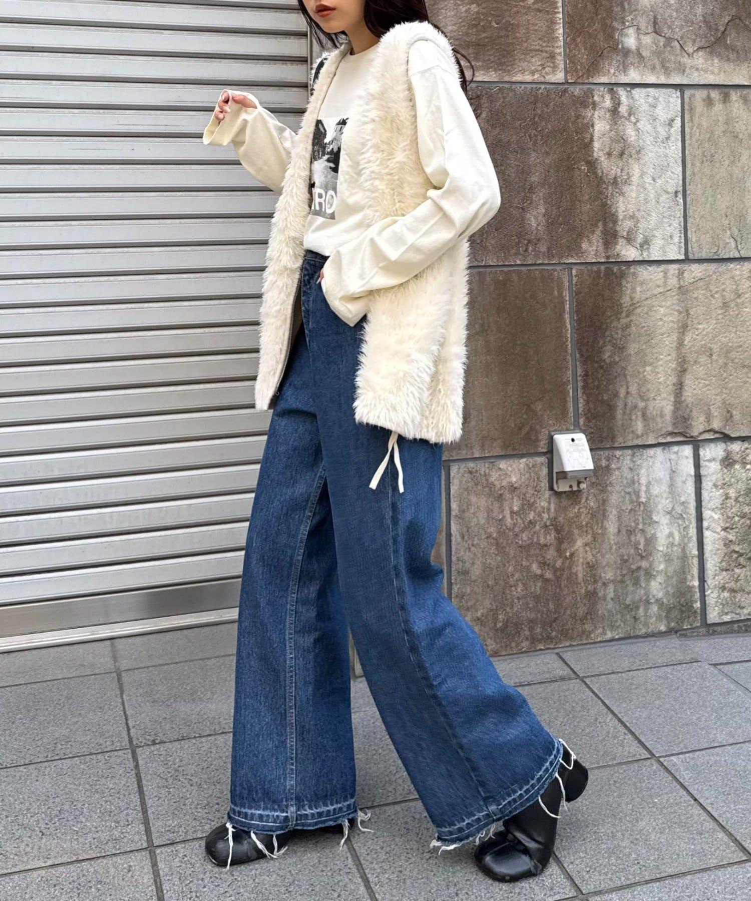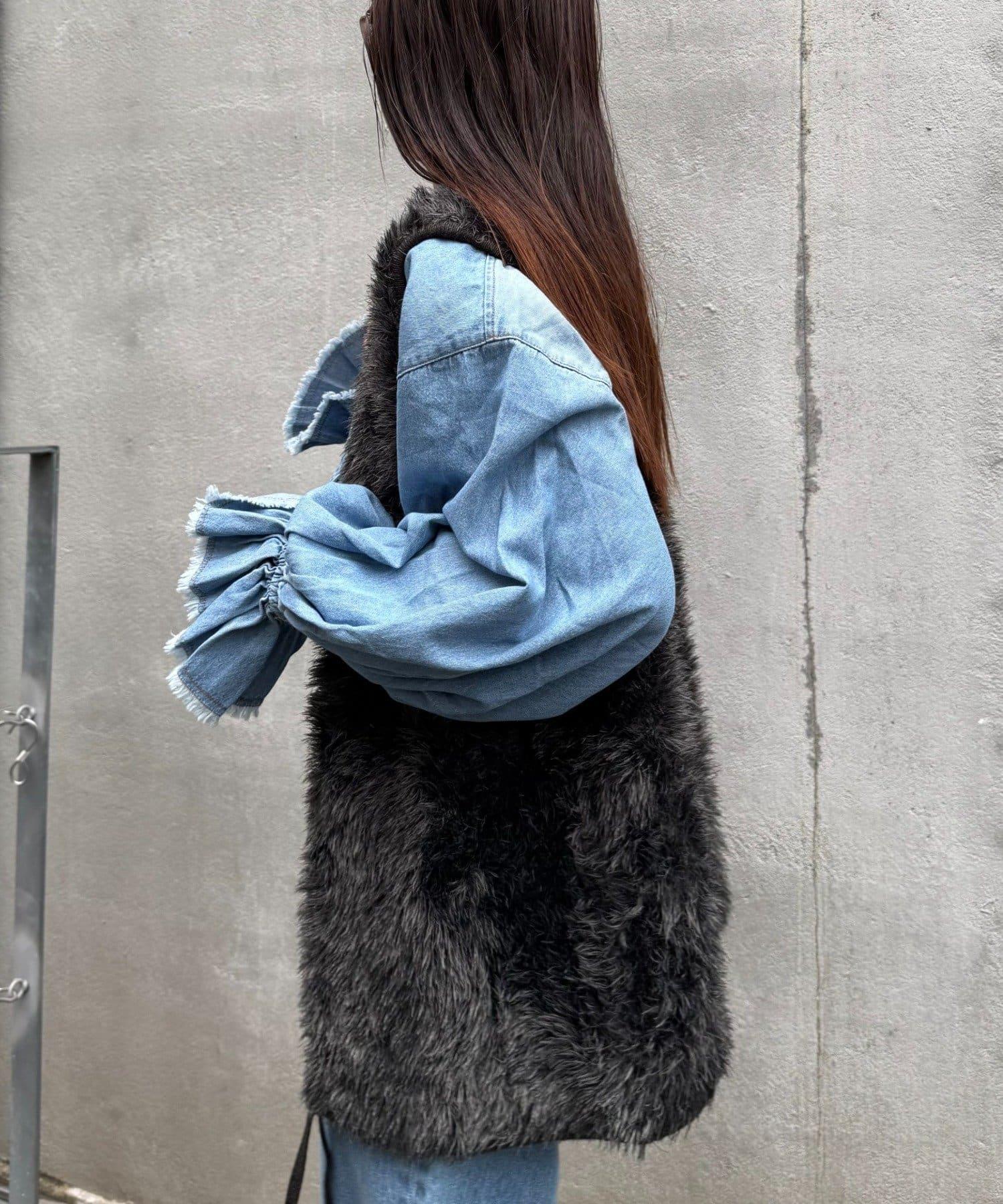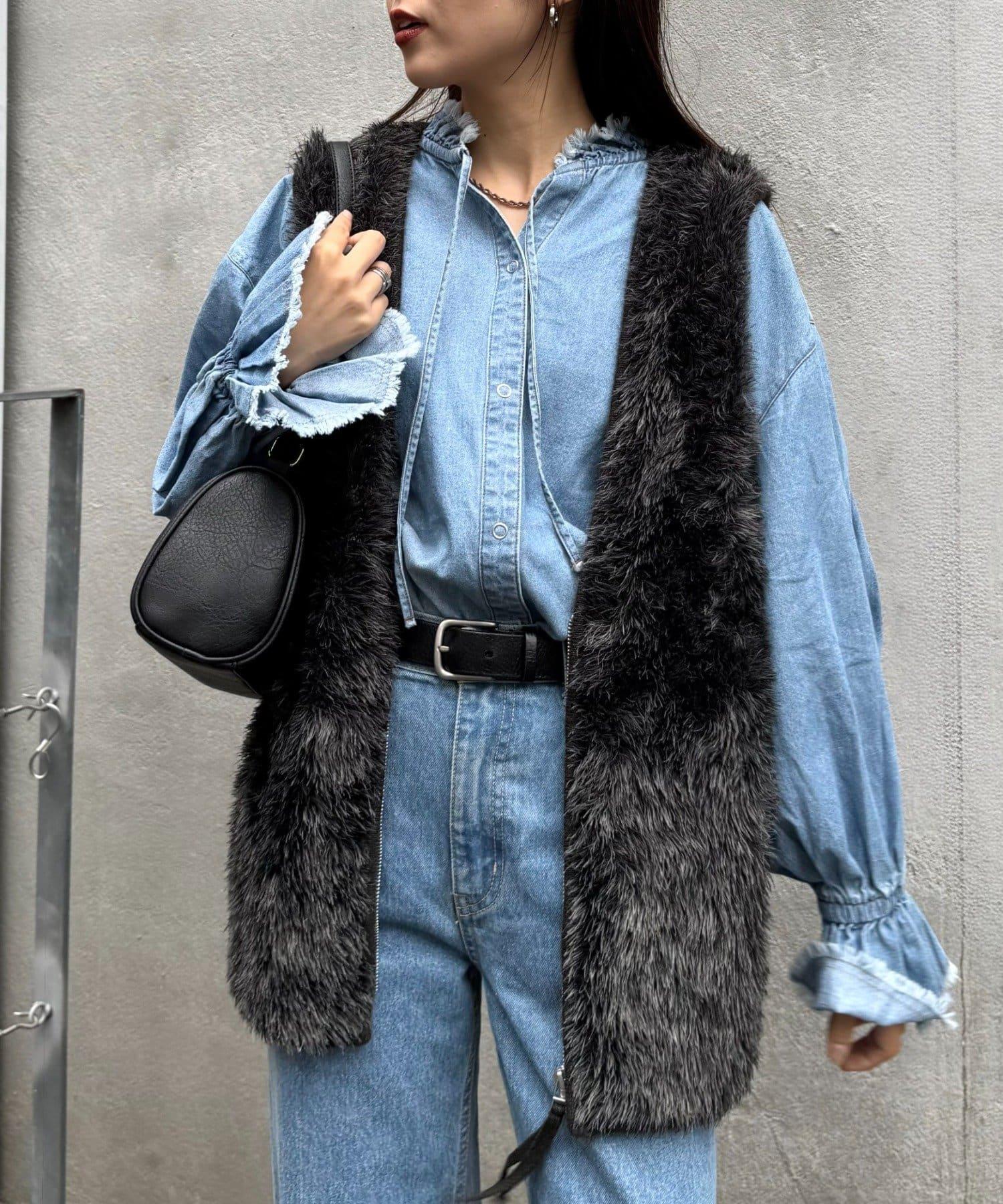 拉鍊馬甲採用絨毛材料剪裁而成!