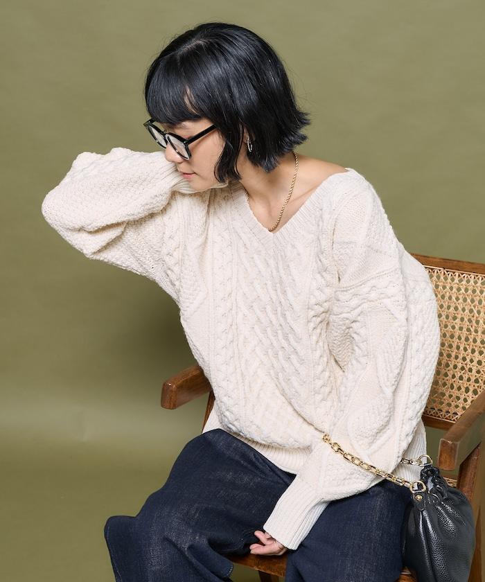 V 領針織衫給人以成熟、輕鬆的感覺。