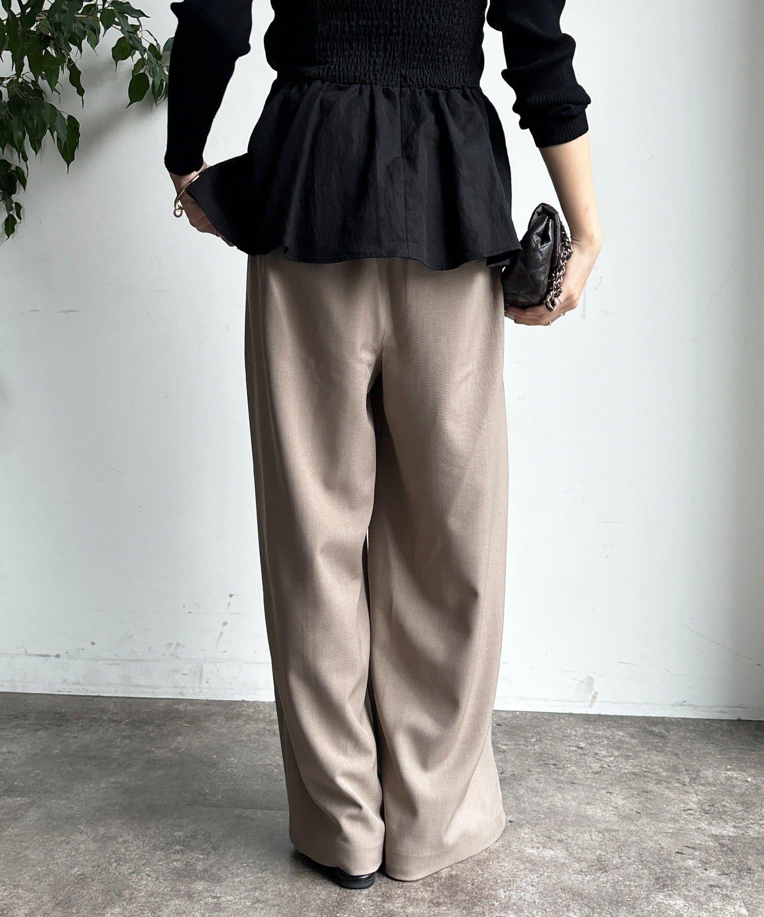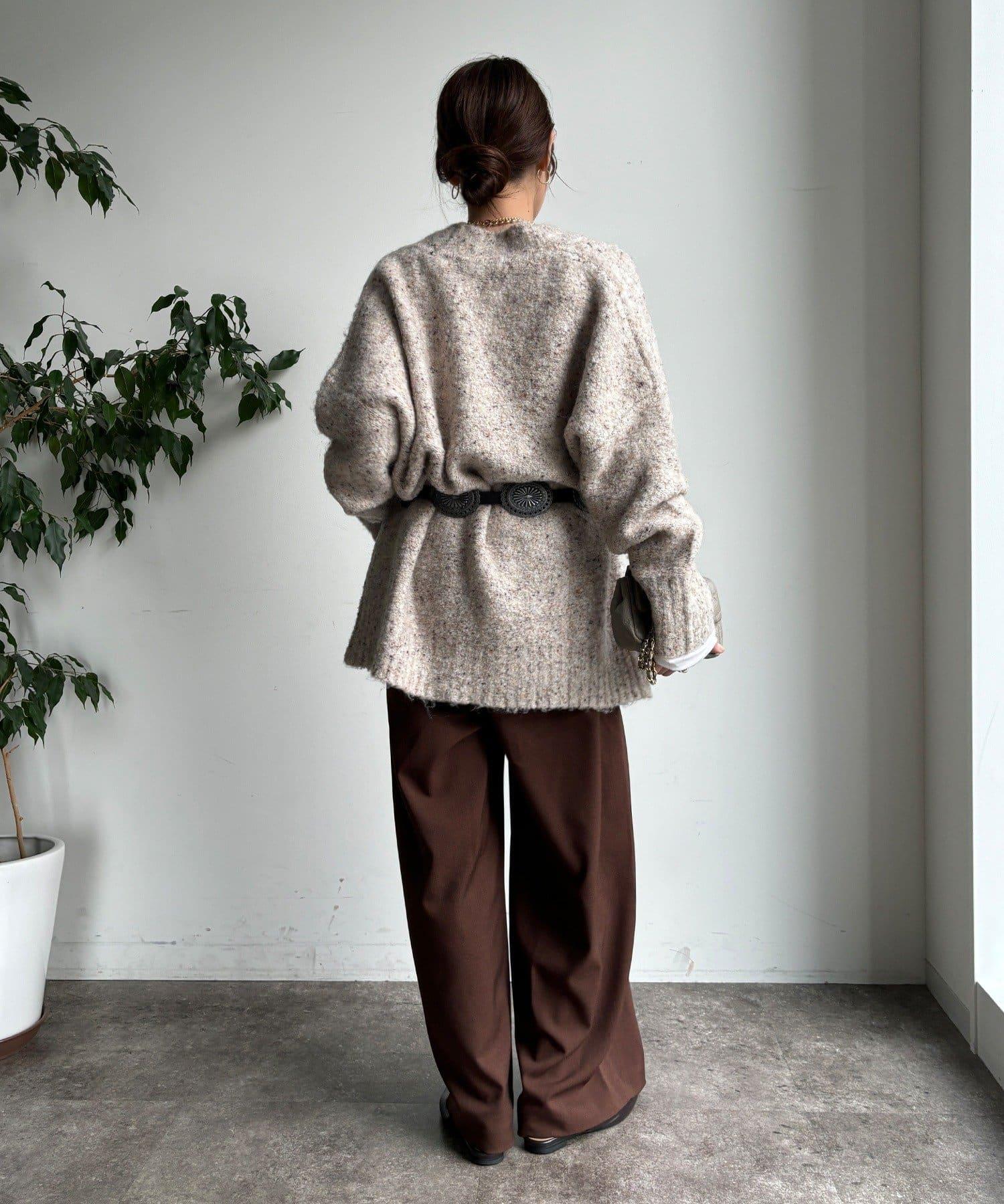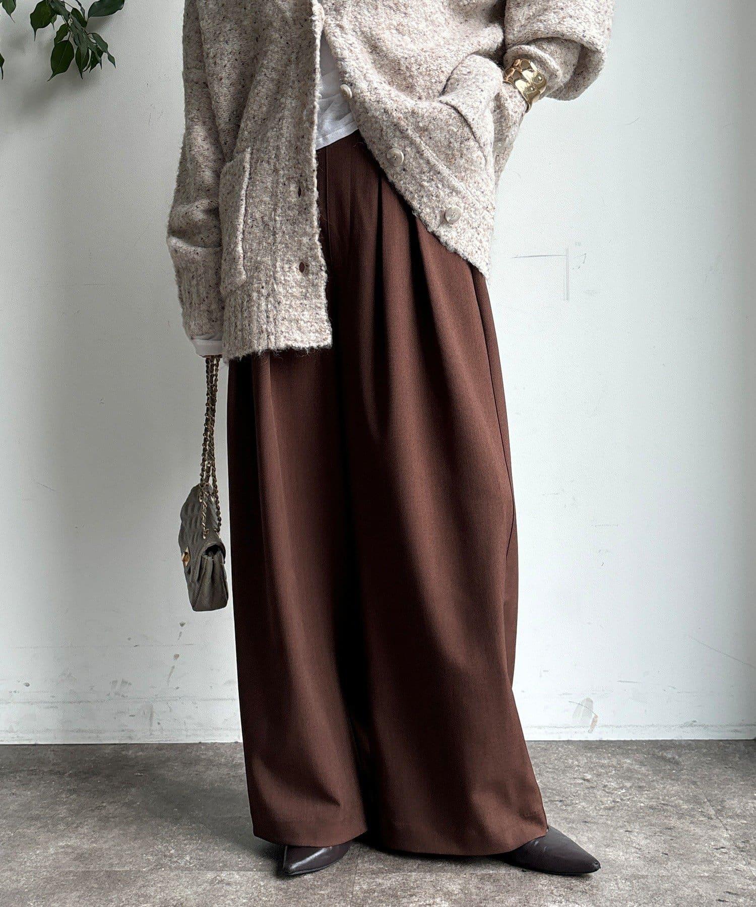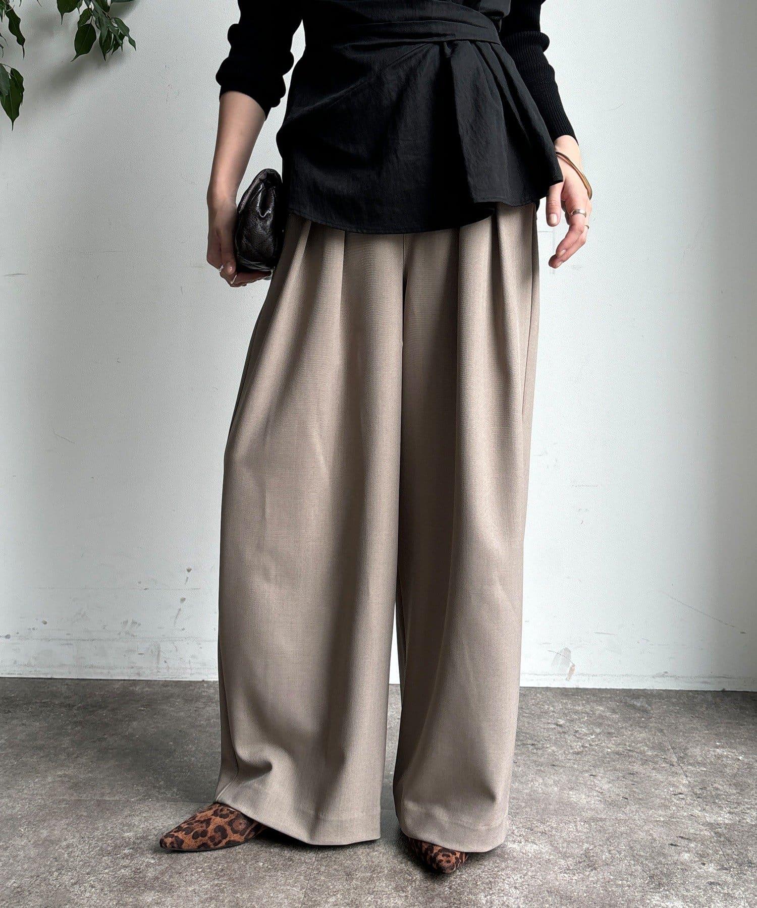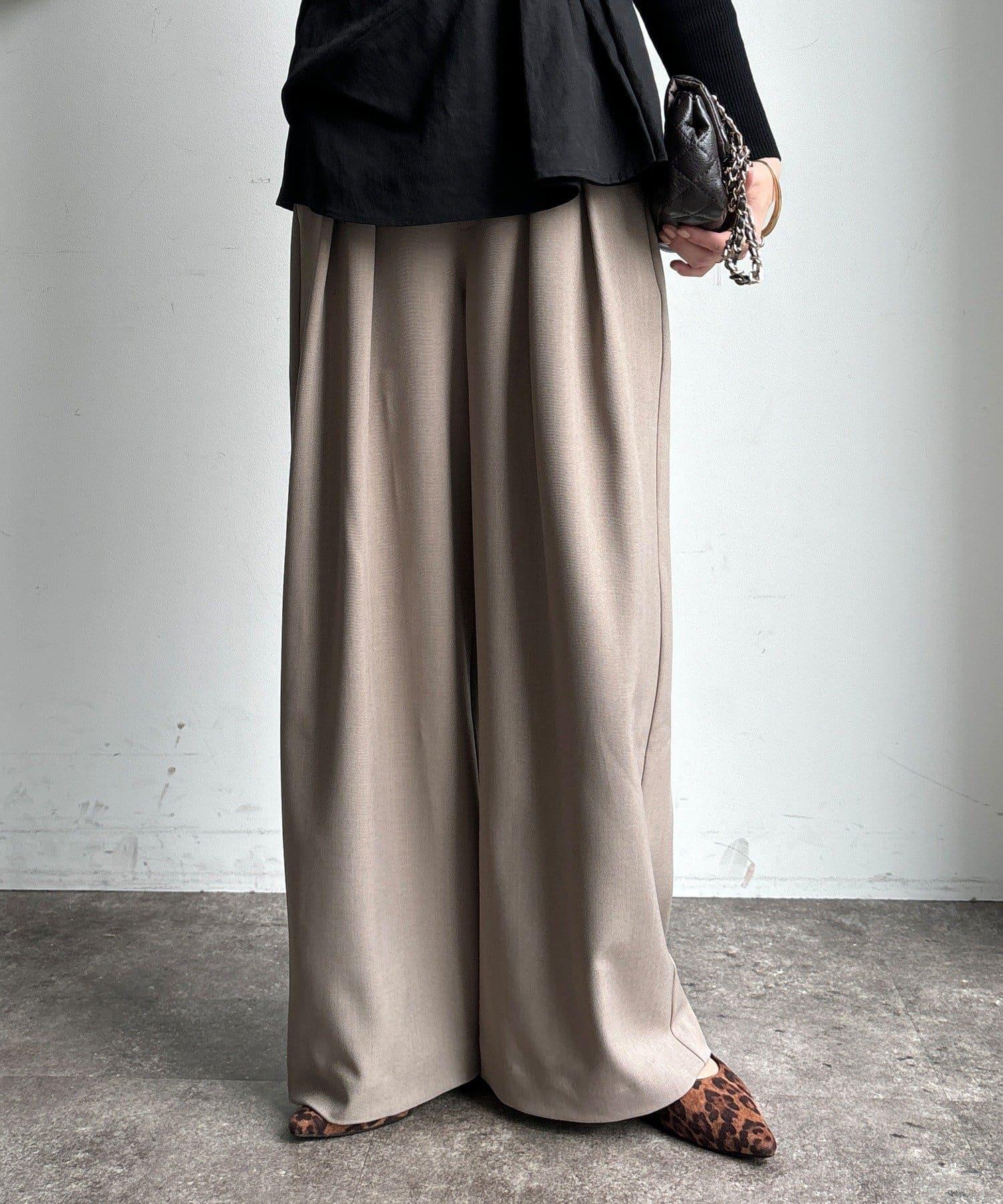 內收式寬鬆長褲同樣具有垂墜效果,但採用了類似混色的面料,使其更適合秋冬風格。