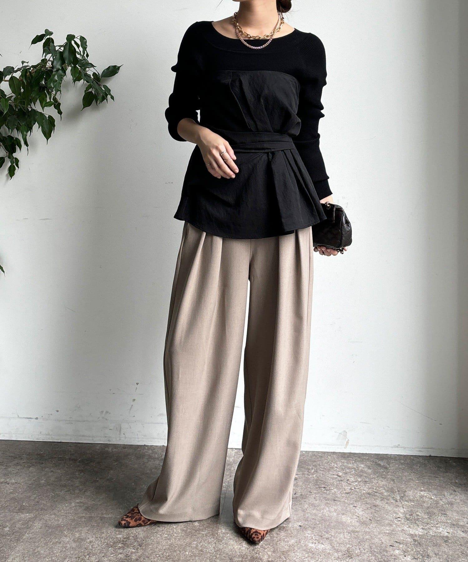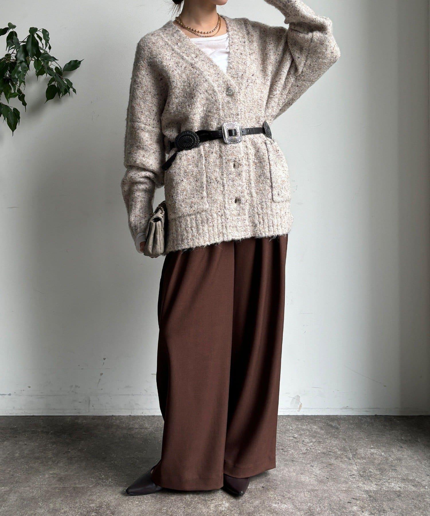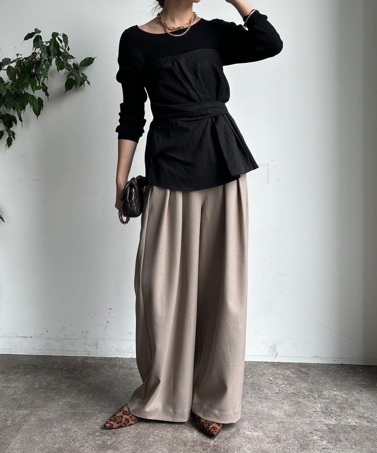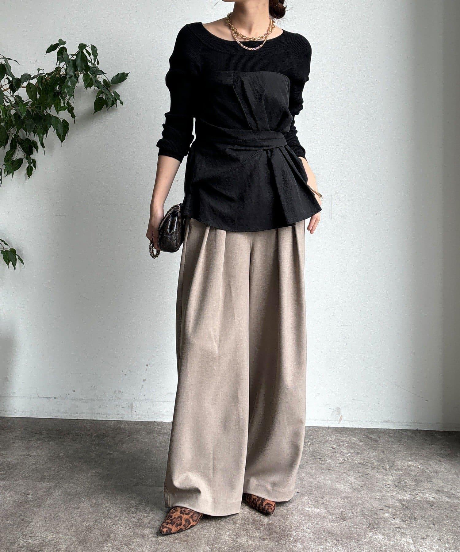 內收式寬鬆長褲同樣具有垂墜效果,但採用了類似混色的面料,使其更適合秋冬風格。