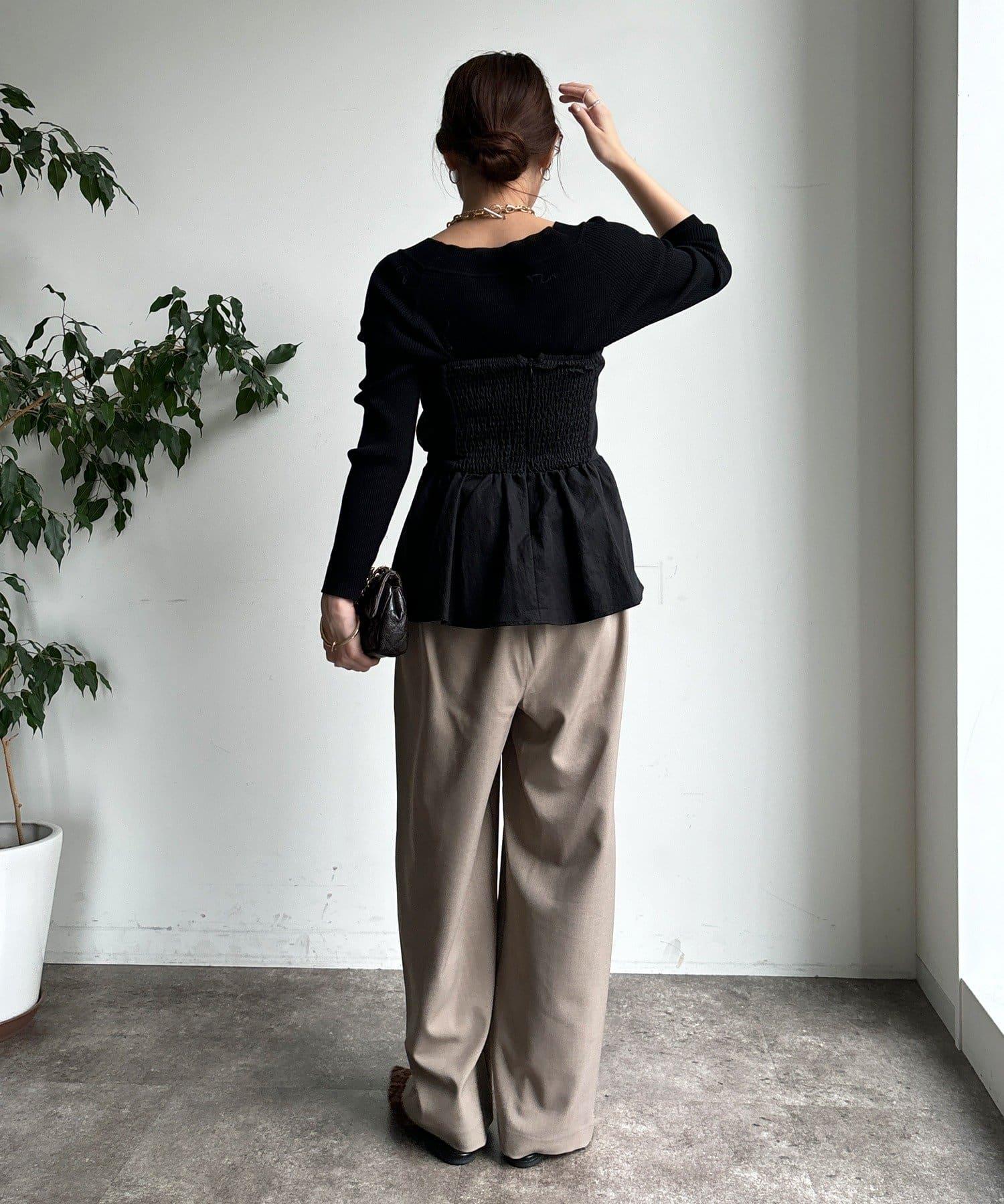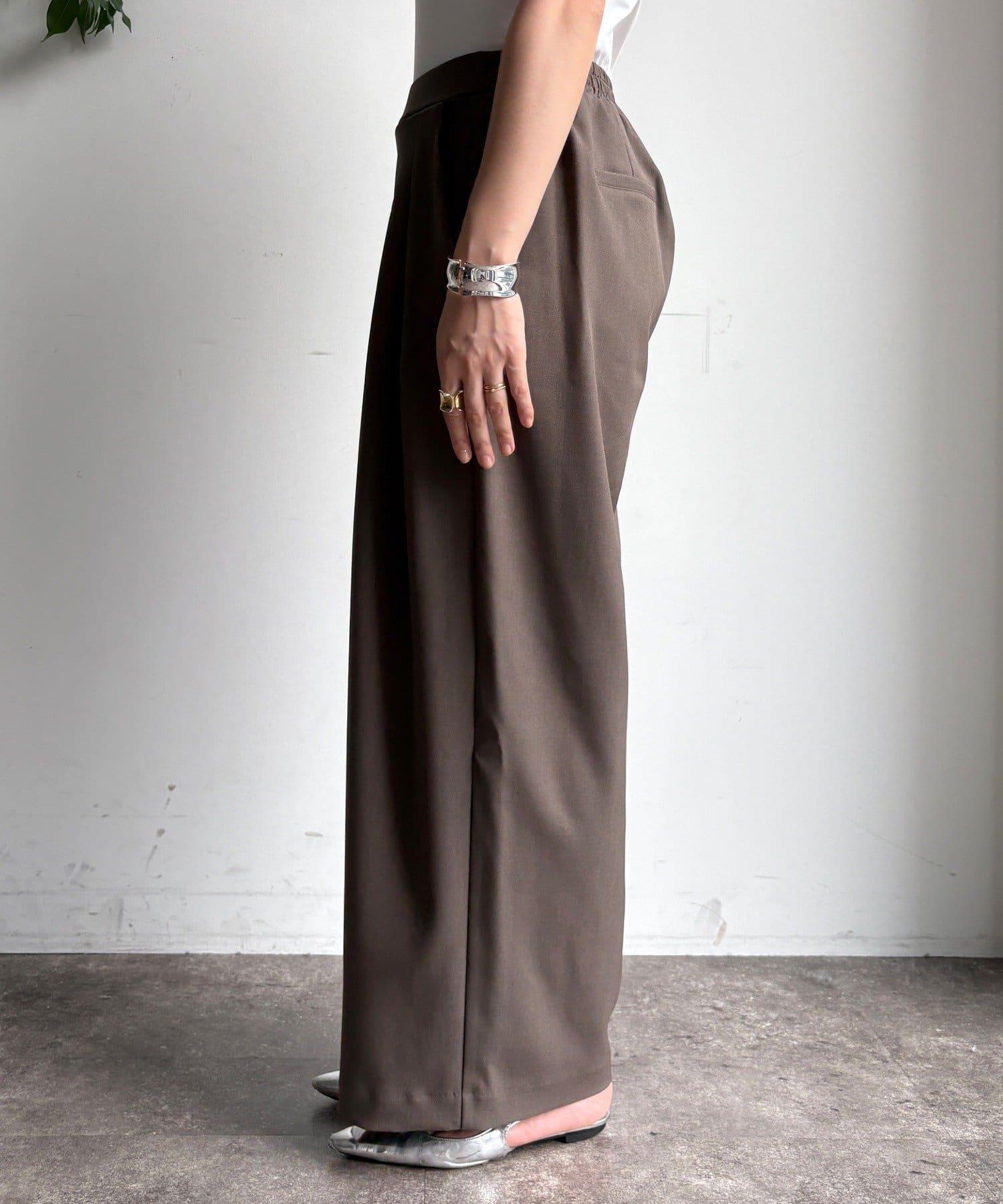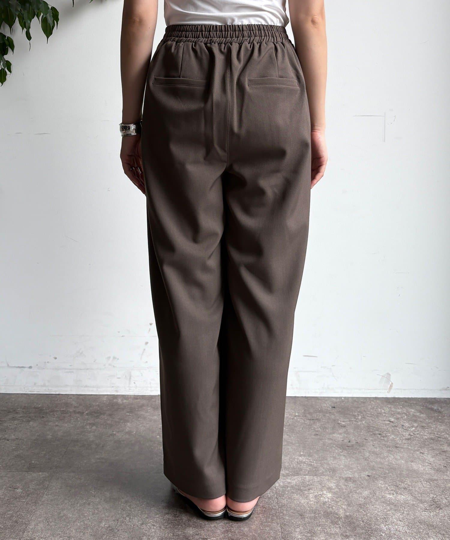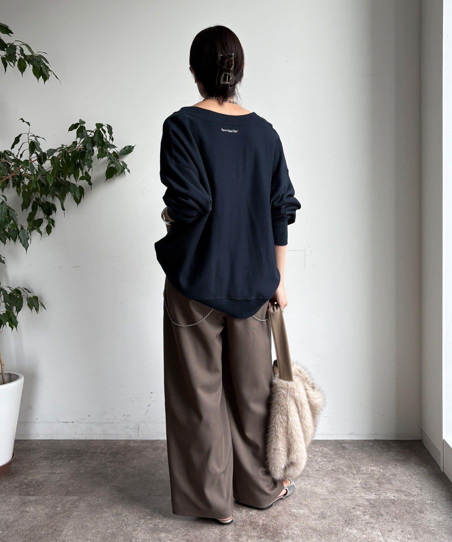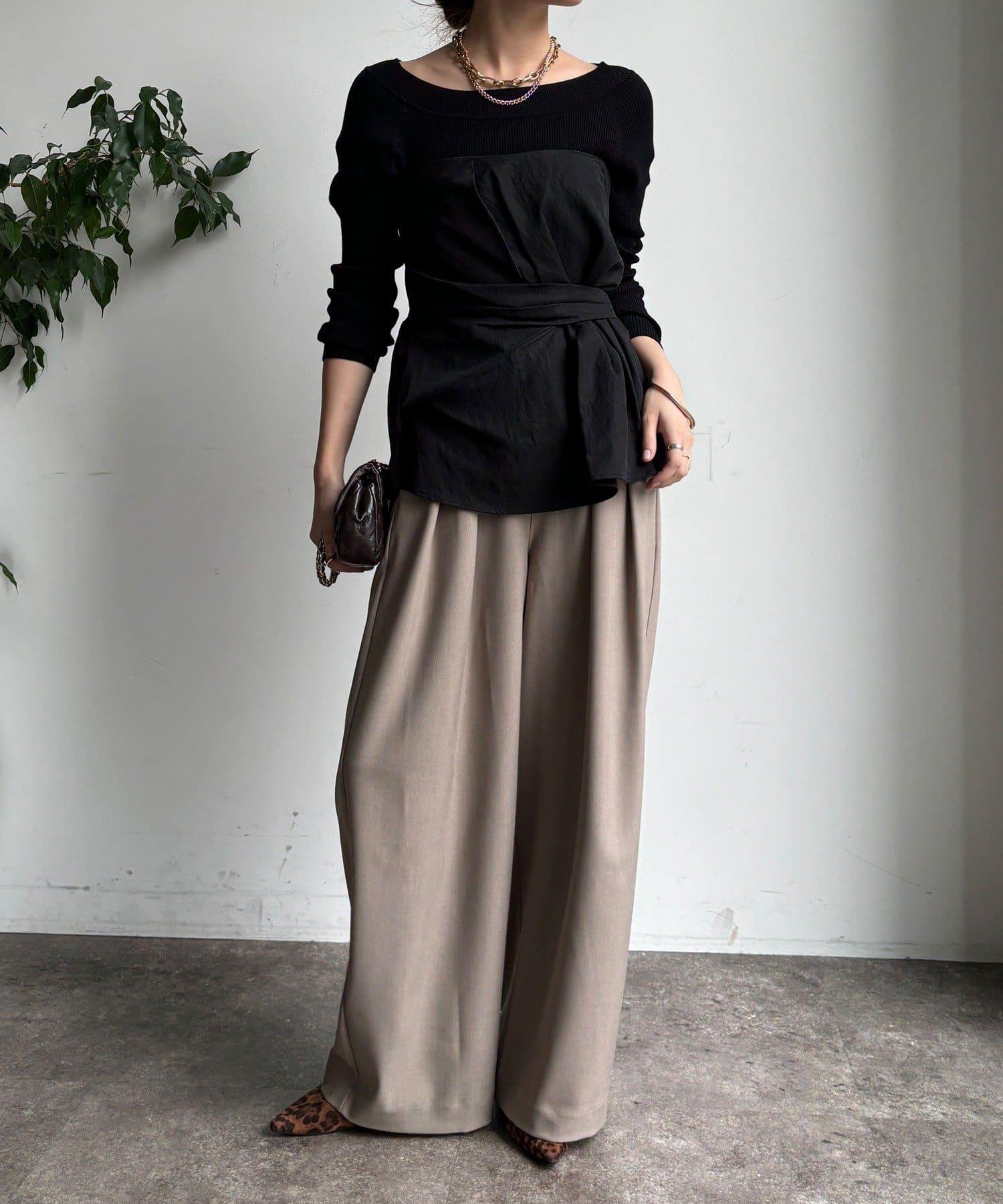 內收式寬鬆長褲同樣具有垂墜效果,但採用了類似混色的面料,使其更適合秋冬風格。