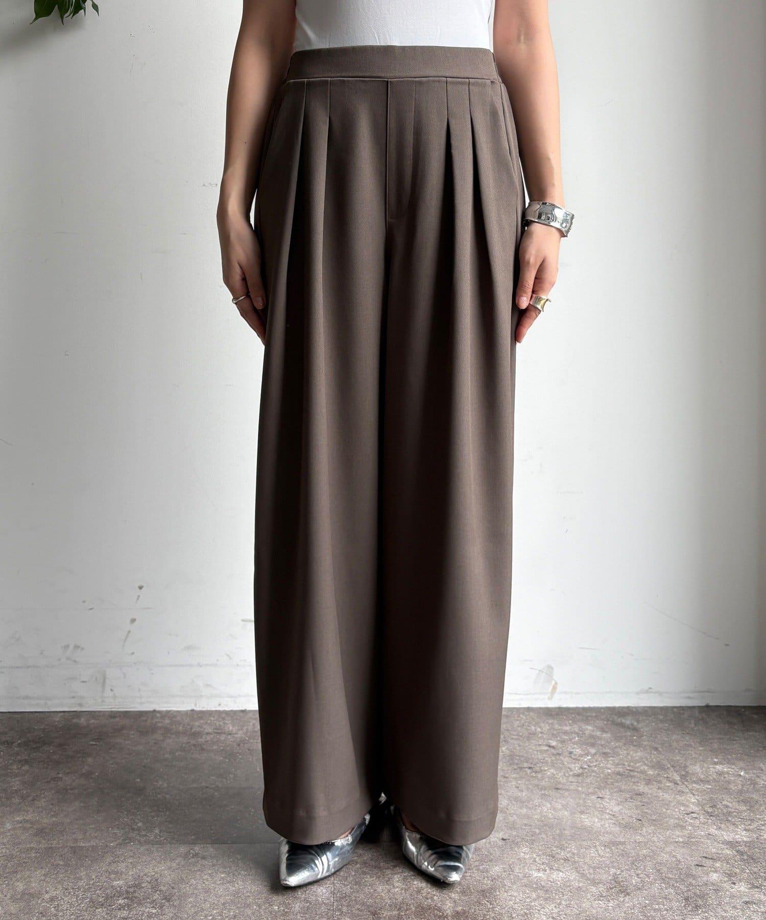 混色褶皺寬腿褲