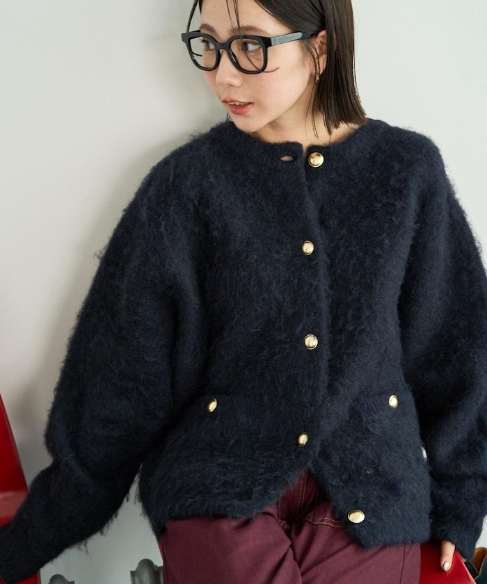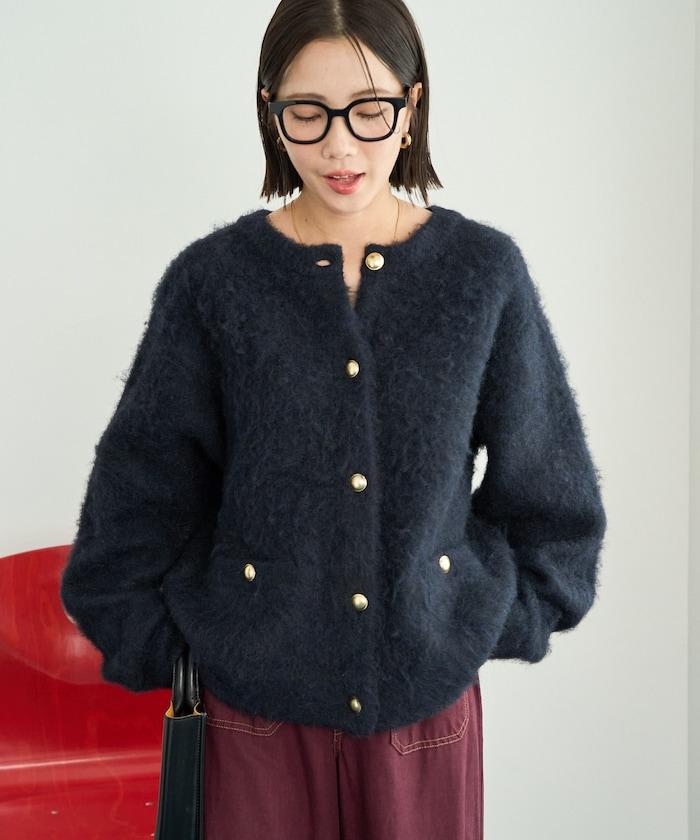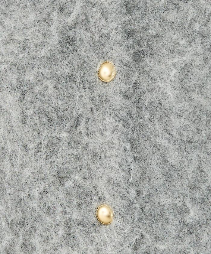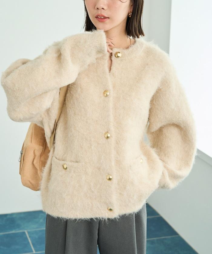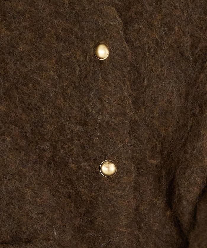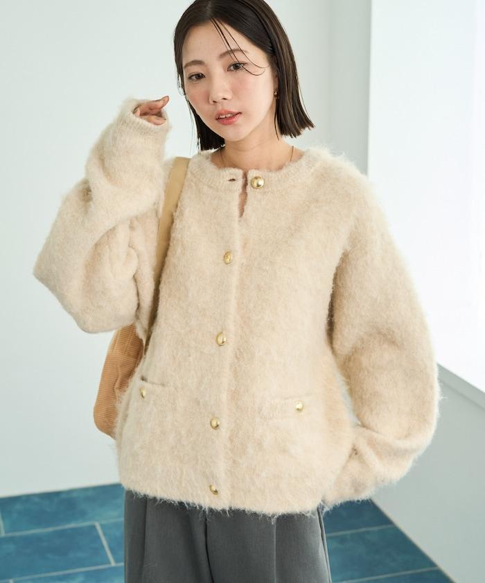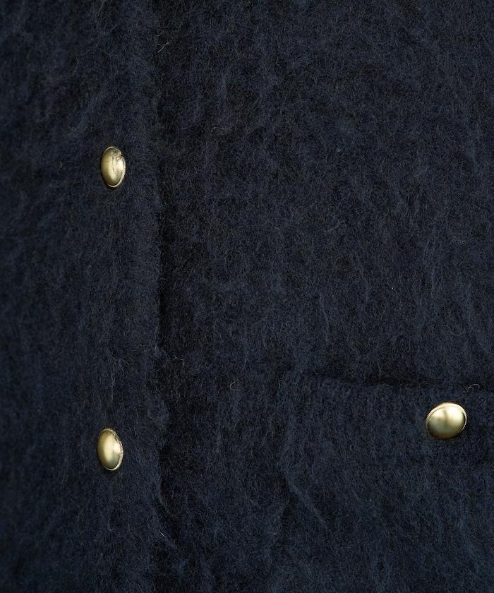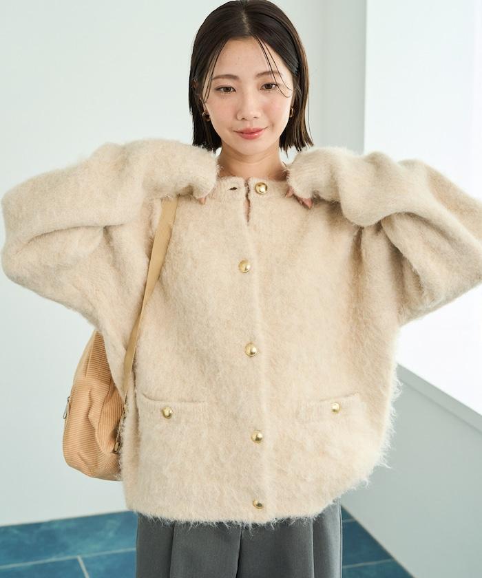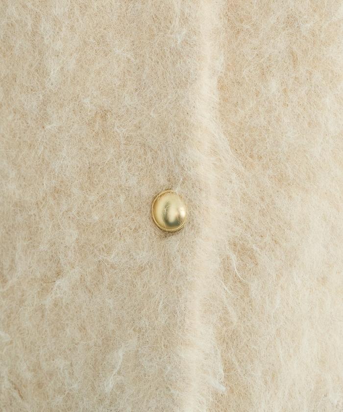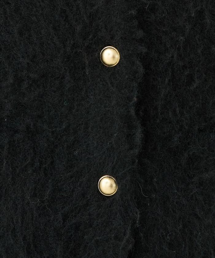 成人休閒開衫,採用蓬鬆毛茸茸的面料和金色紐扣,時尚感十足。