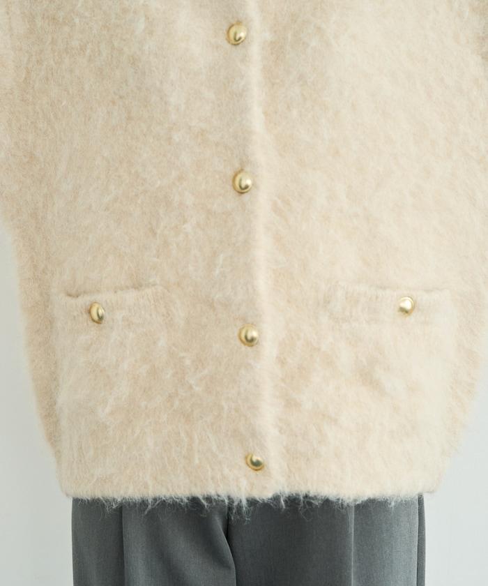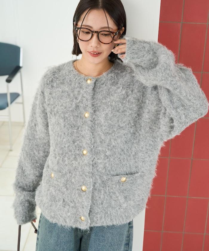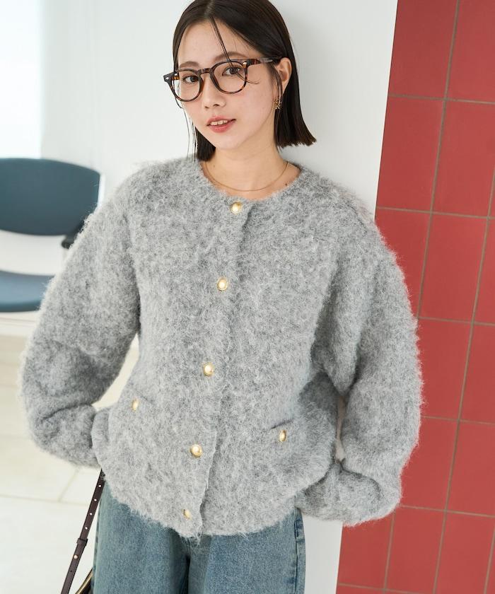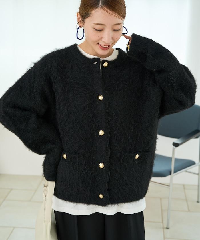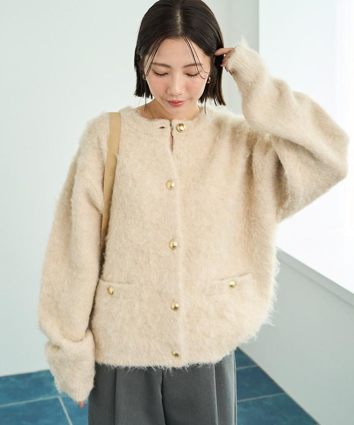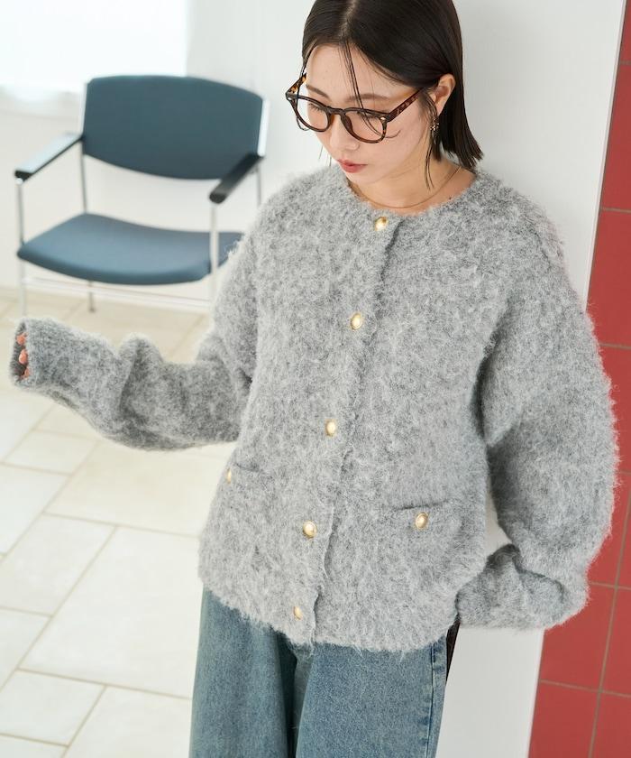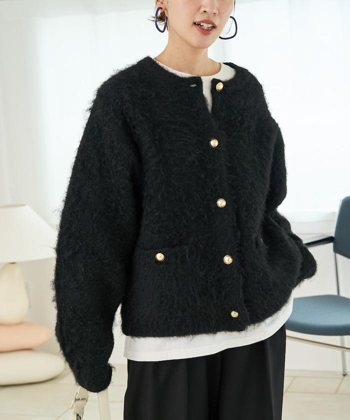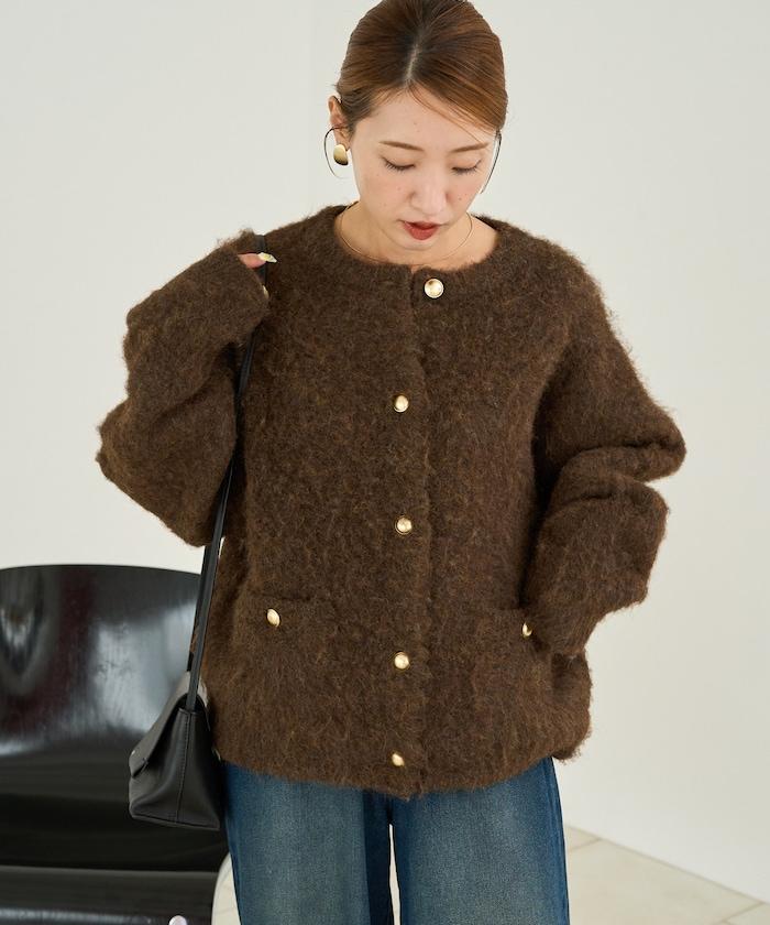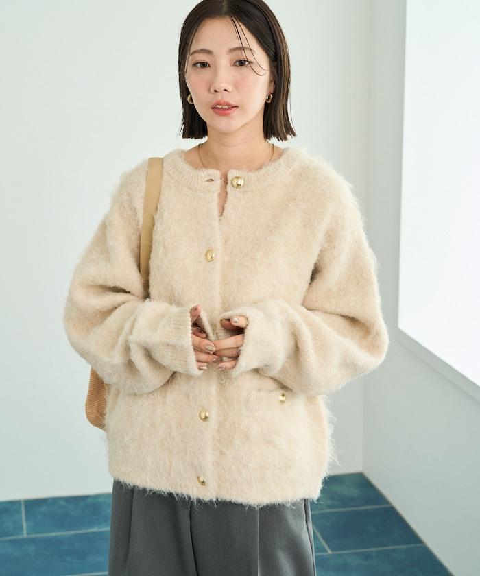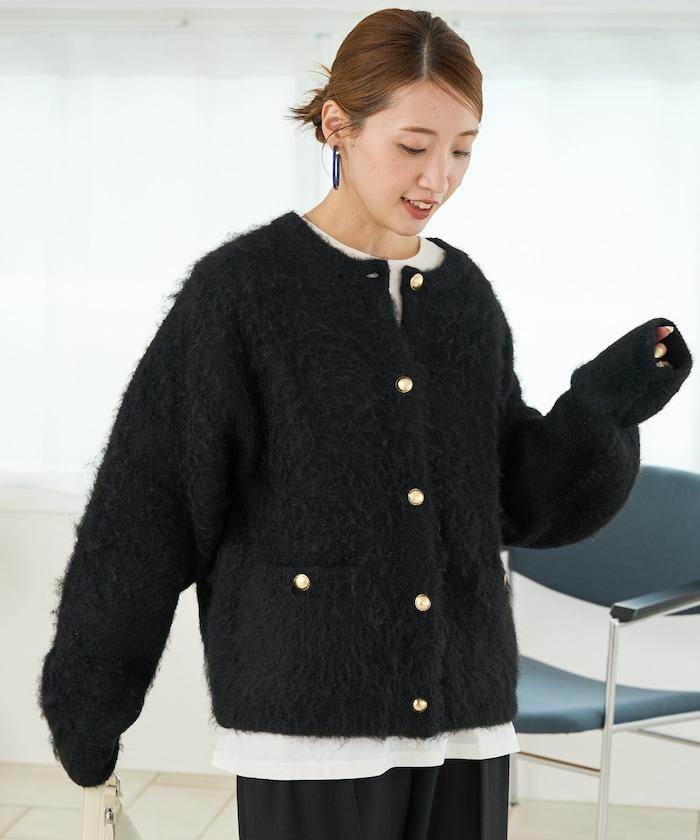 成人休閒開衫,採用蓬鬆毛茸茸的面料和金色紐扣,時尚感十足。