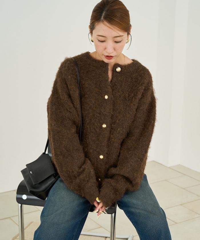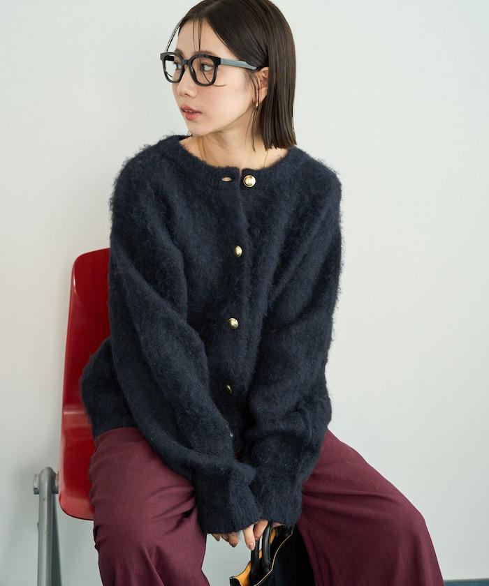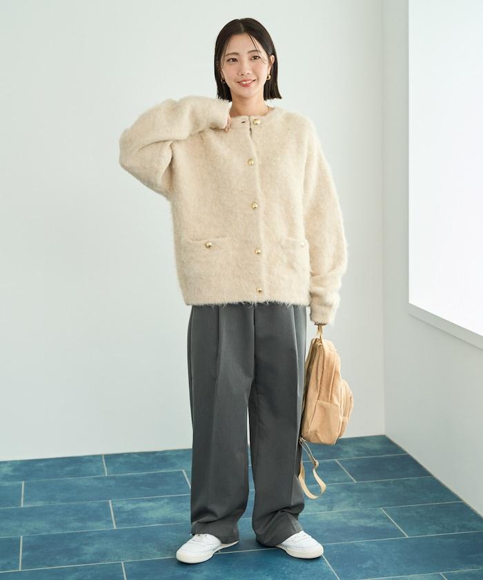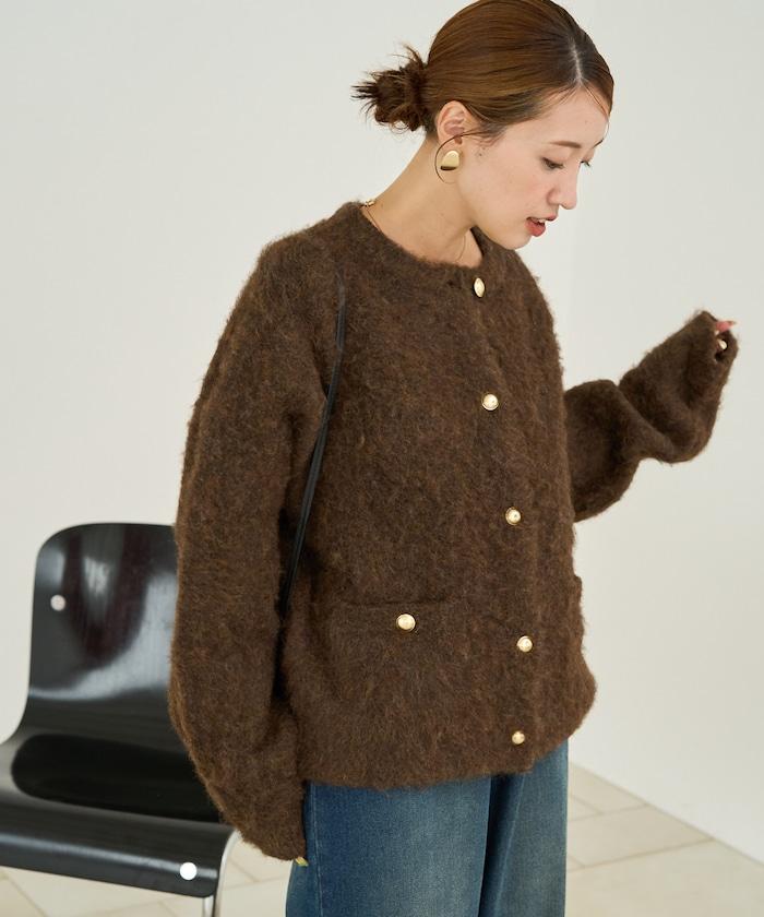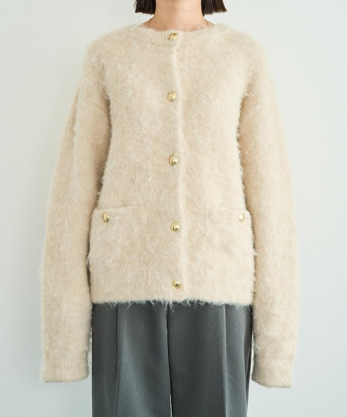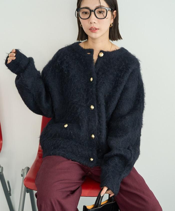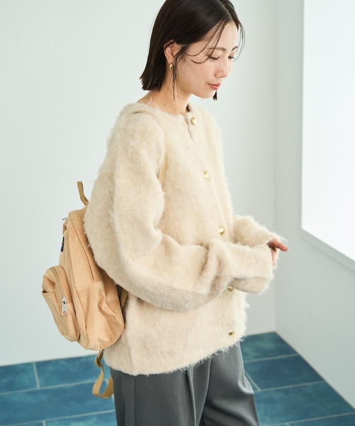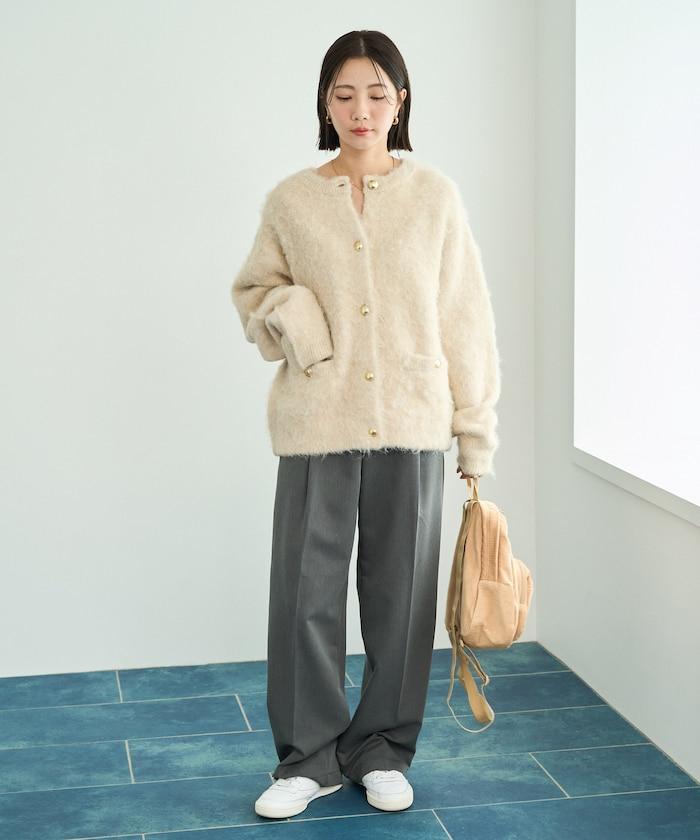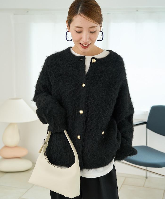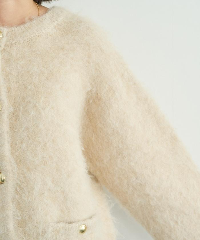成人休閒開衫,採用蓬鬆毛茸茸的面料和金色紐扣,時尚感十足。
