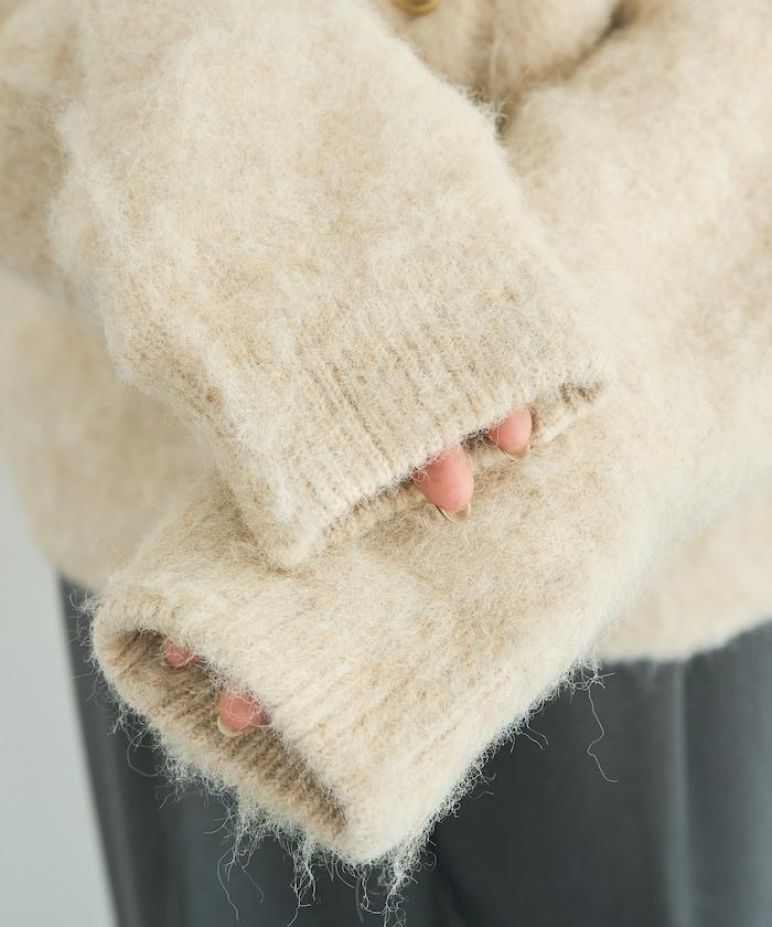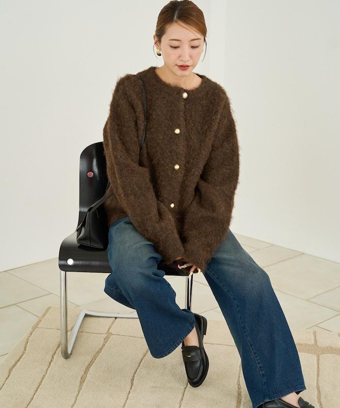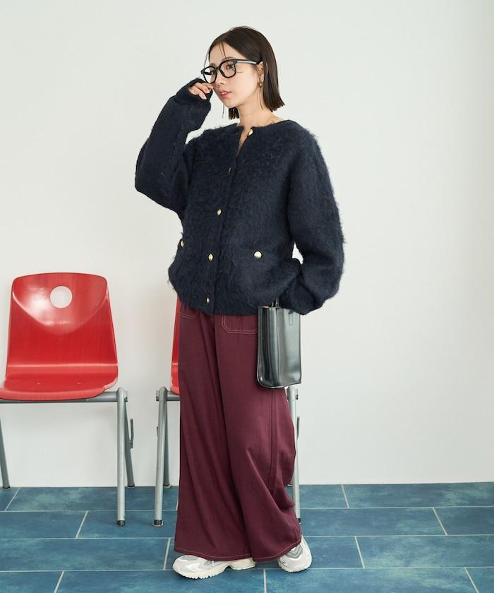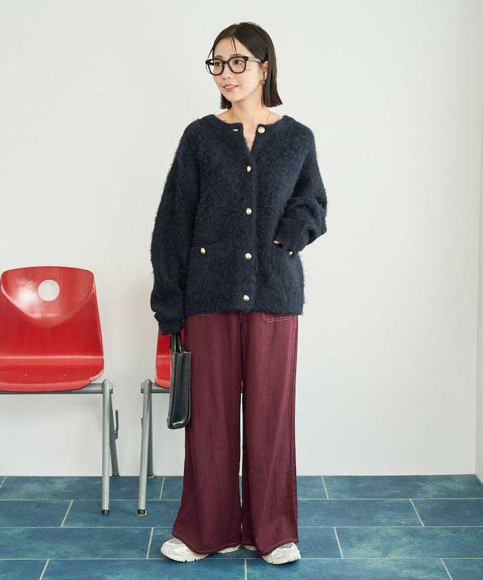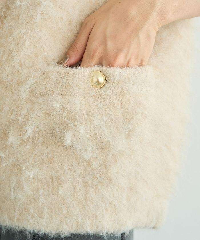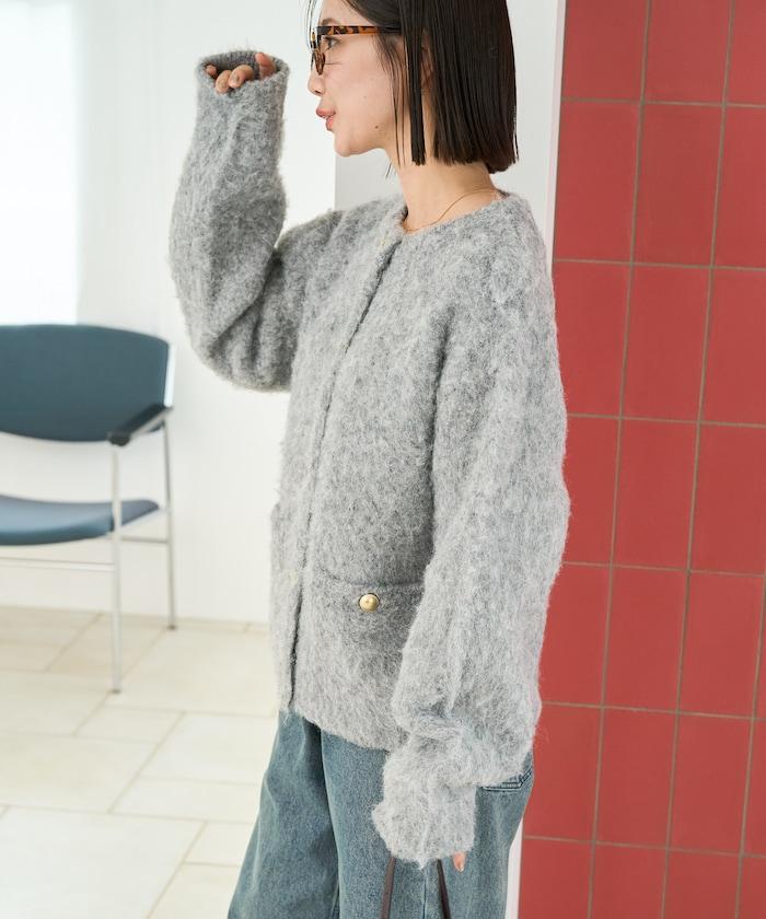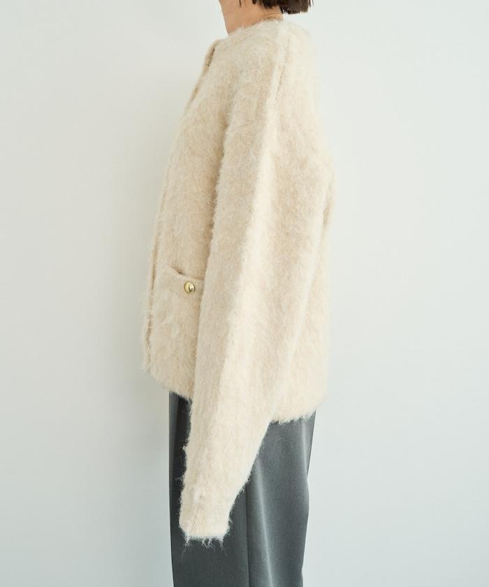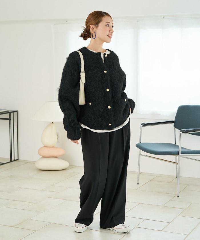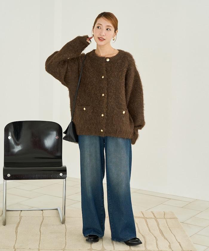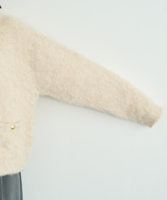 成人休閒開衫,採用蓬鬆毛茸茸的面料和金色紐扣,時尚感十足。