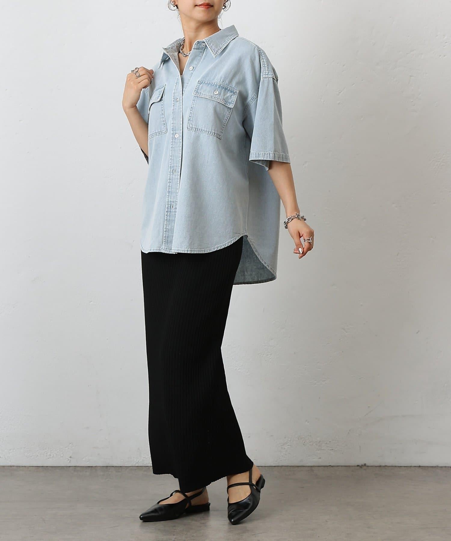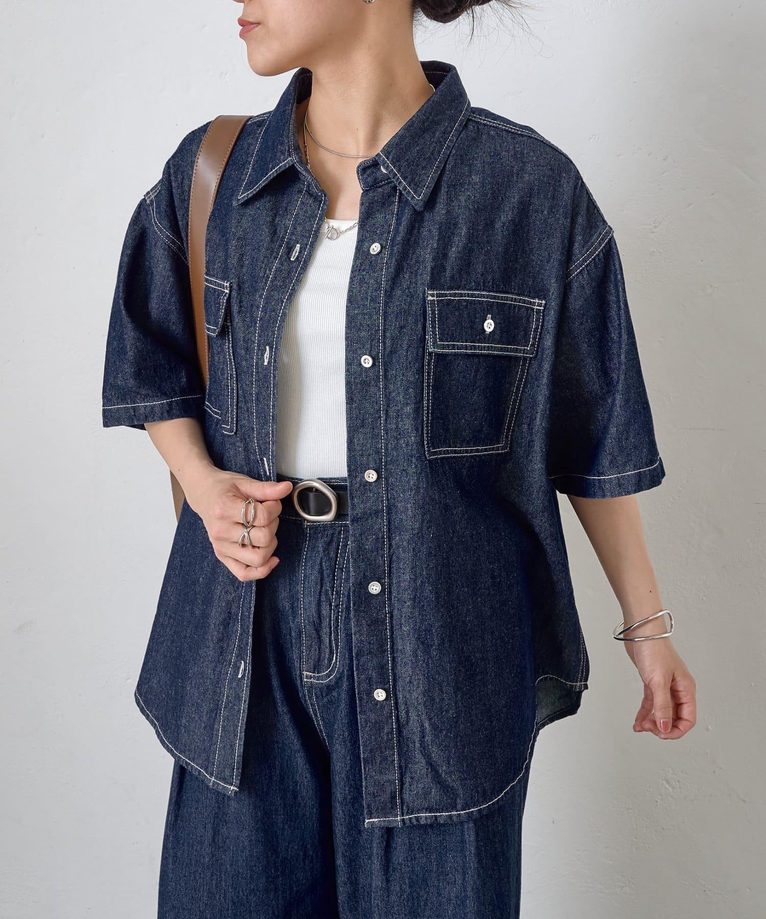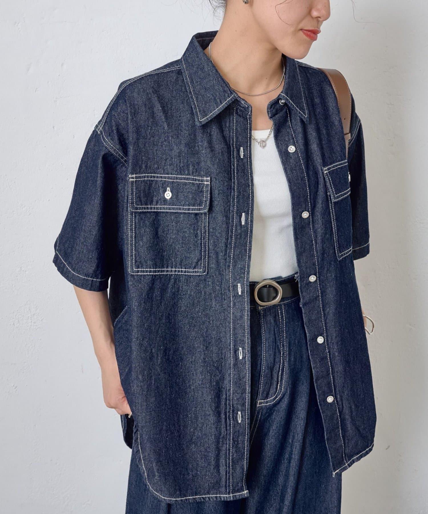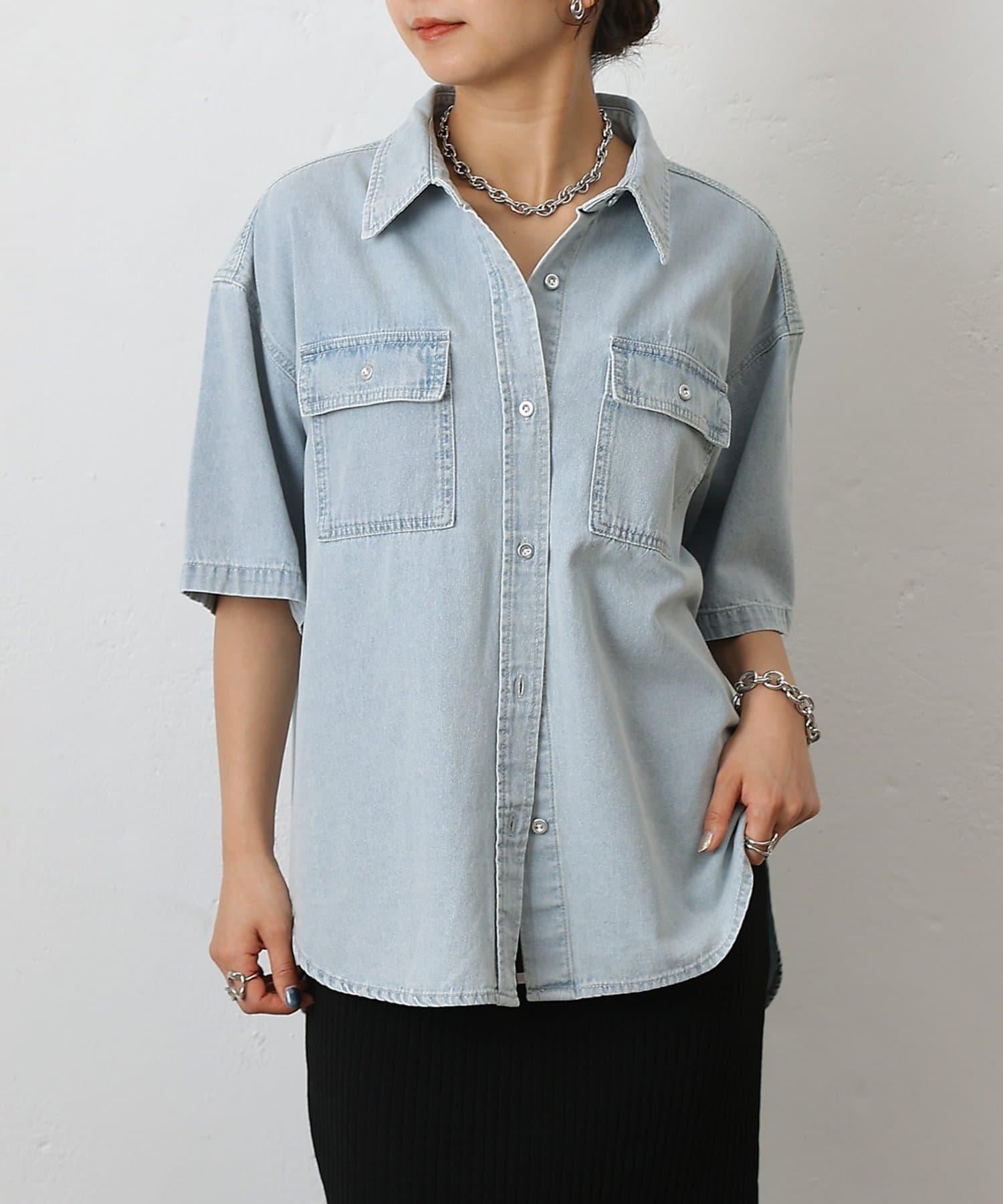 好看的單件服裝。輕便牛仔襯衫,主角]。