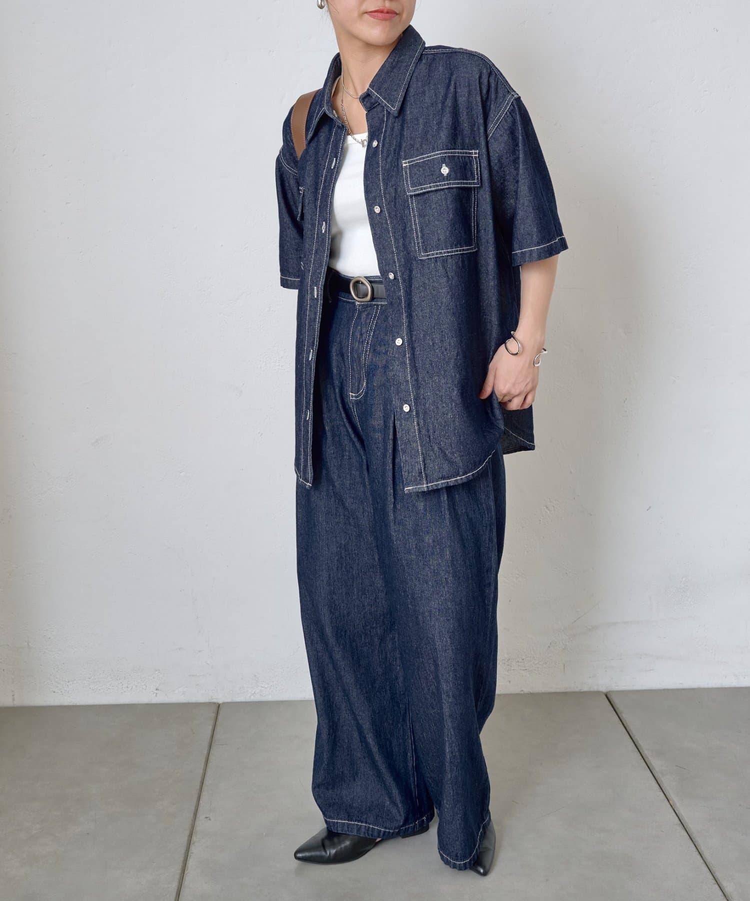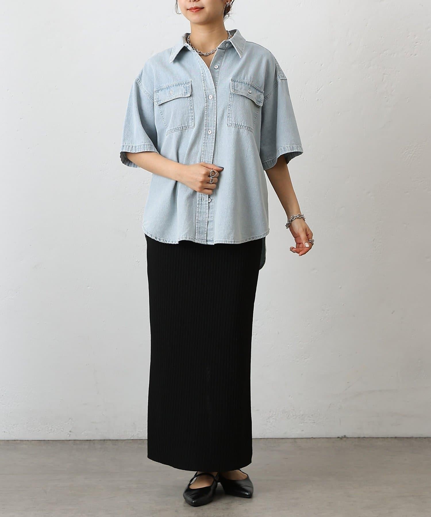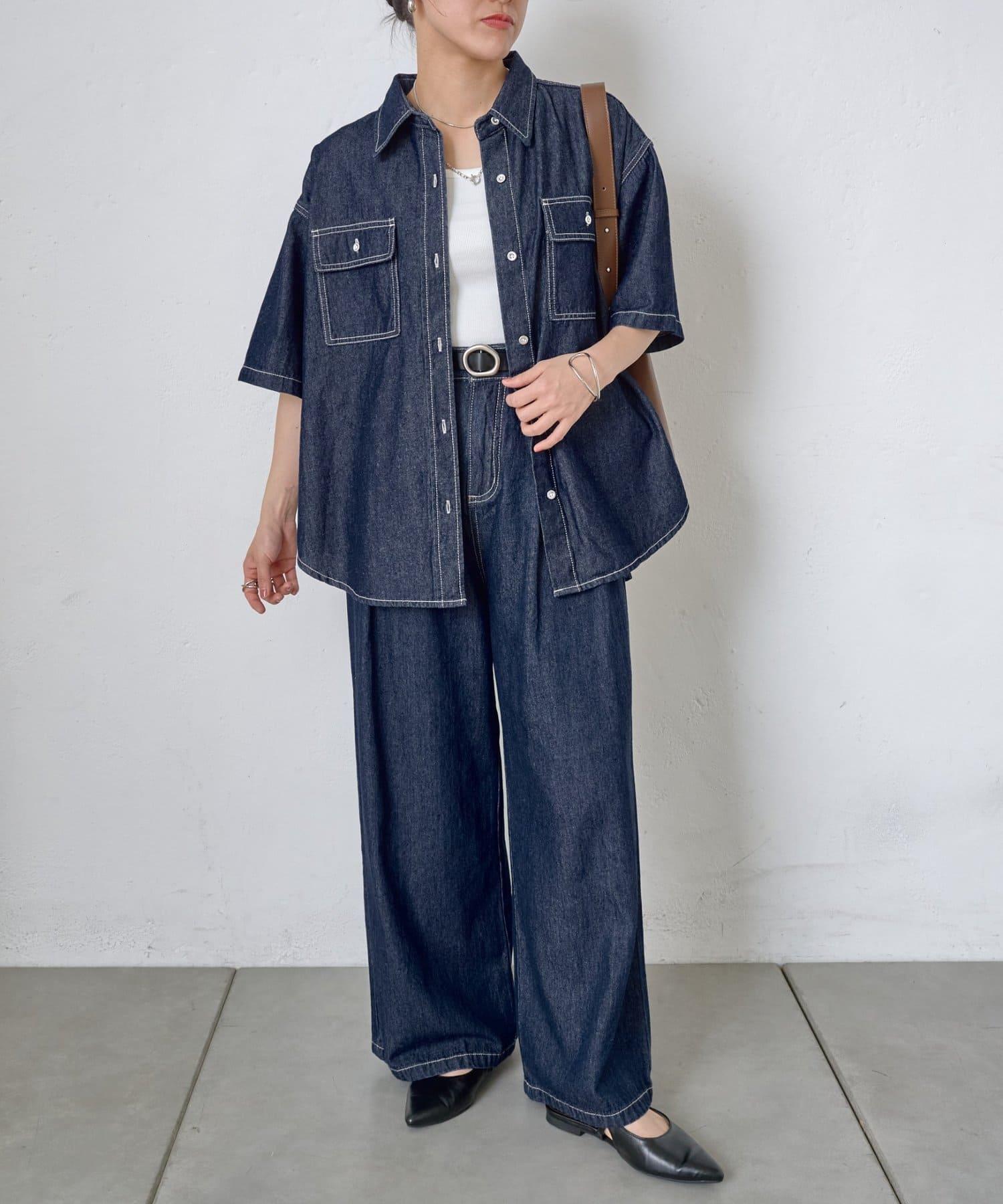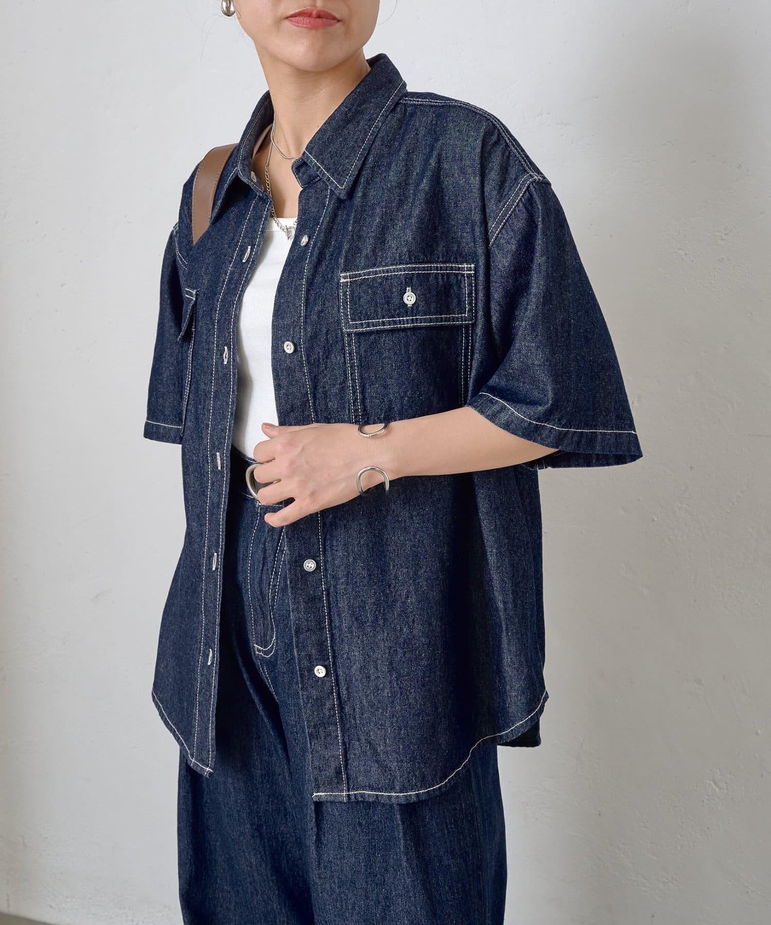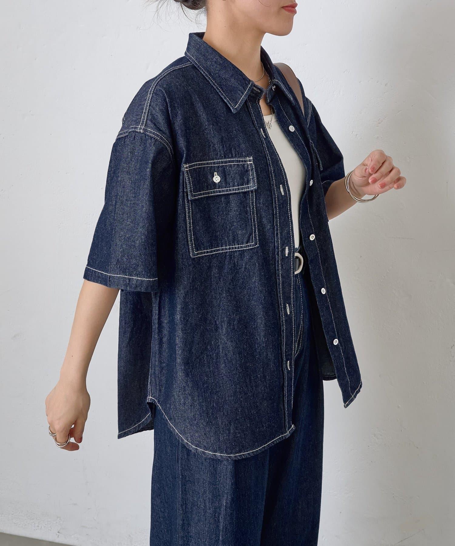 好看的單件服裝。輕便牛仔襯衫,主角]。