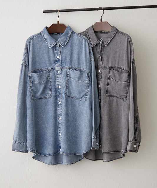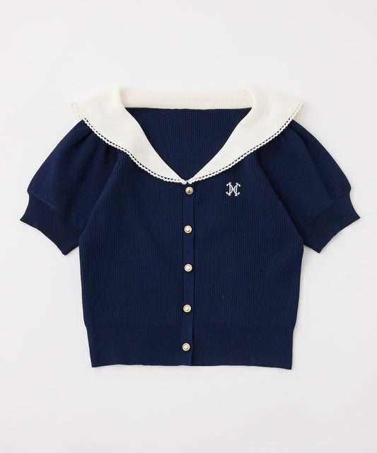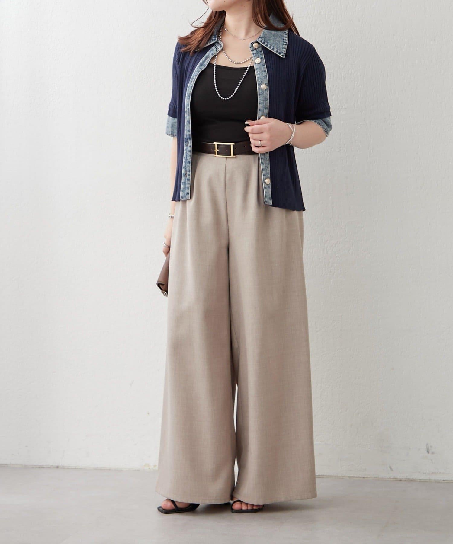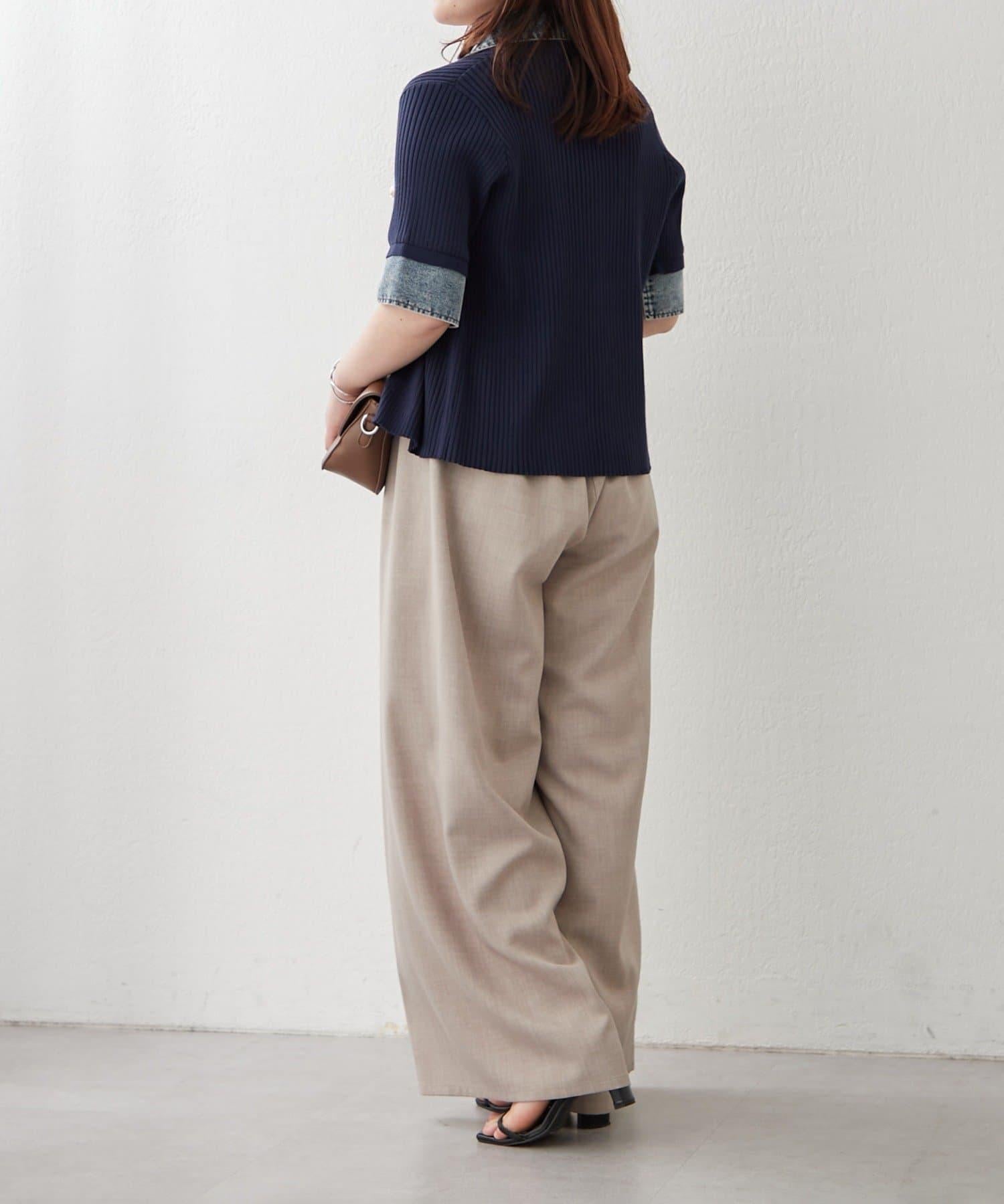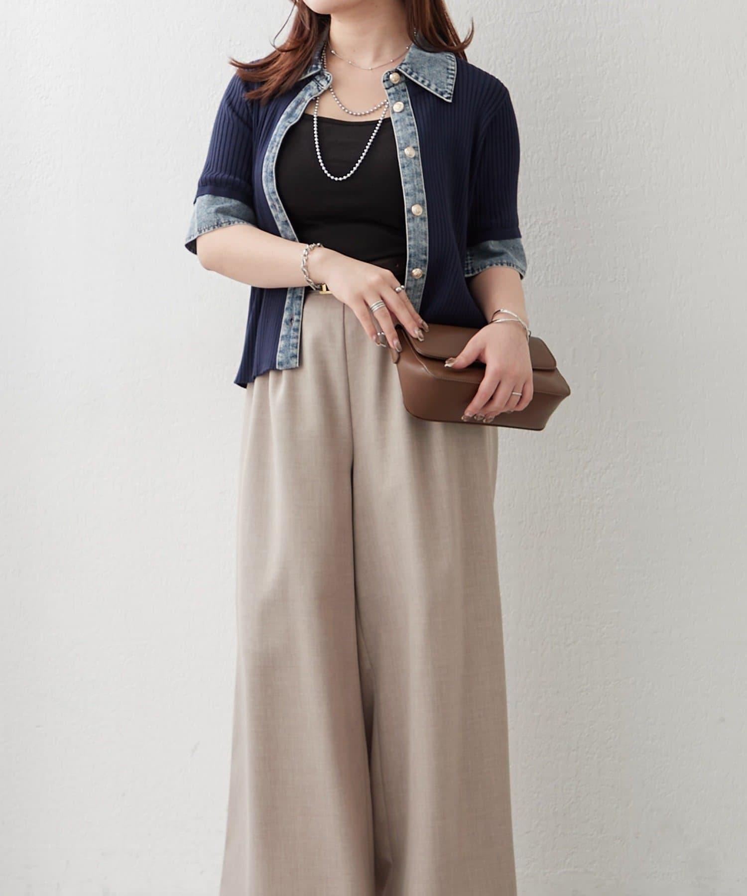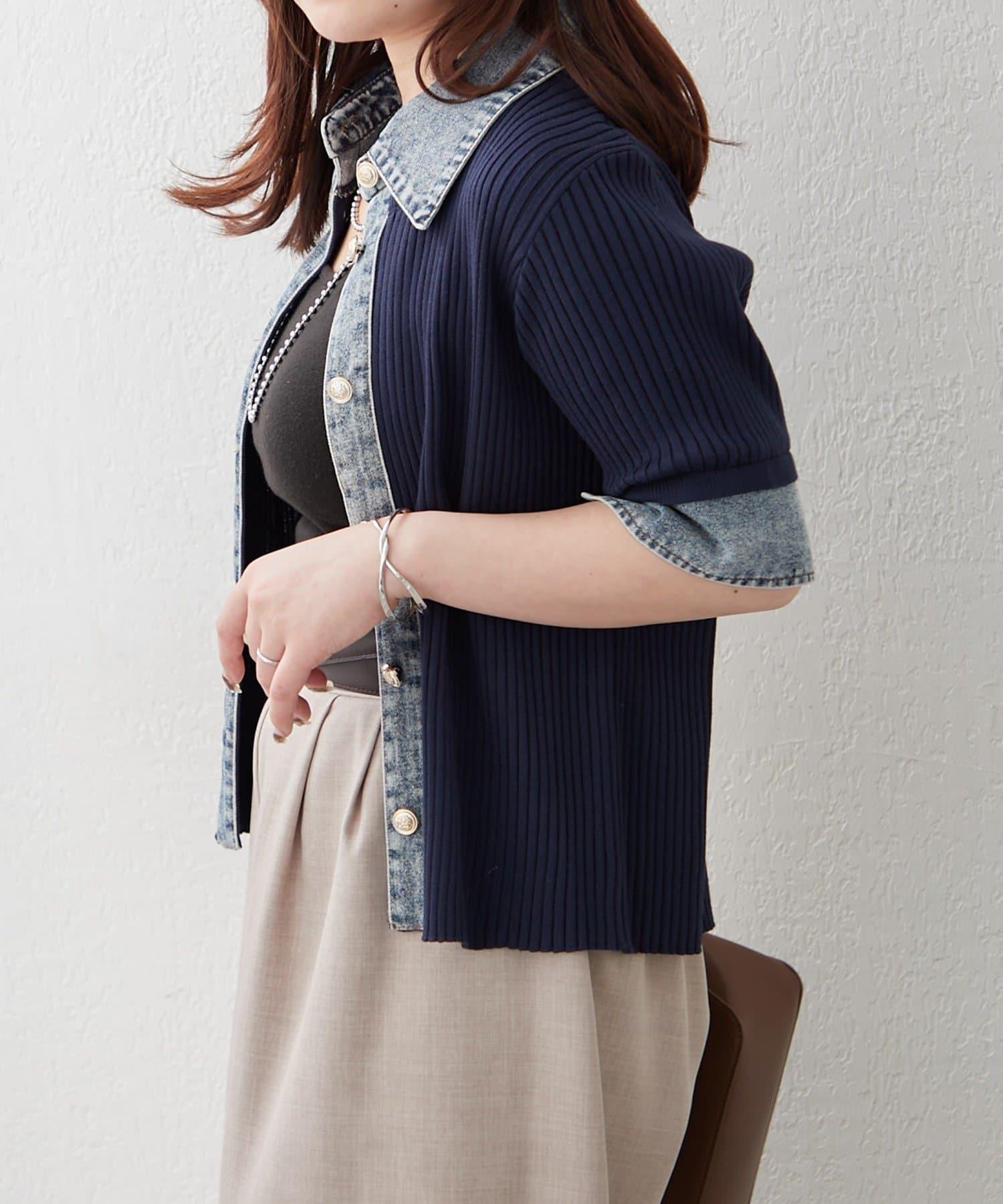 羅紋針織上衣,領口和袖口飾有牛仔布。