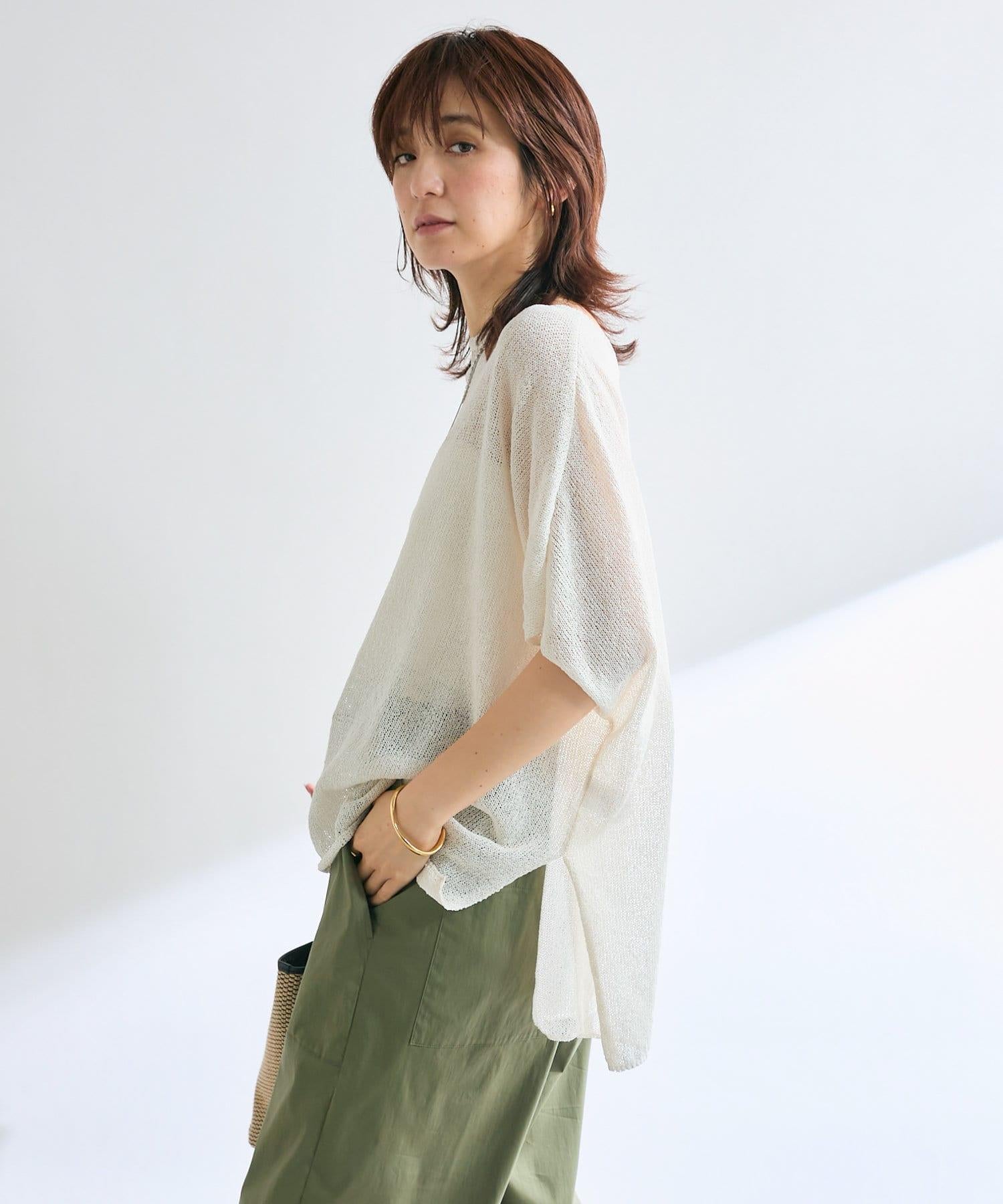 採用紙紗製成的透氣針織物,手感輕盈涼爽。