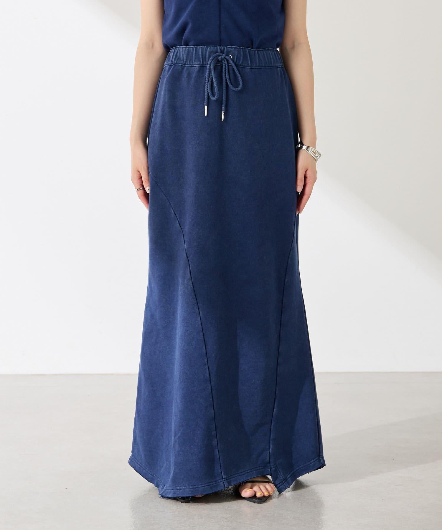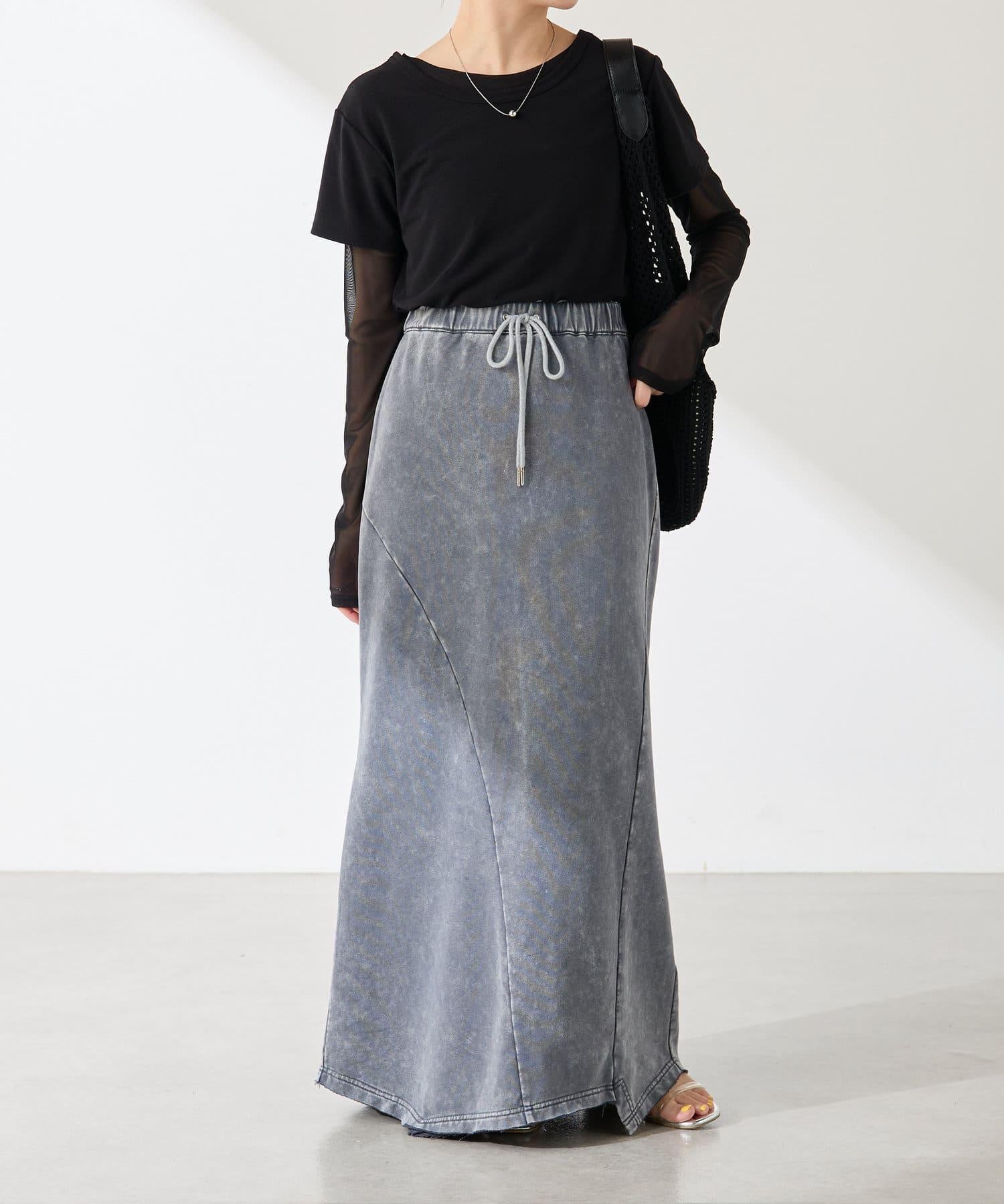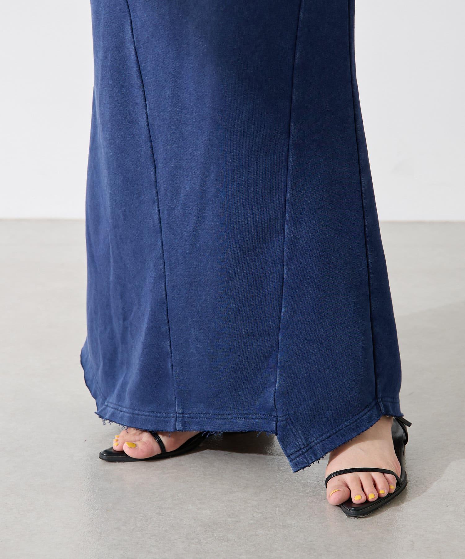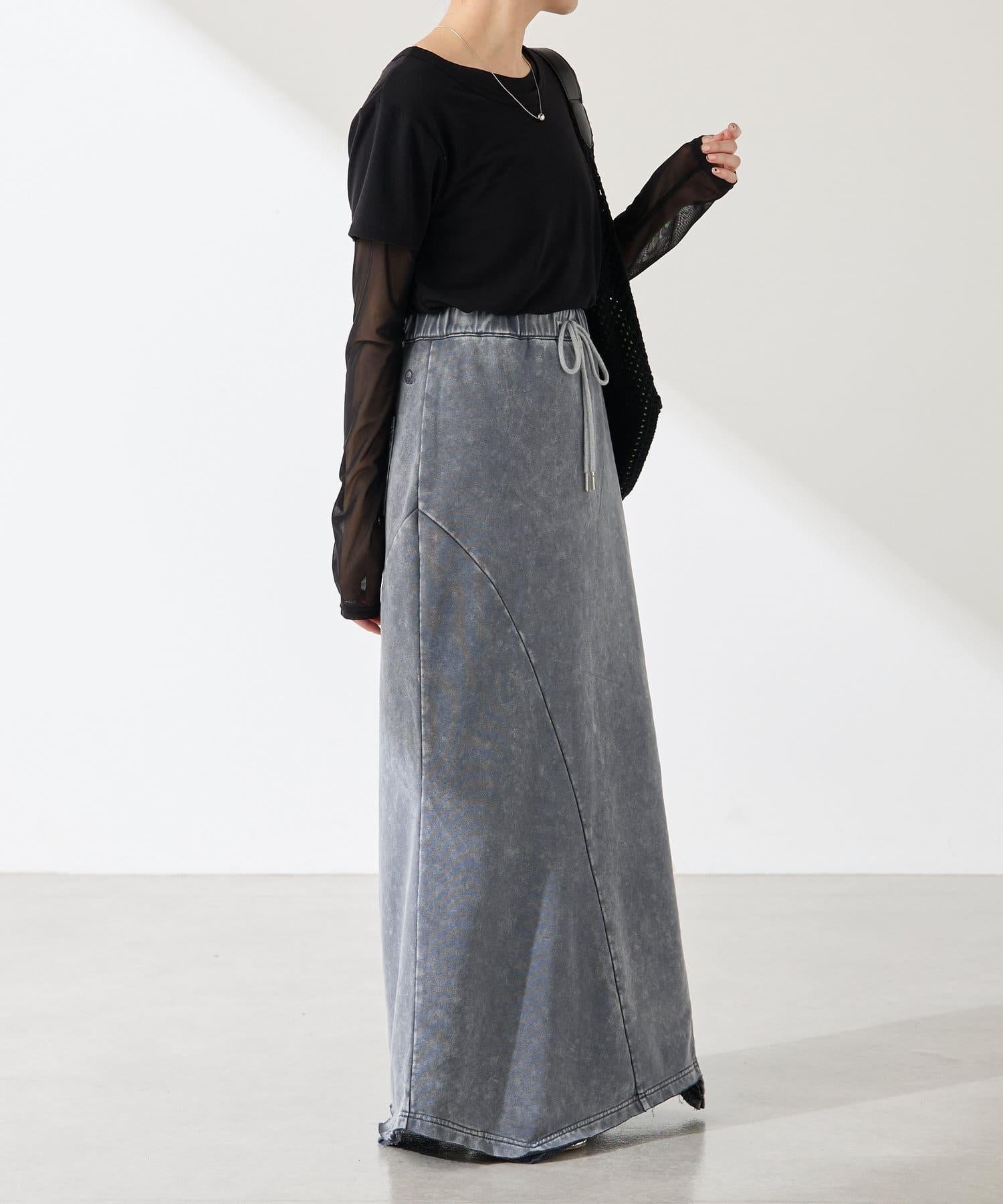 裙身採用衛衣材質,但凹凸有致的染色質感讓它不會過於隨意。