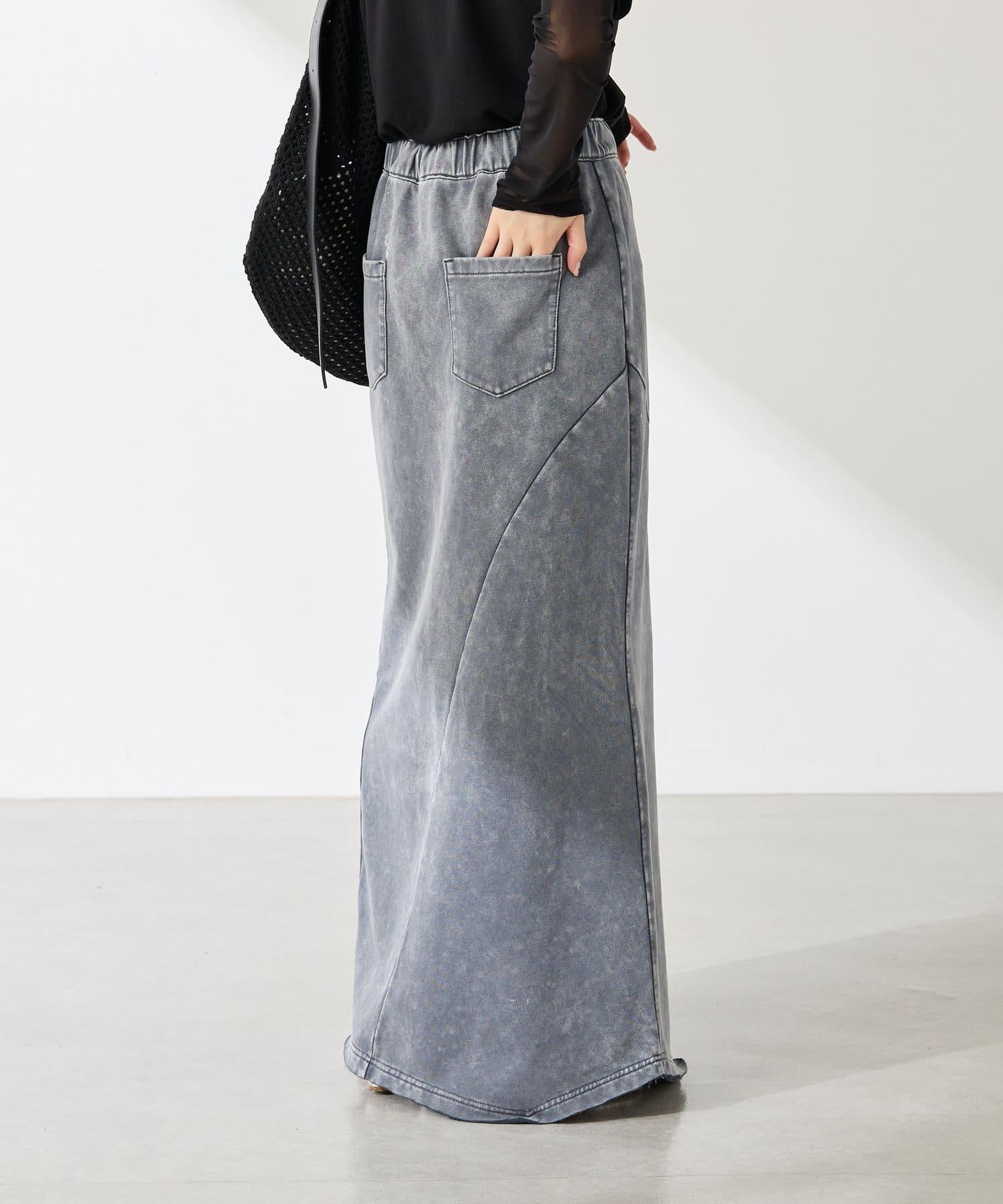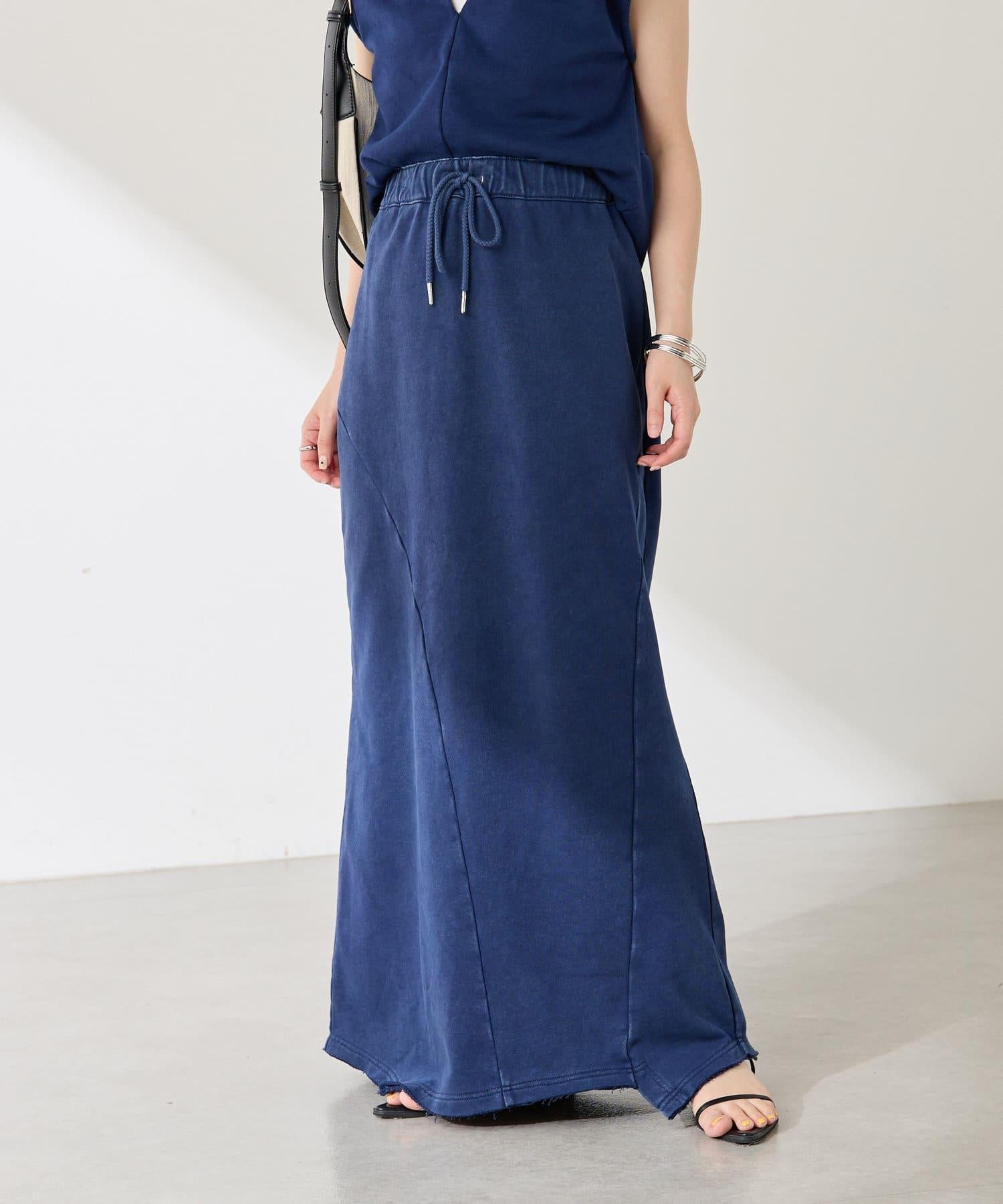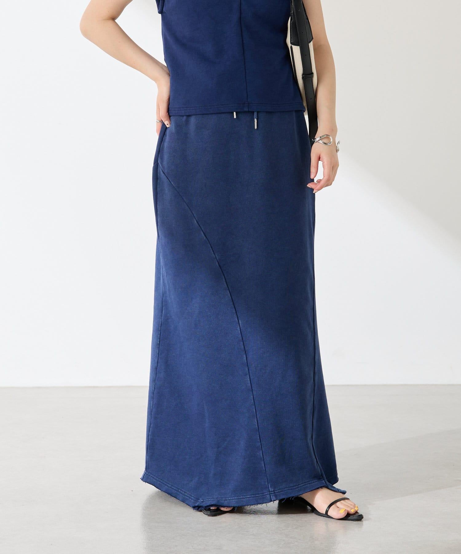 裙身採用衛衣材質,但凹凸有致的染色質感讓它不會過於隨意。