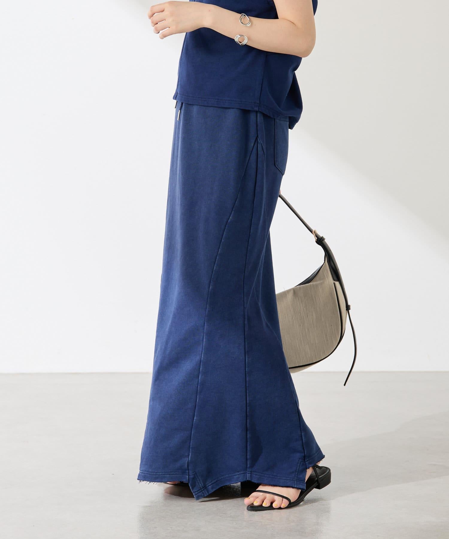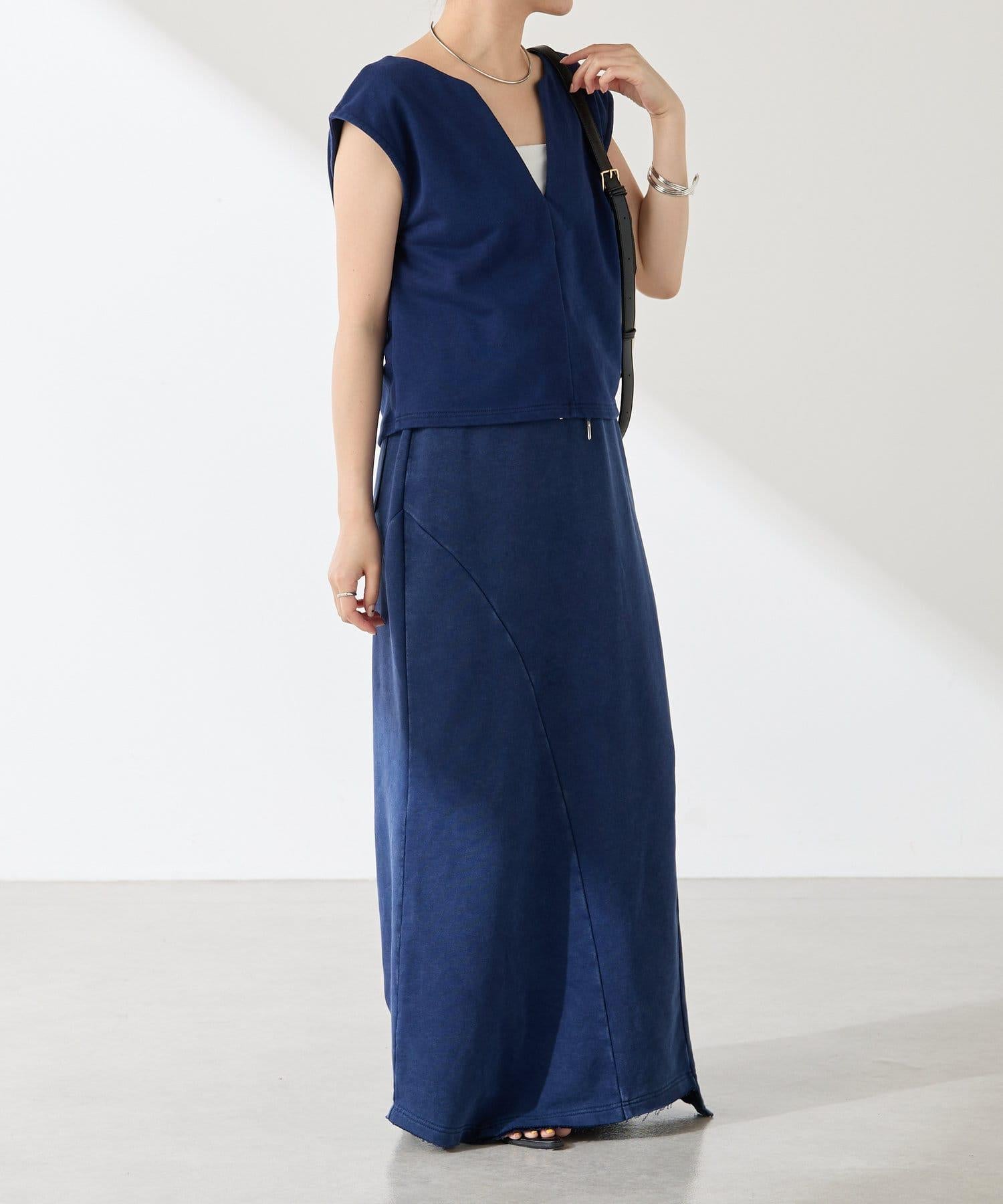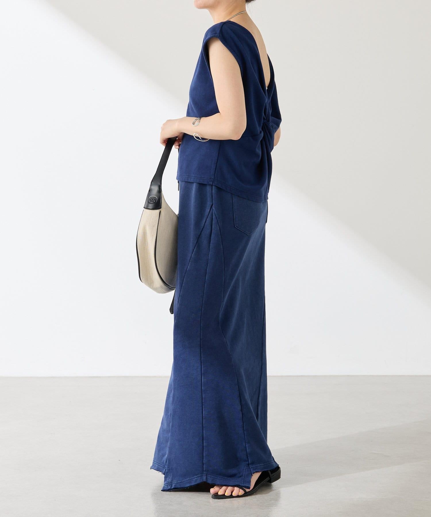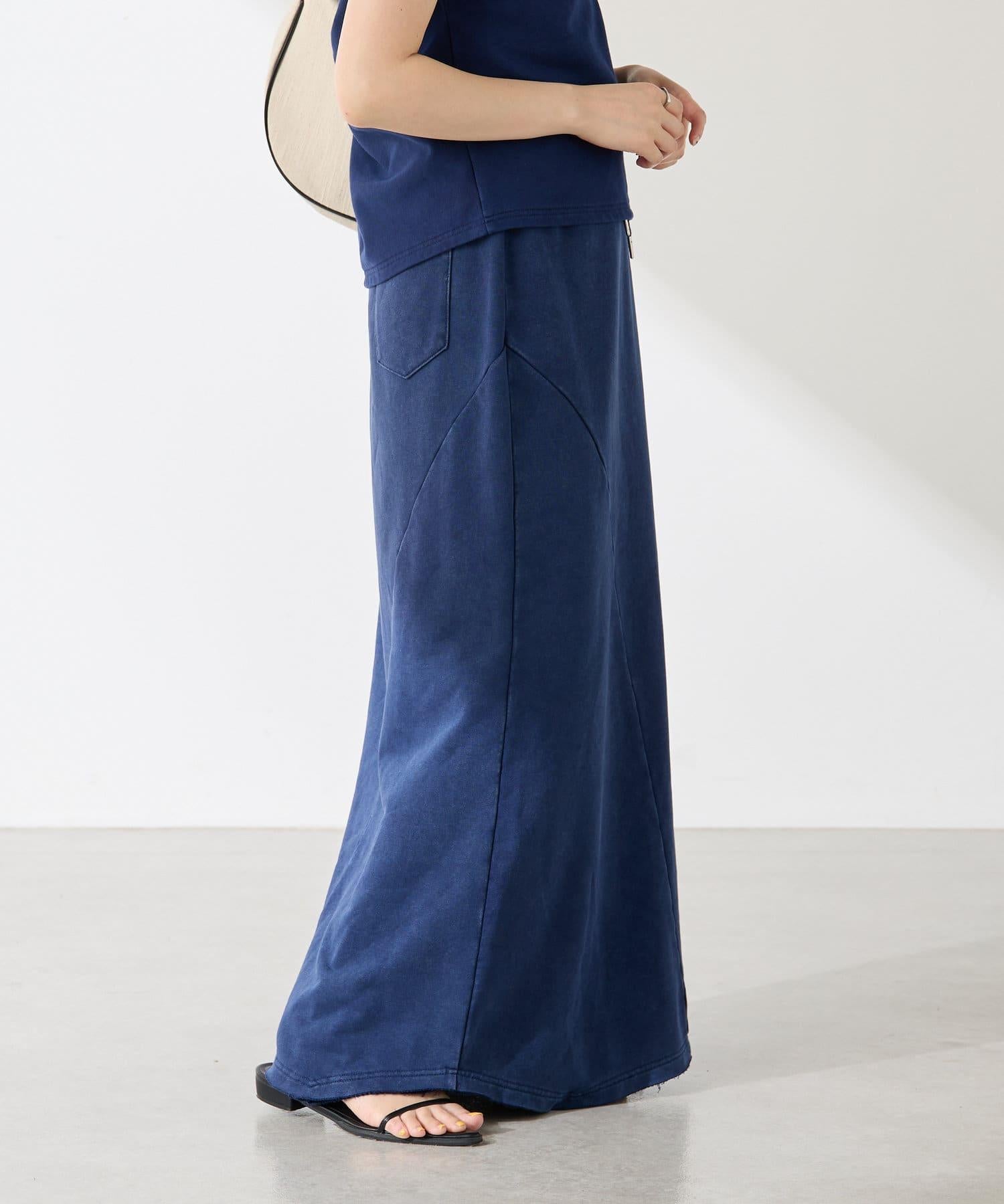 裙身採用衛衣材質,但凹凸有致的染色質感讓它不會過於隨意。