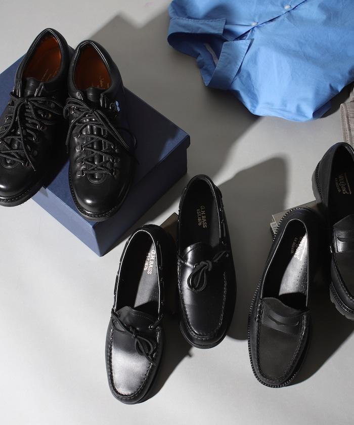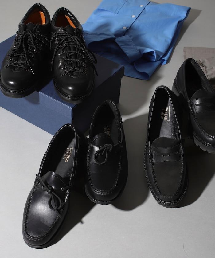 G.H.BASS CAMP MOC 單系帶國內銷售渠道限定款,採用現代而富有彈性的黑色拉絨皮革。