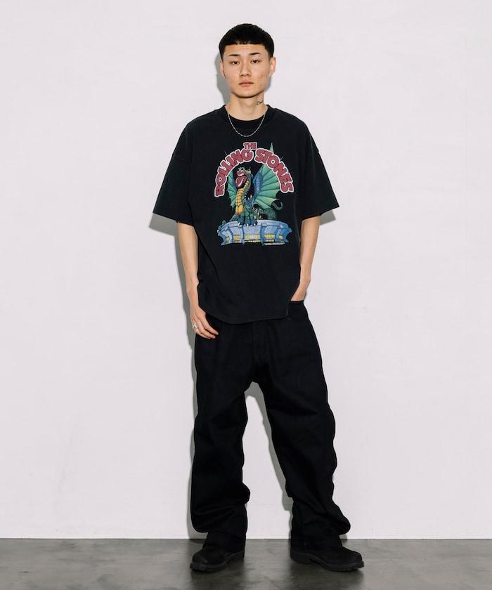 特別定製的 T 恤上印有世界👍搖滾樂隊滾石樂隊的圖案。
