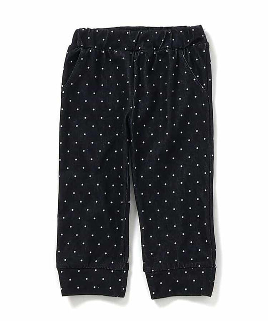 滿版圖案彈力華夫格下襬荷葉邊喇叭褲