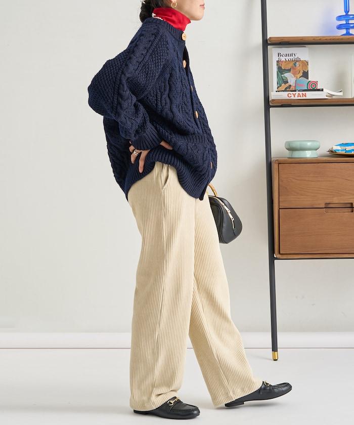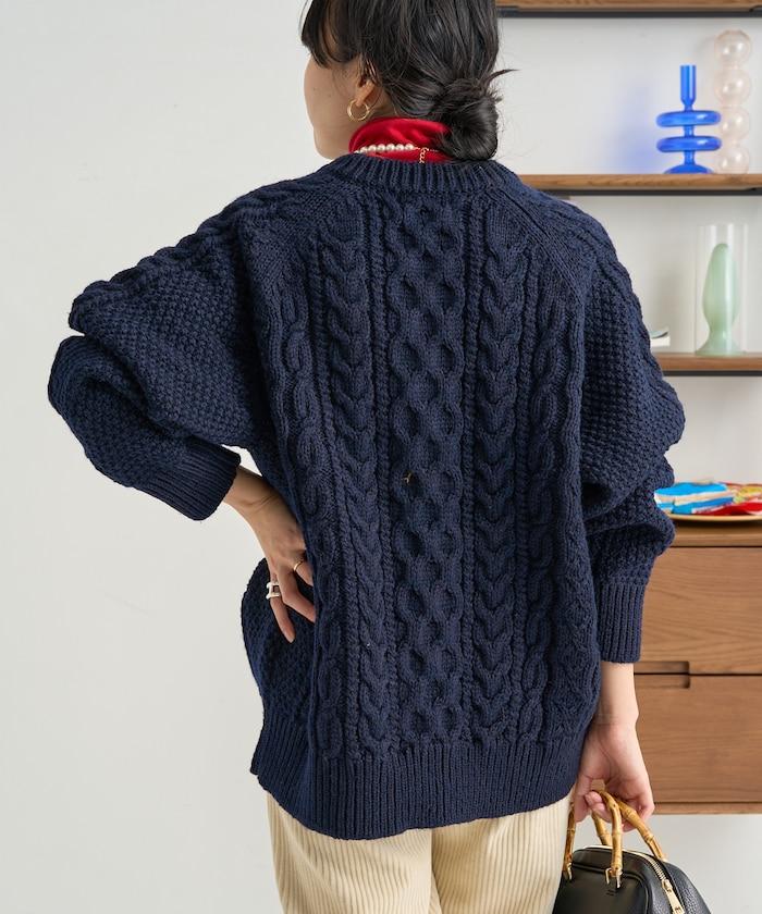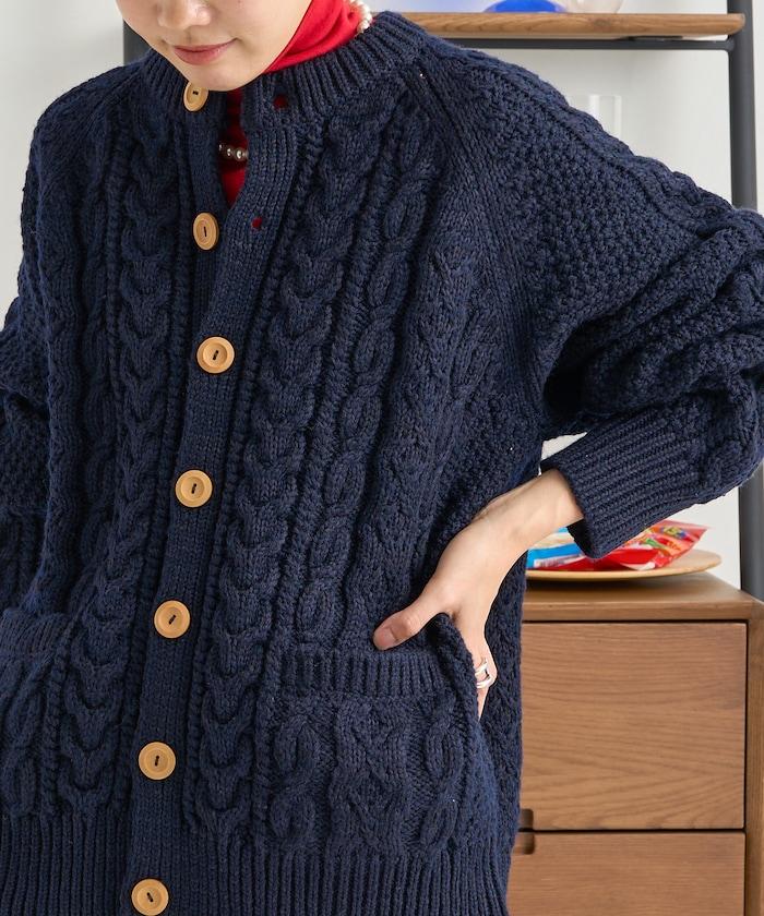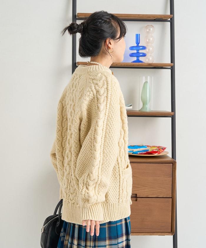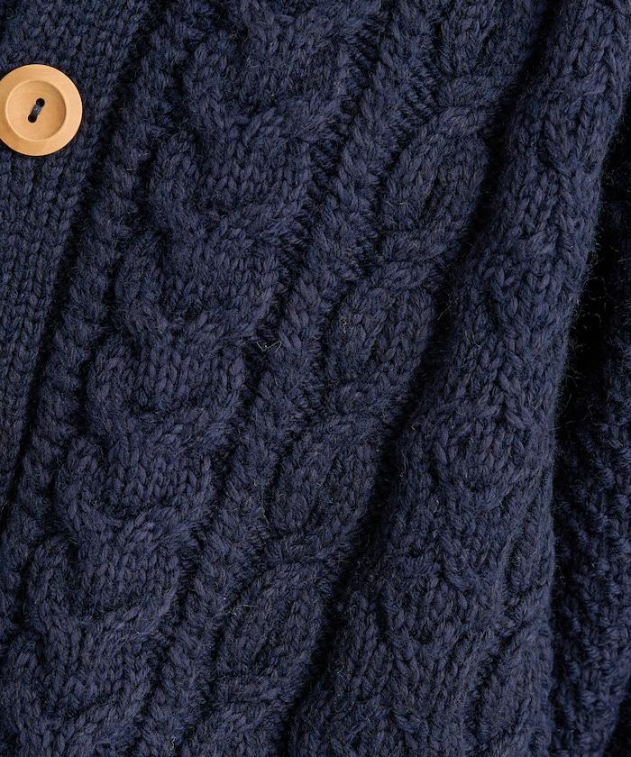 這款針織開衫再現了傳統的針織工藝,又稱阿蘭針織。