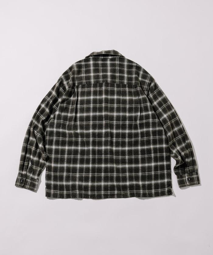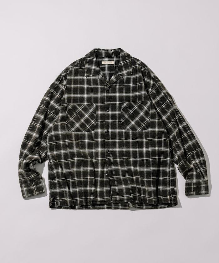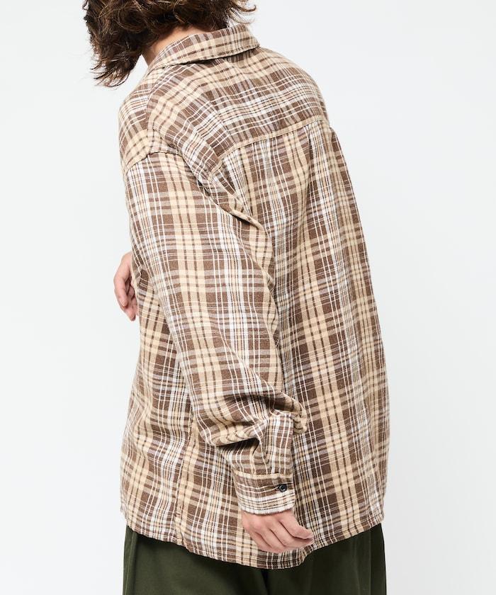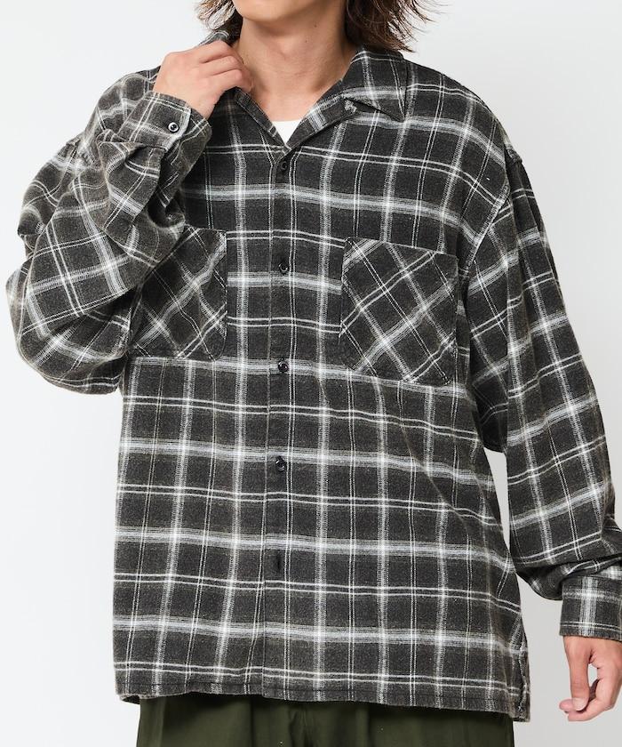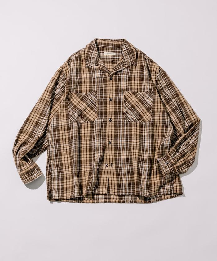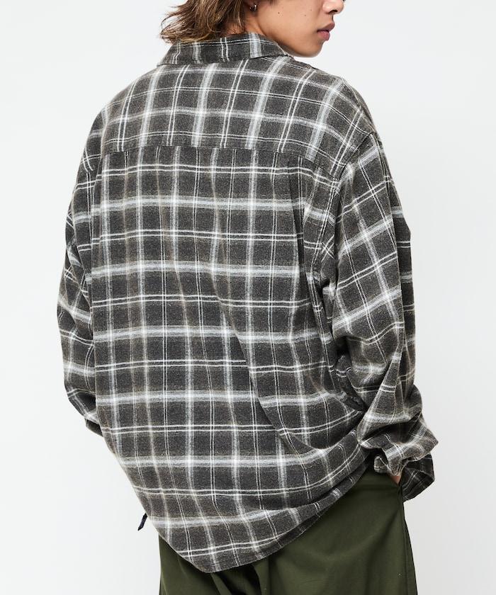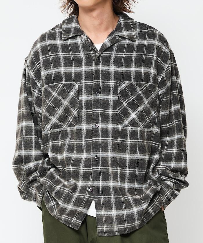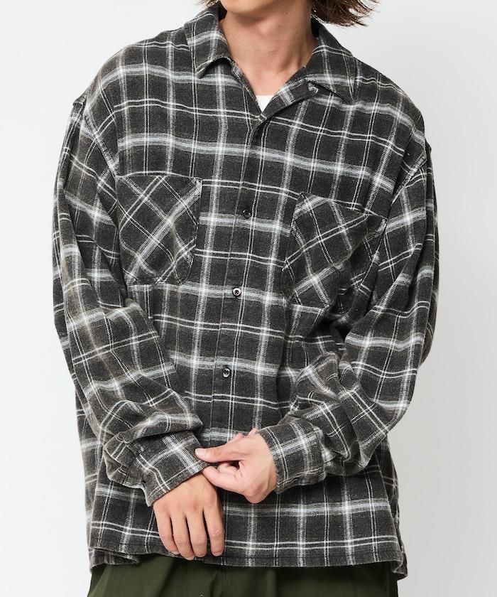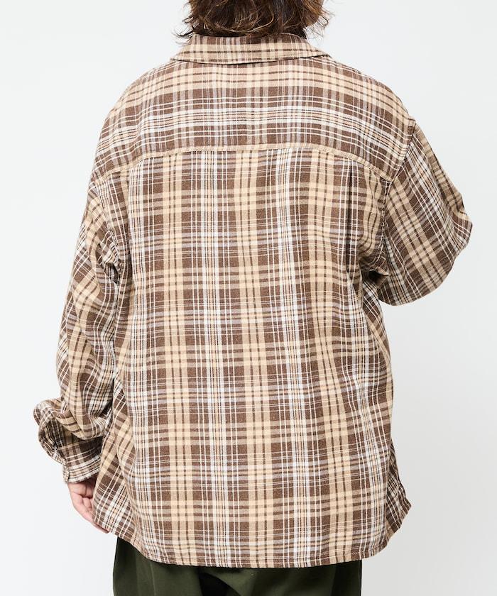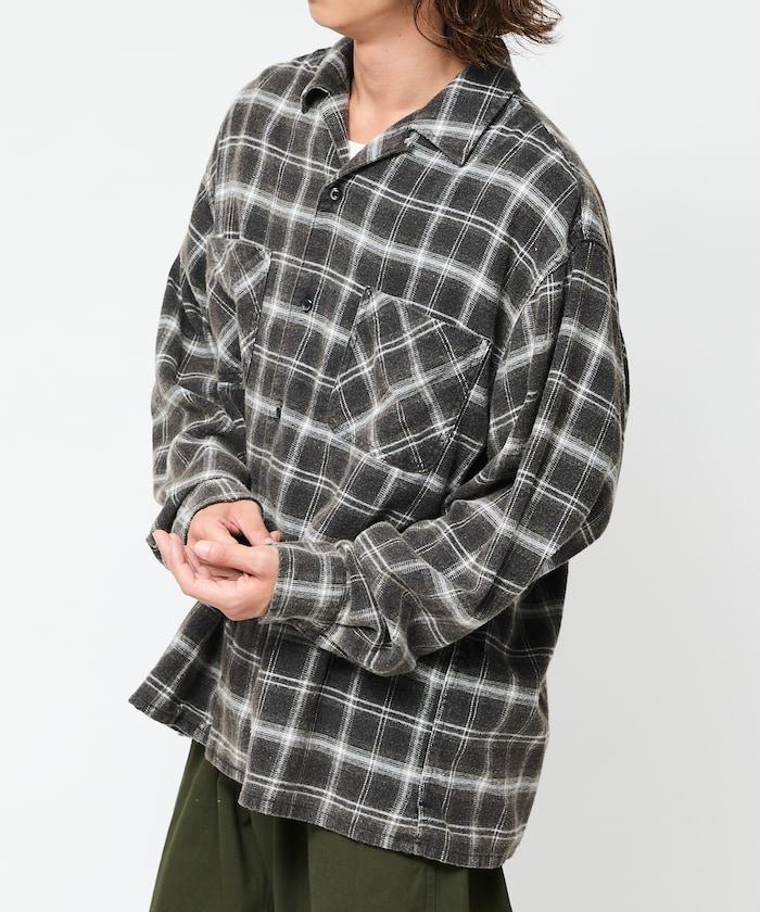 漂白工藝開領格子長袖襯衫