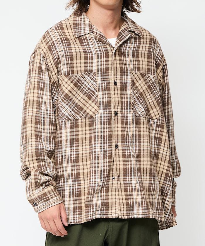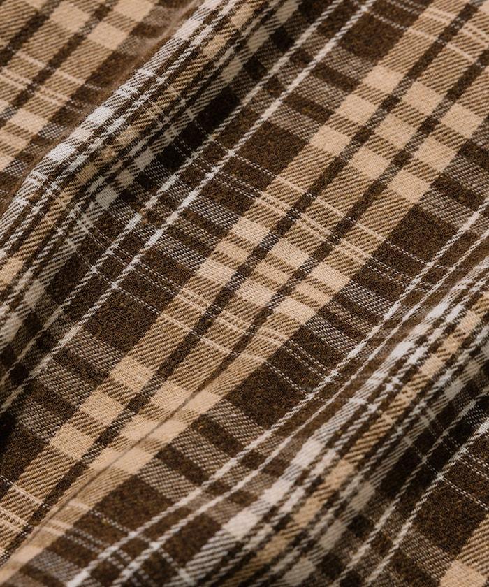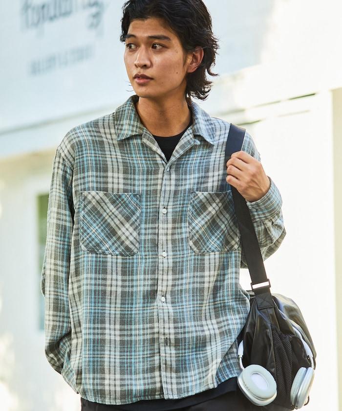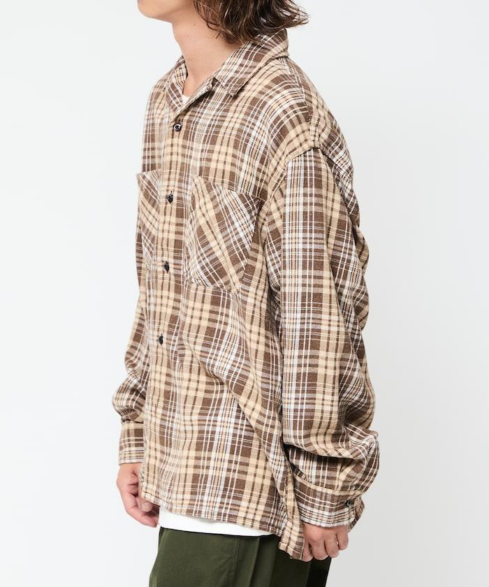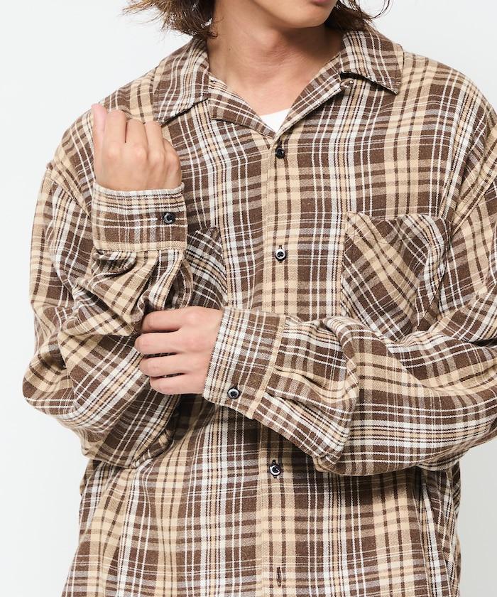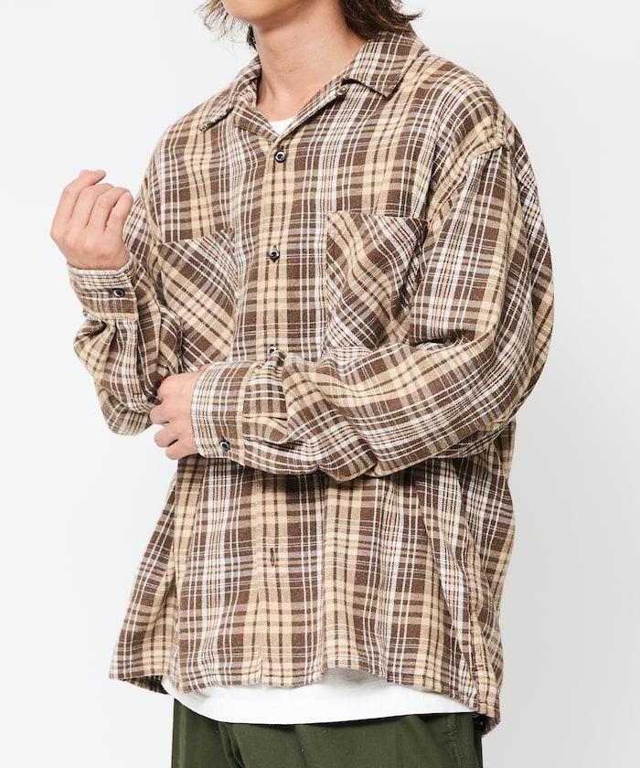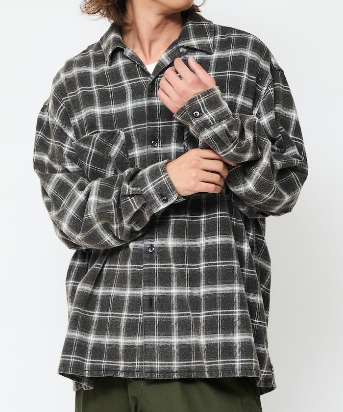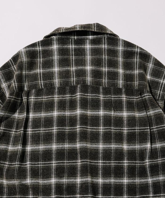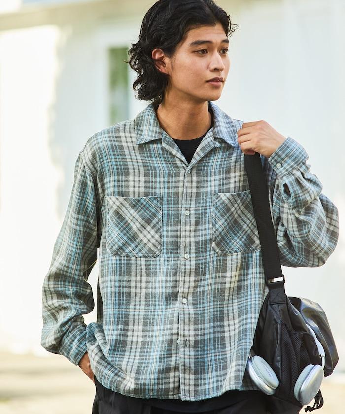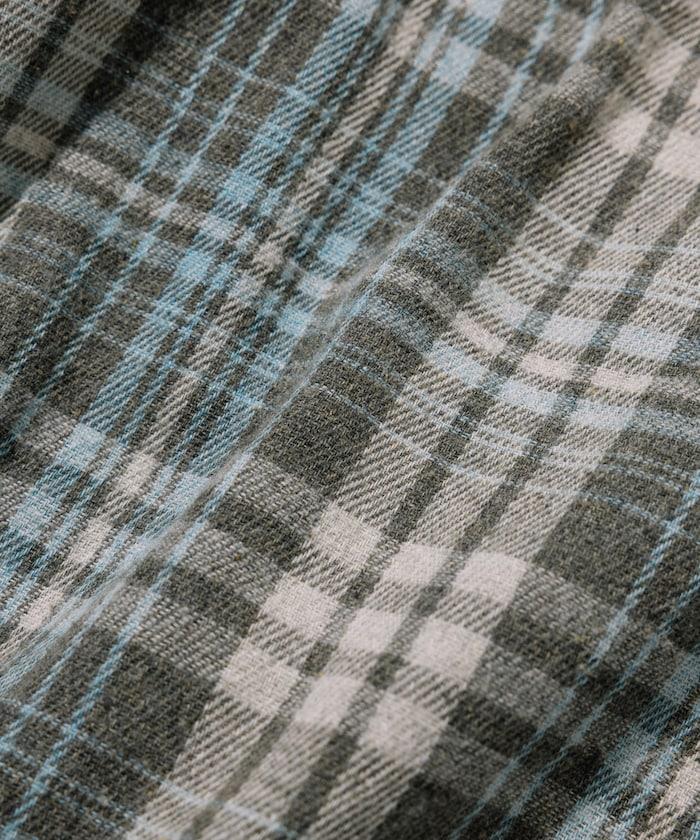 漂白工藝開領格子長袖襯衫