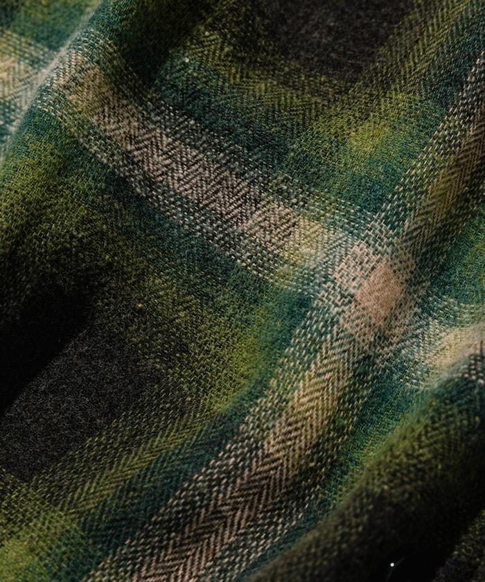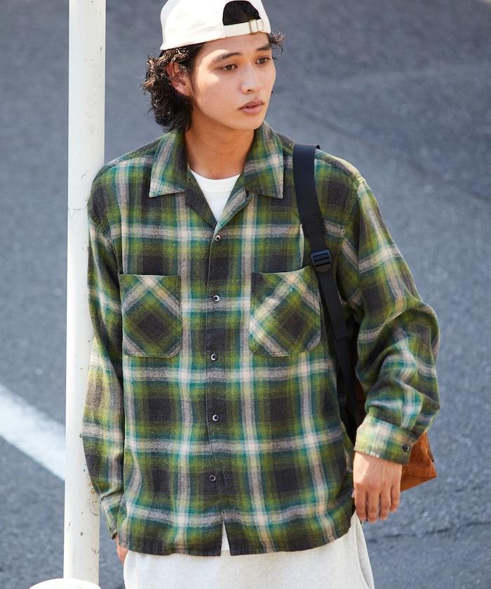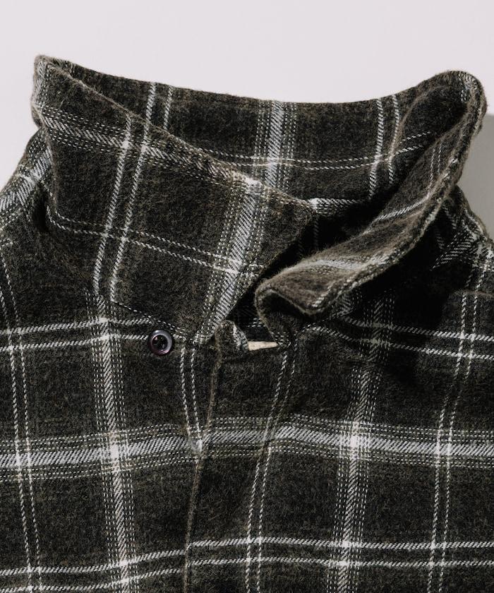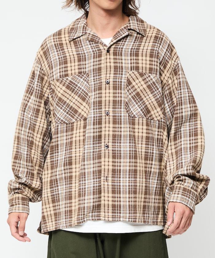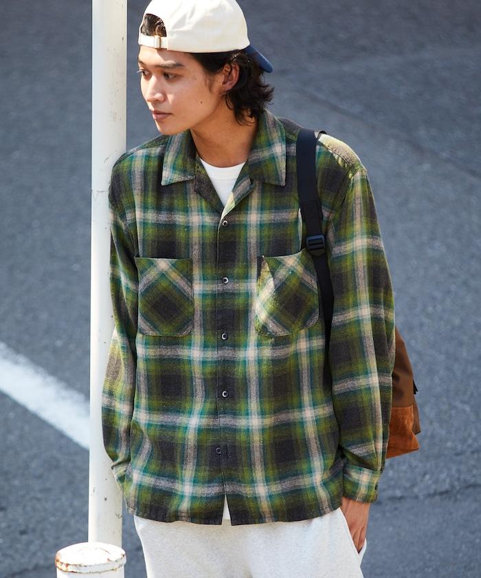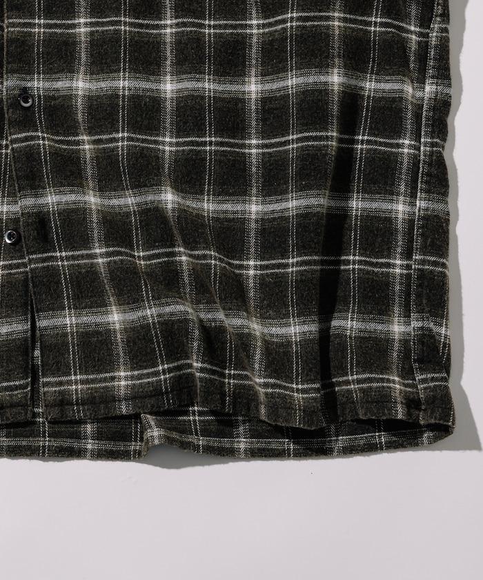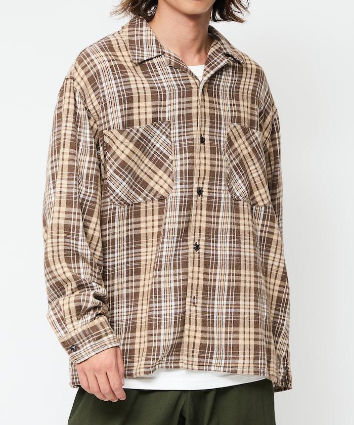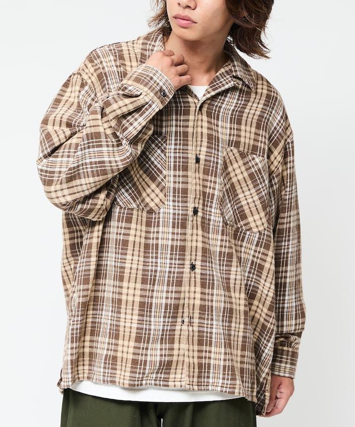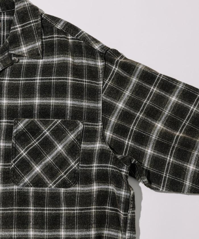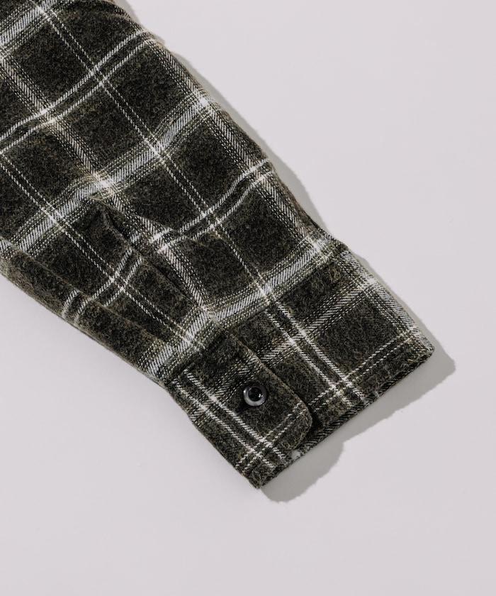 漂白工藝開領格子長袖襯衫