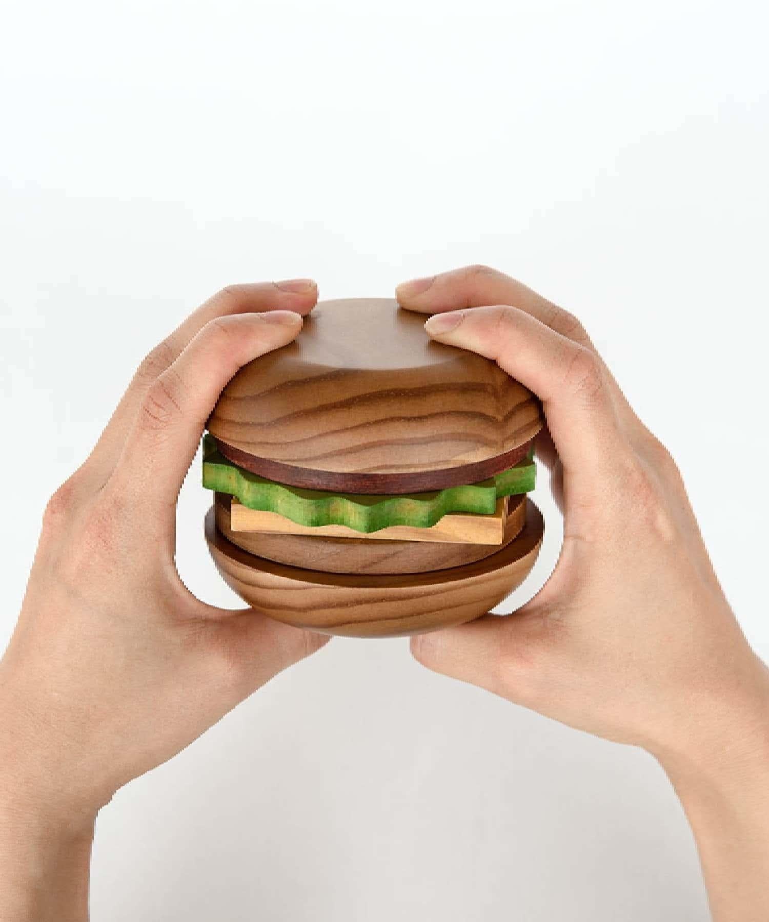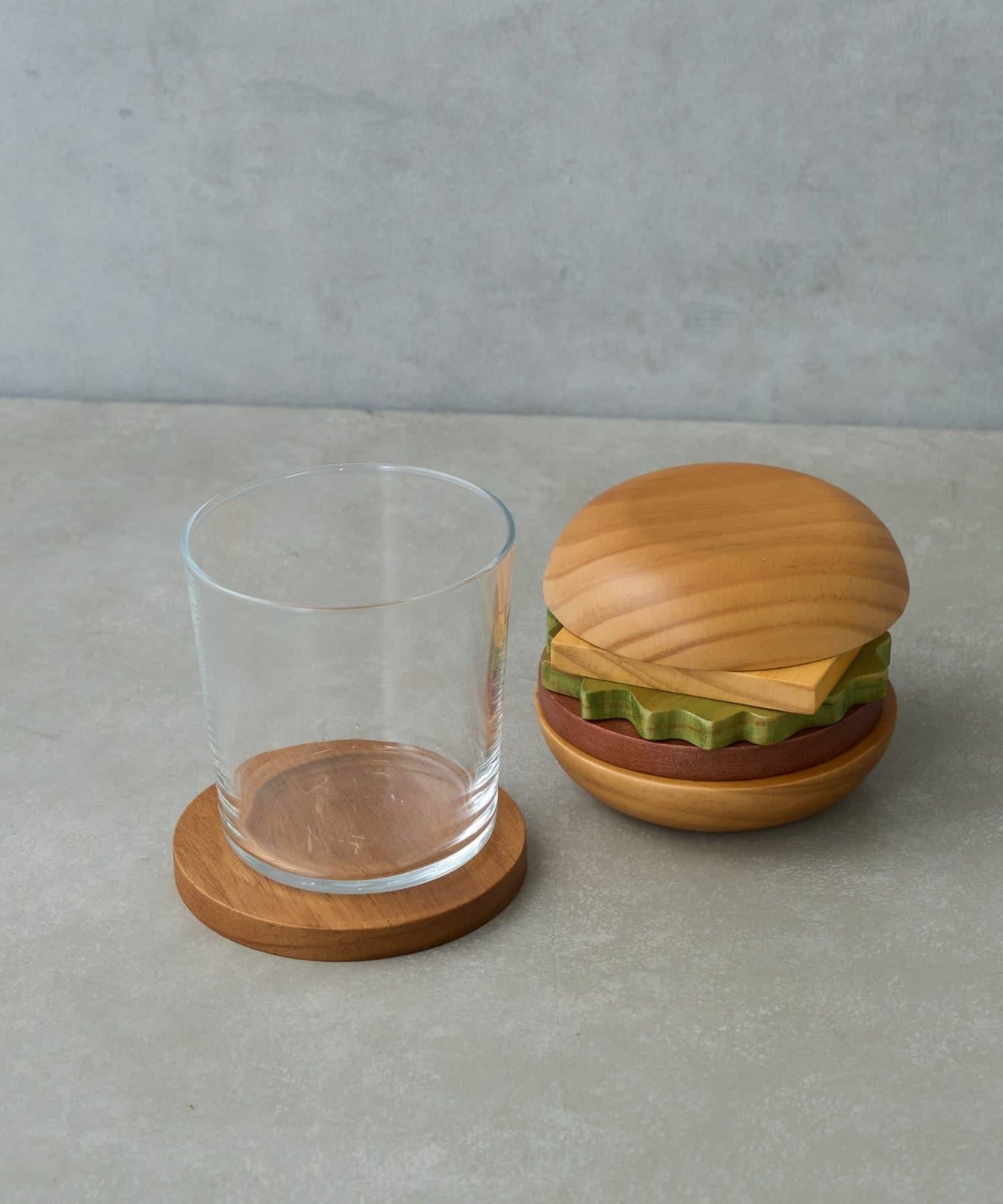 就像真的一樣漢堡形狀的杯墊套裝由天然木材製成。