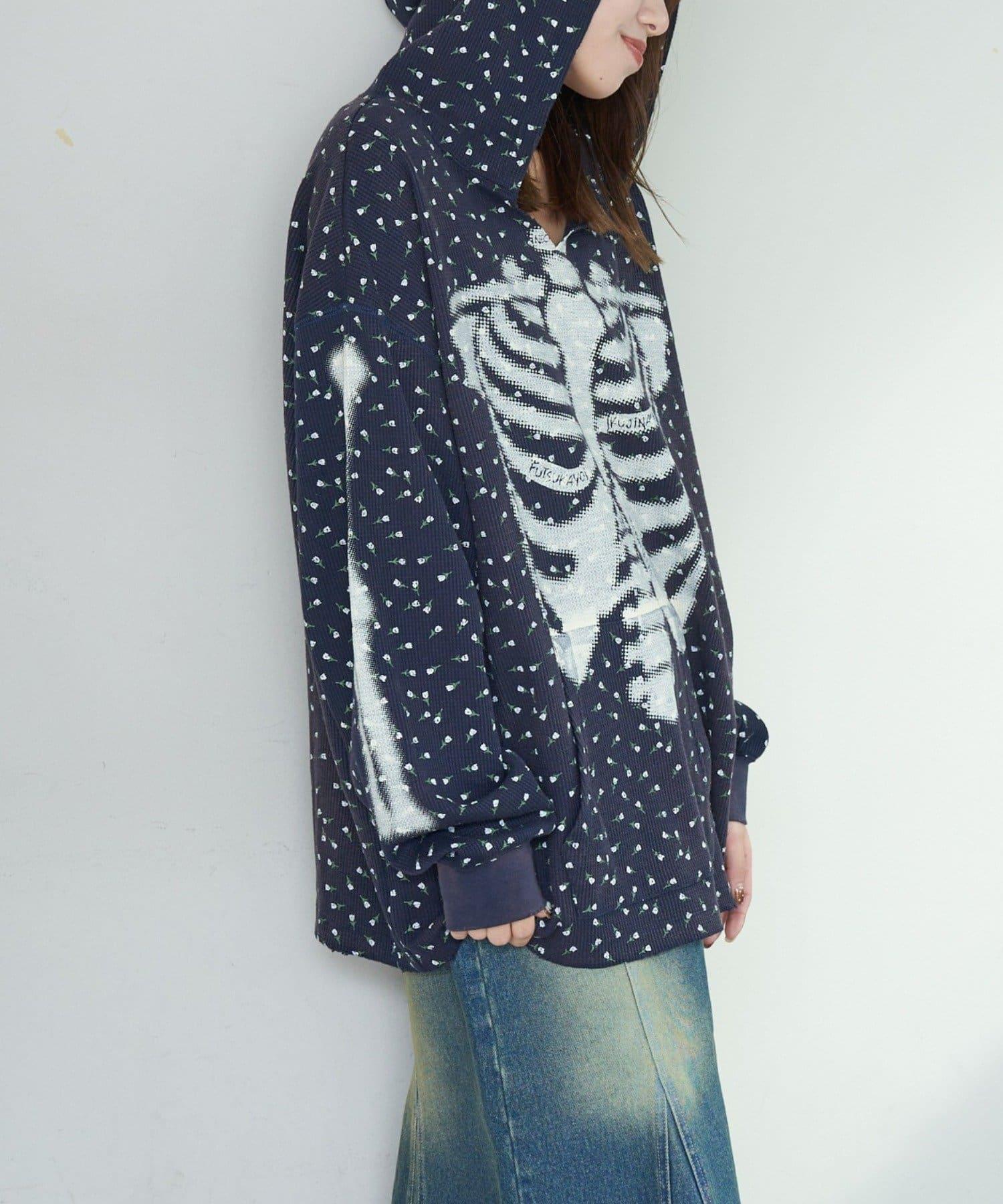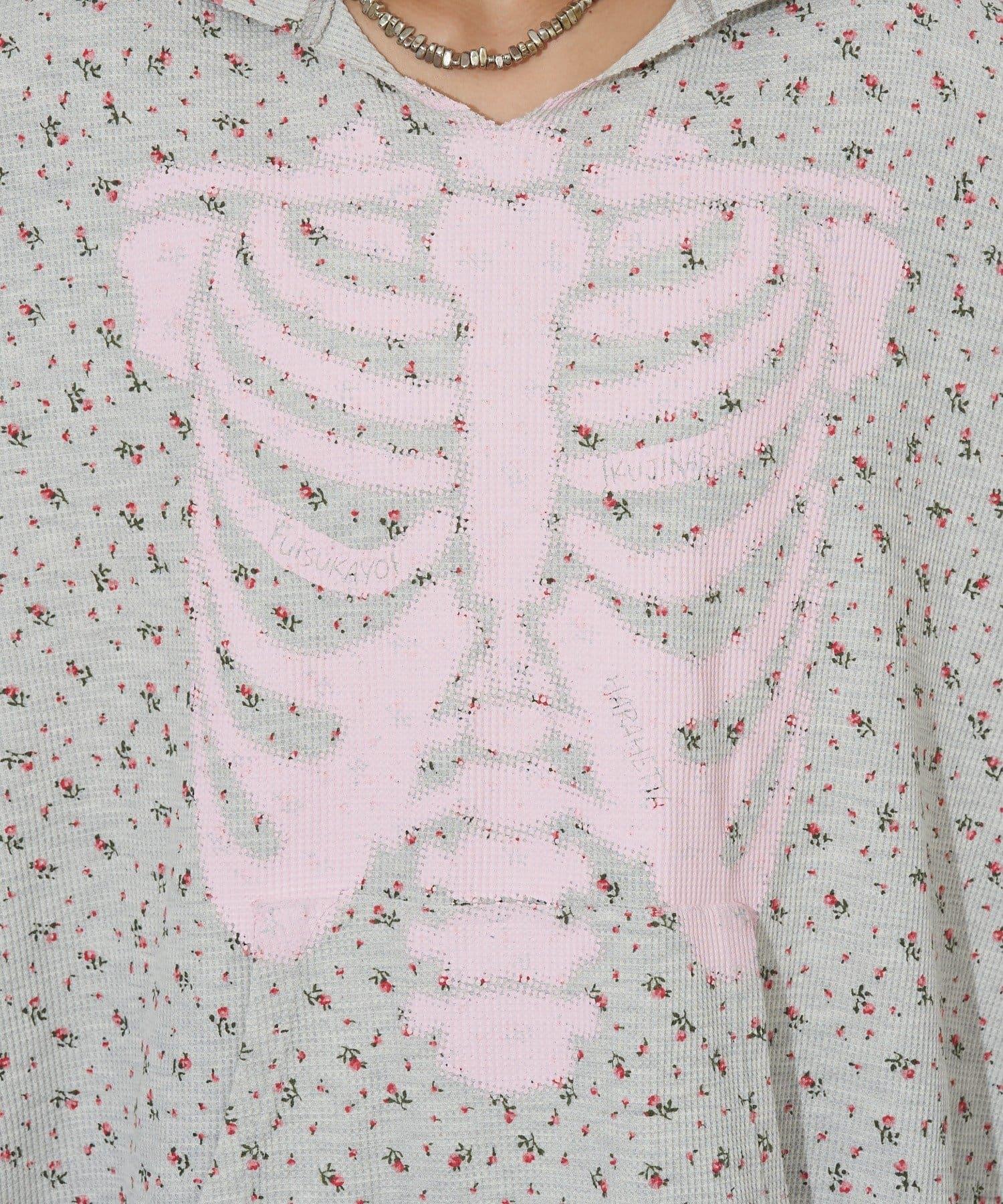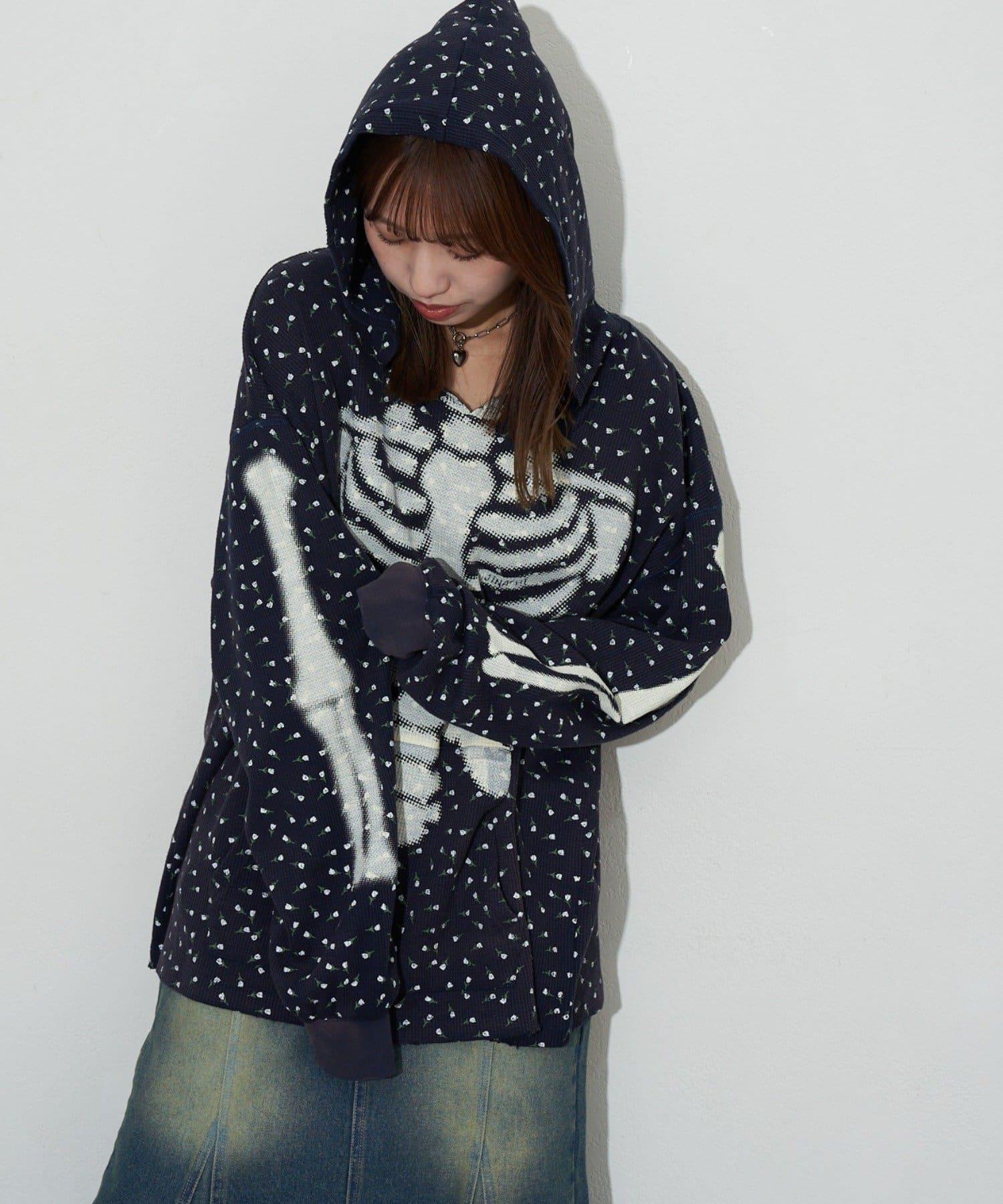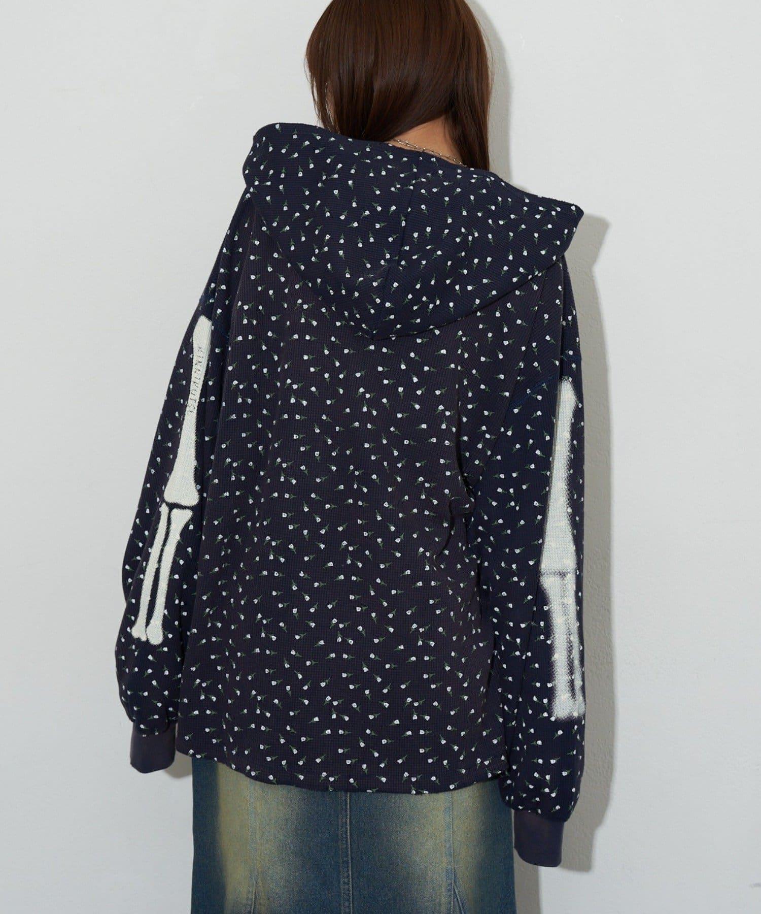 Skipper 連帽衫,褪色的花朵圖案上疊加了模糊的骷髏印花。