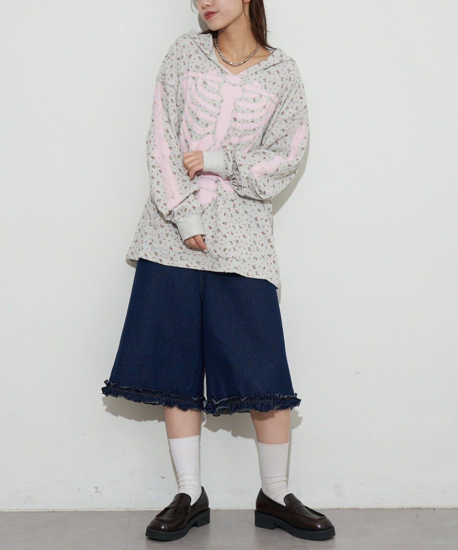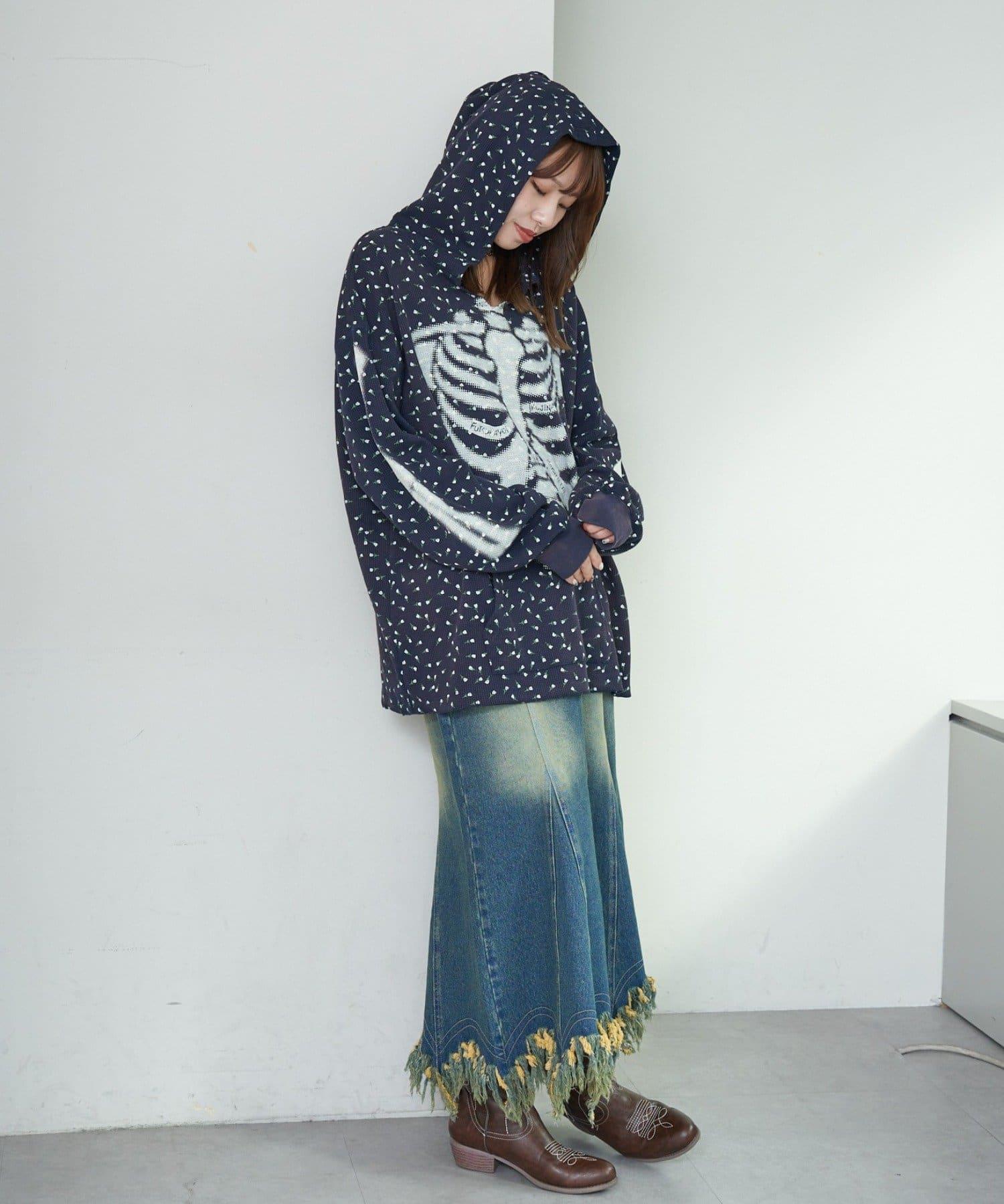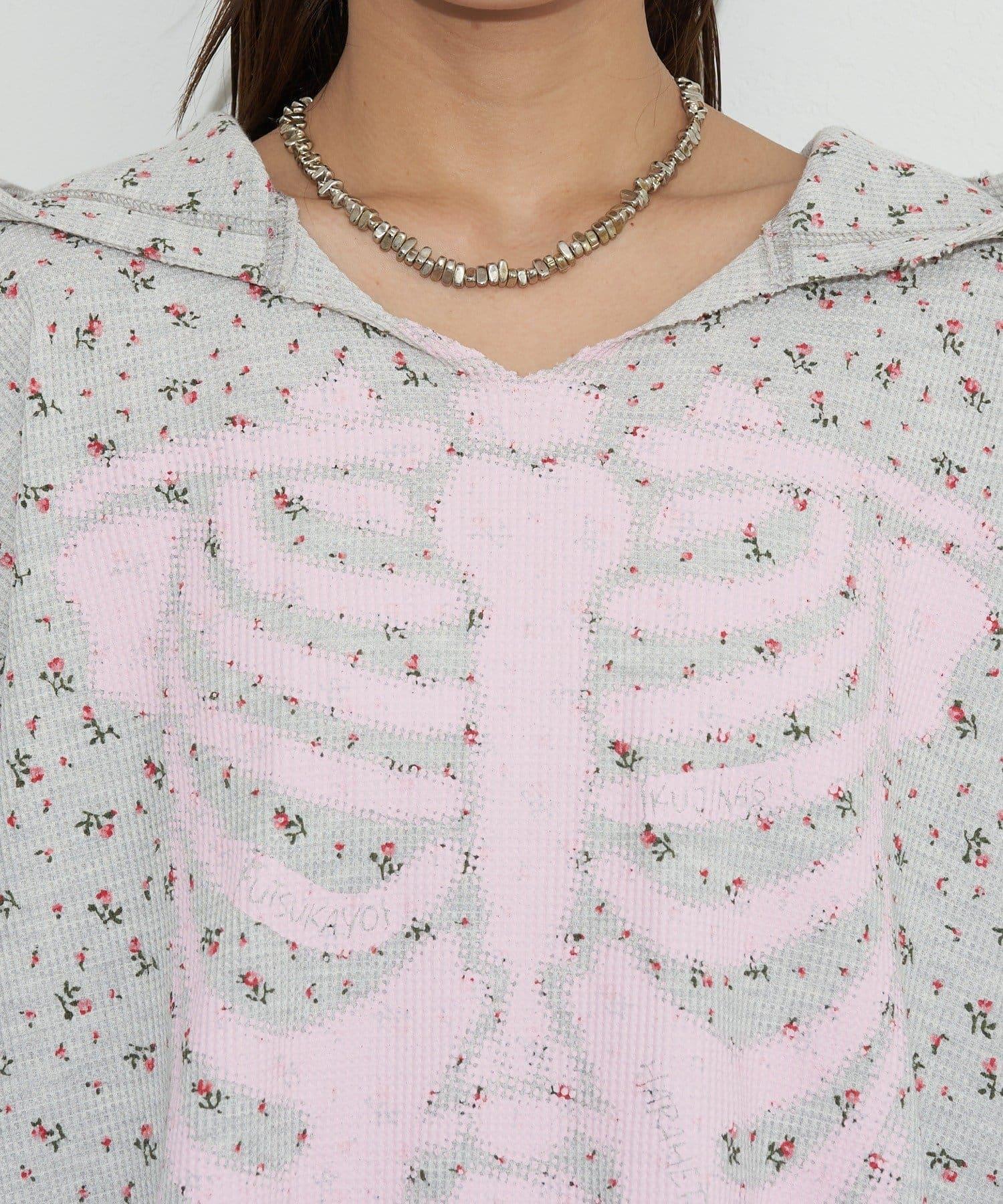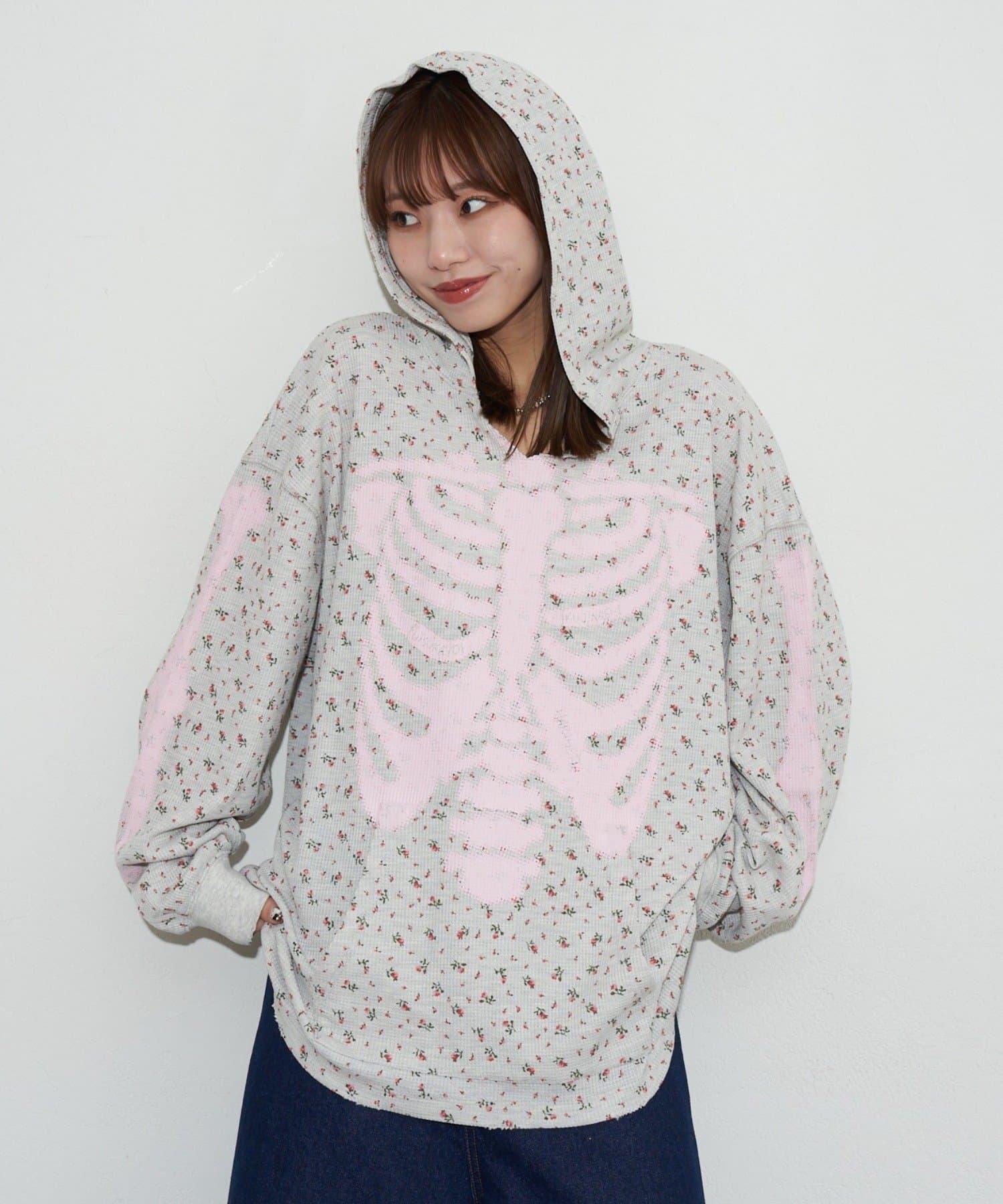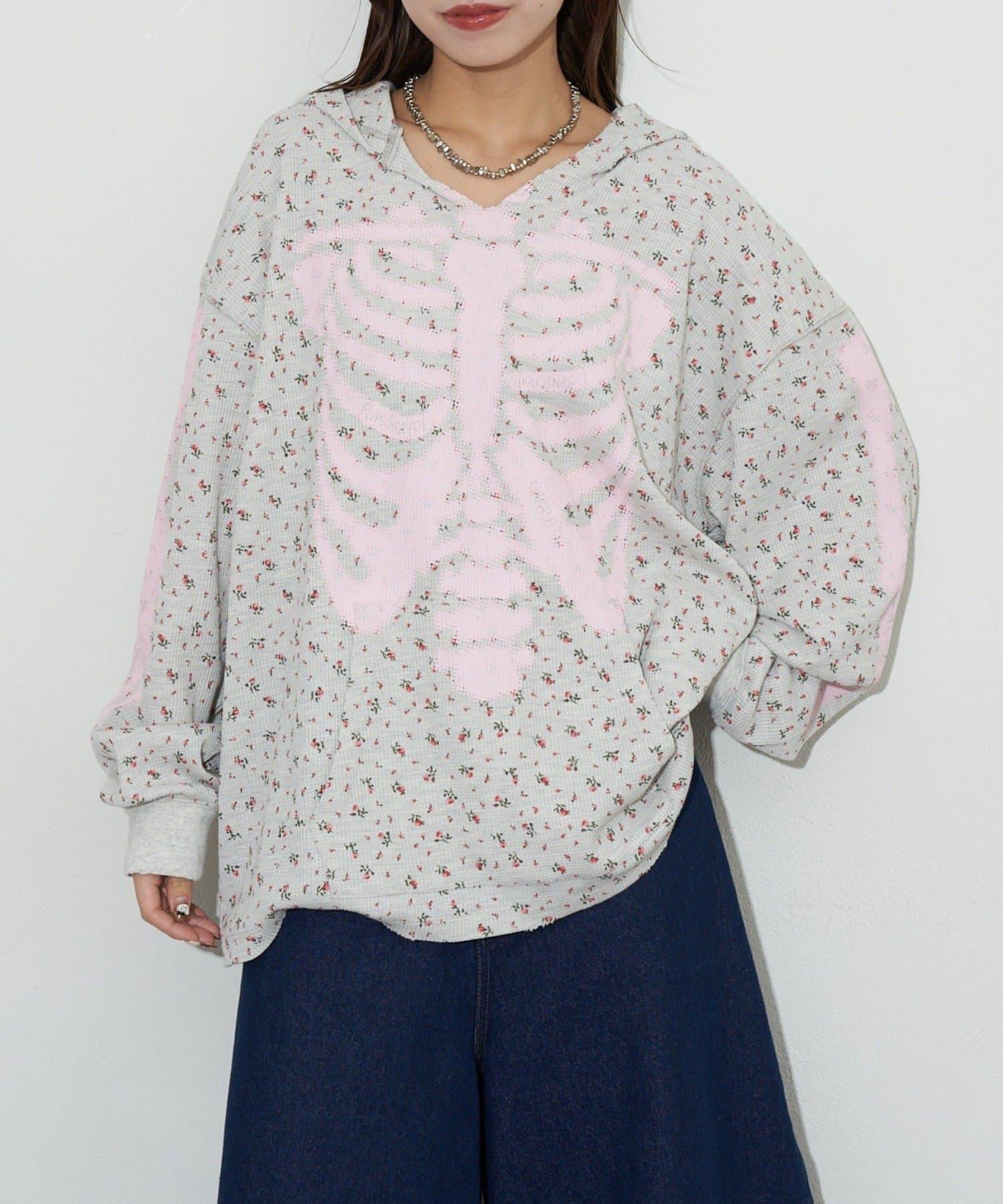 Skipper 連帽衫,褪色的花朵圖案上疊加了模糊的骷髏印花。