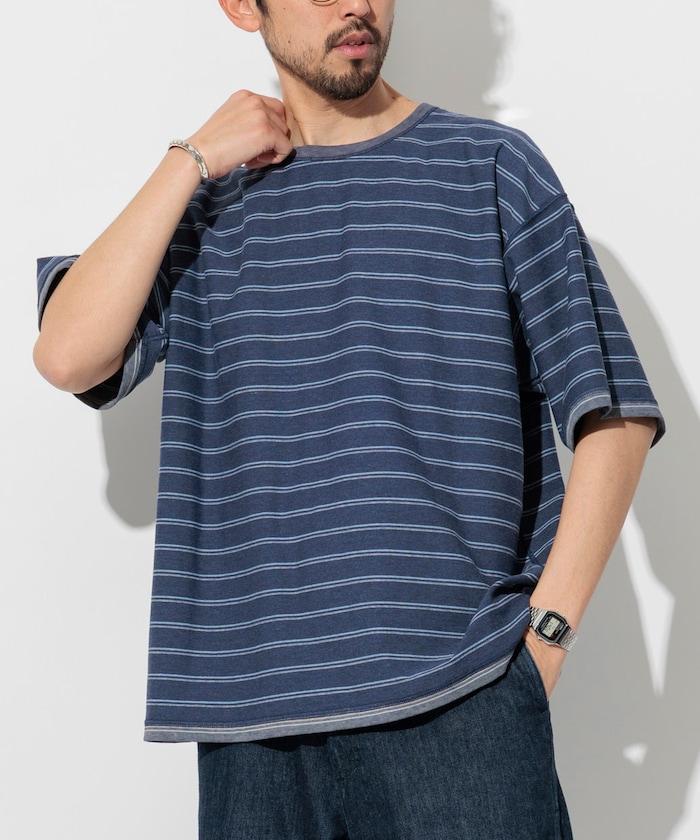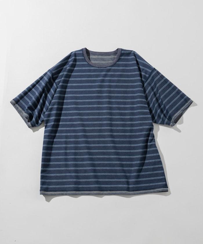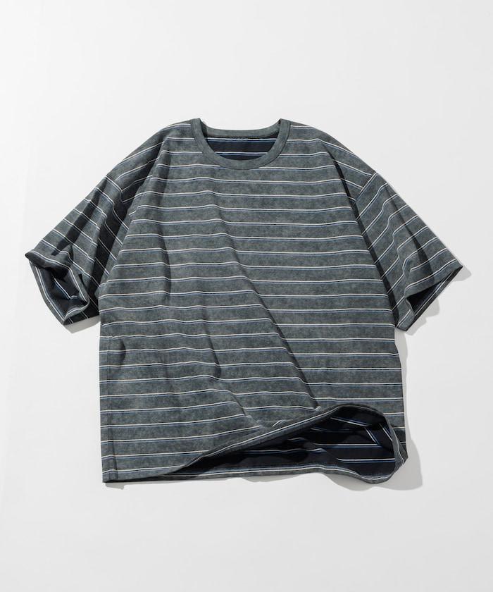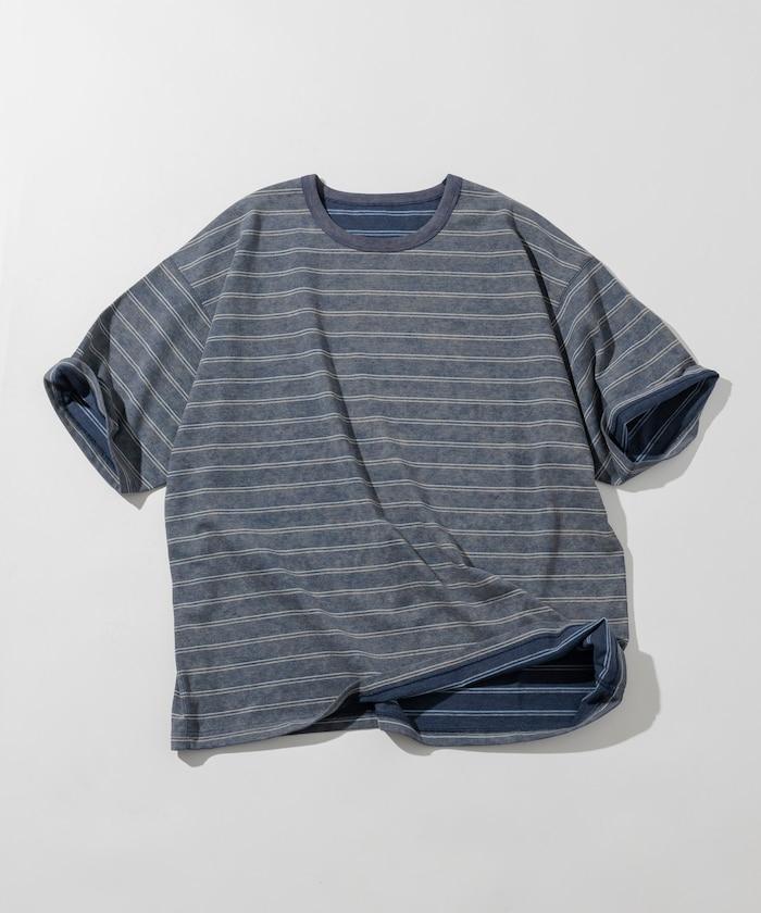 漸變印花 可反穿 圓領 條紋T恤