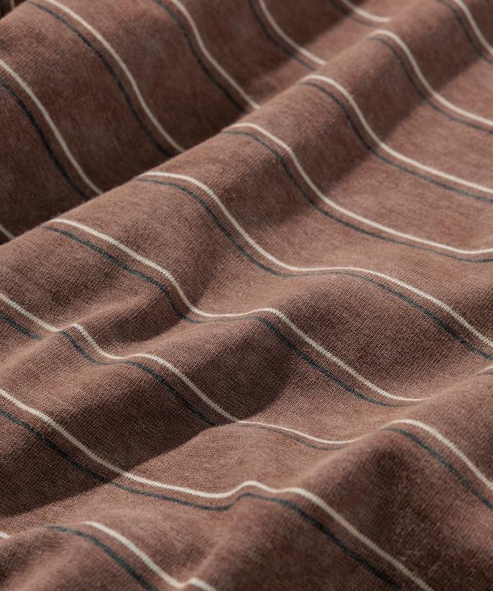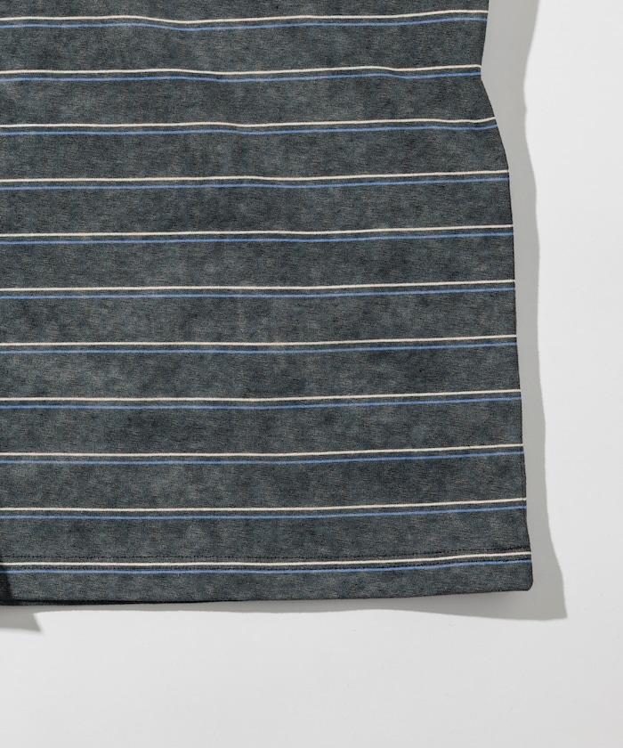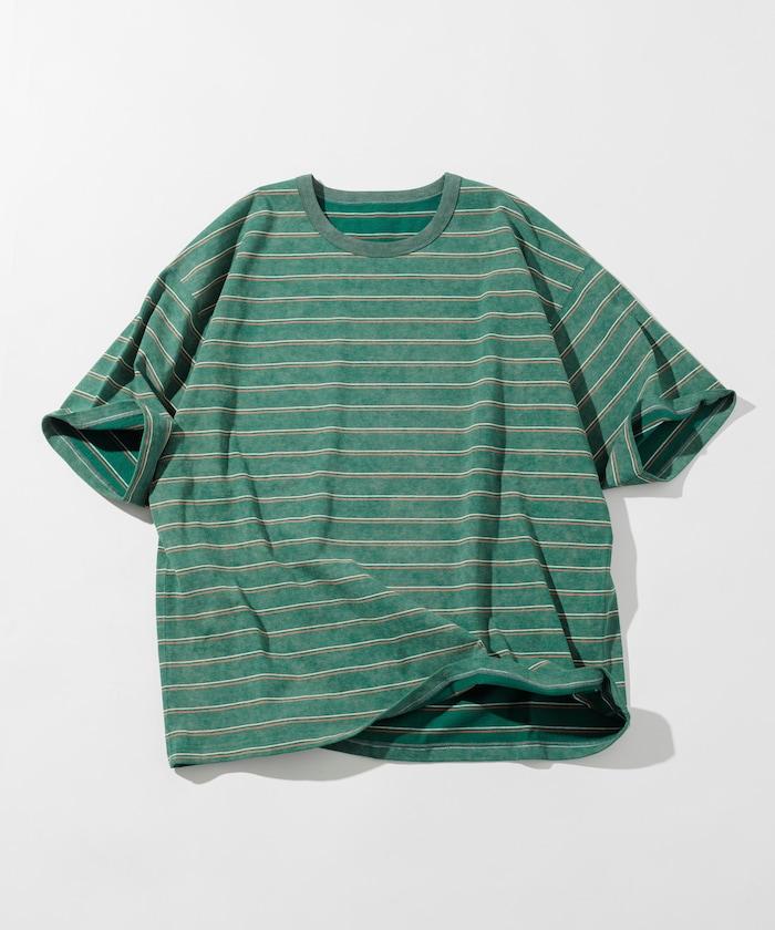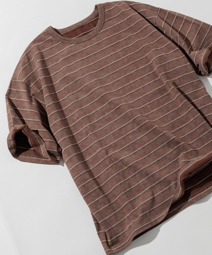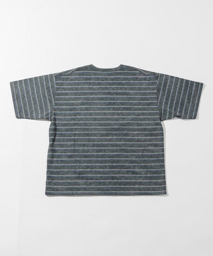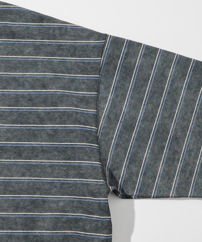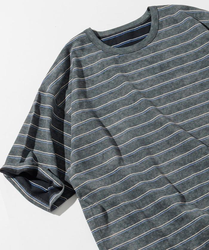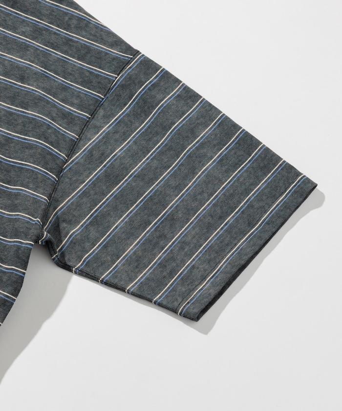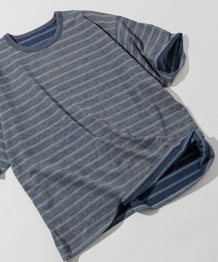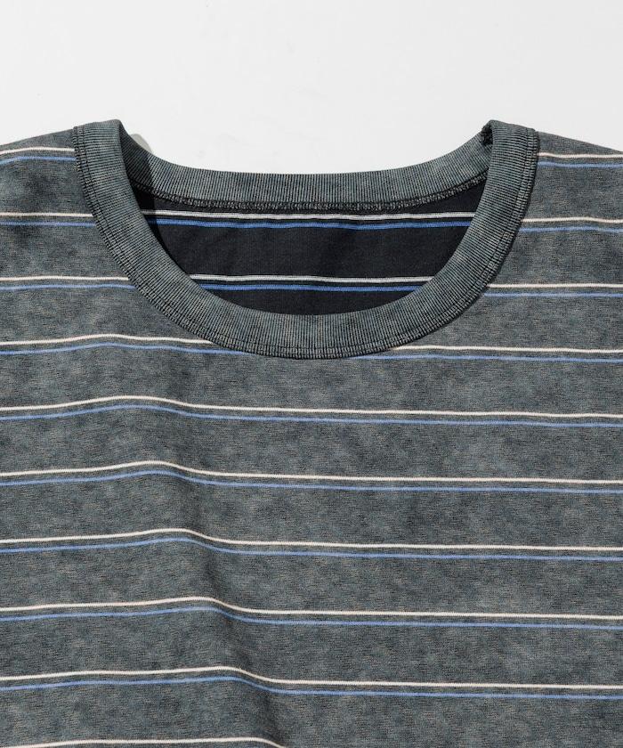 褪色印花雙面圓領條紋 T 恤
