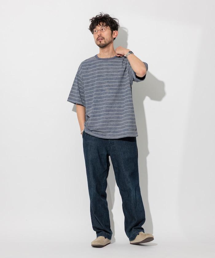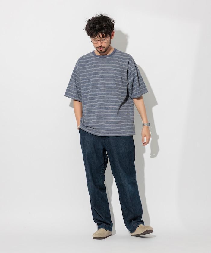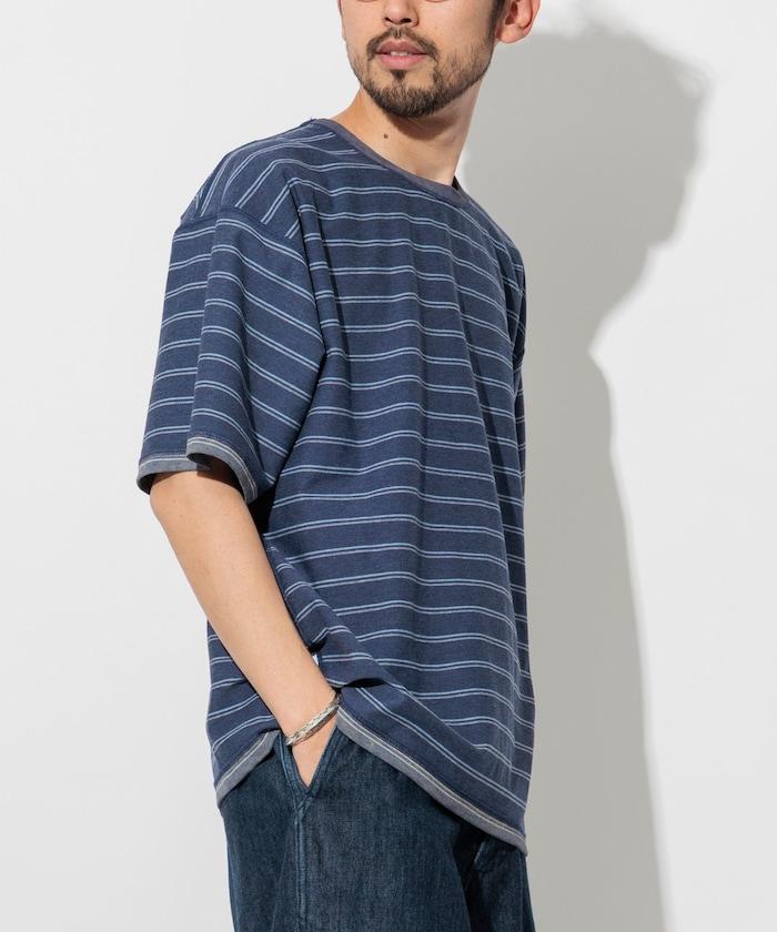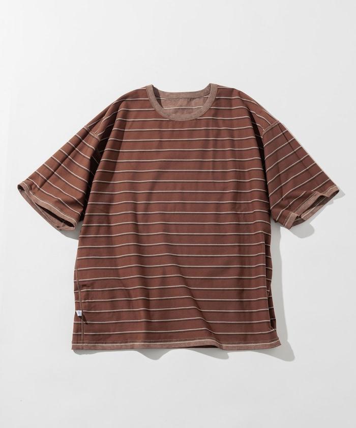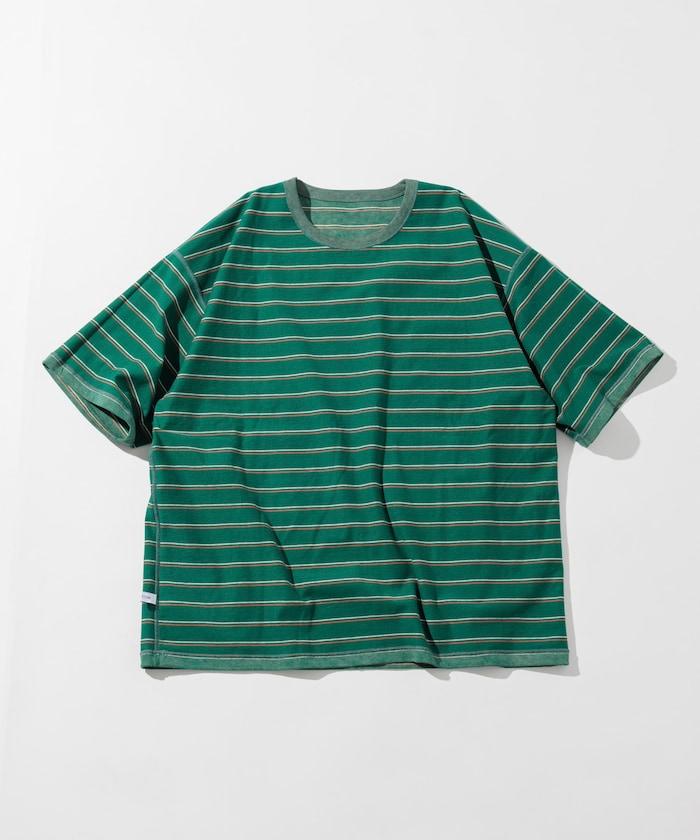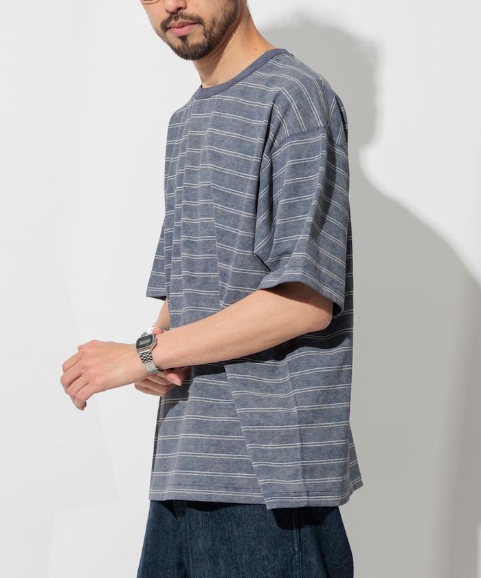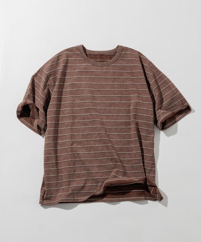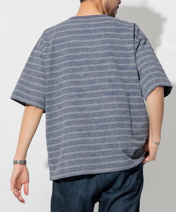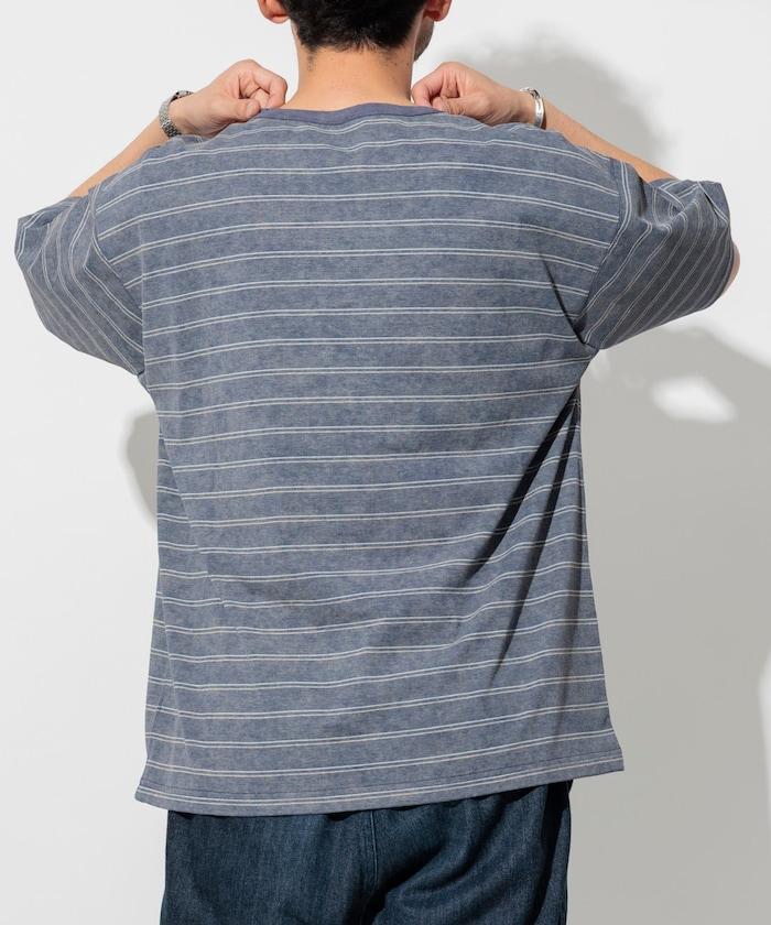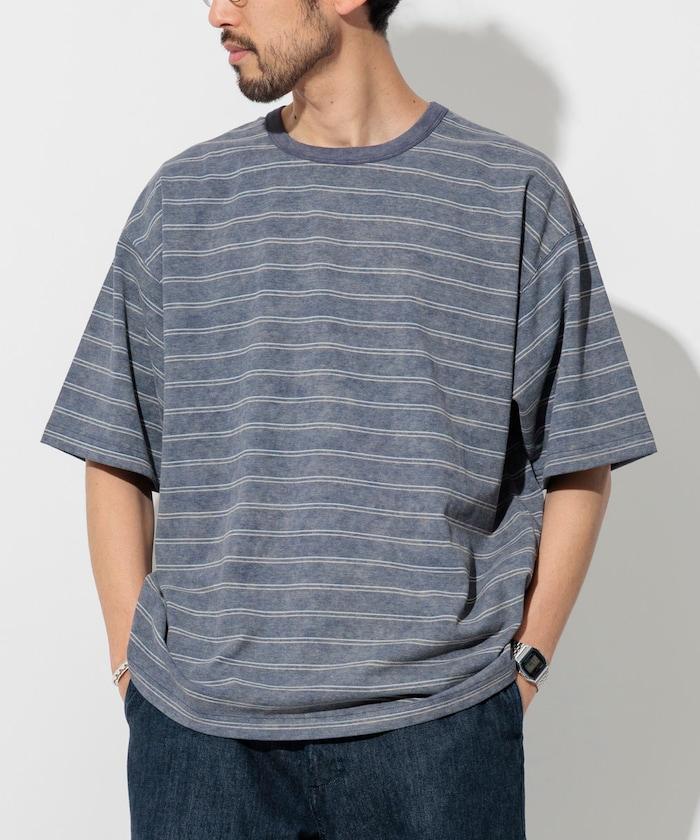 褪色印花雙面圓領條紋 T 恤