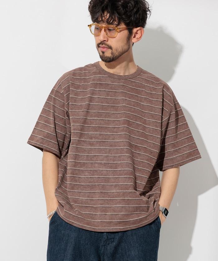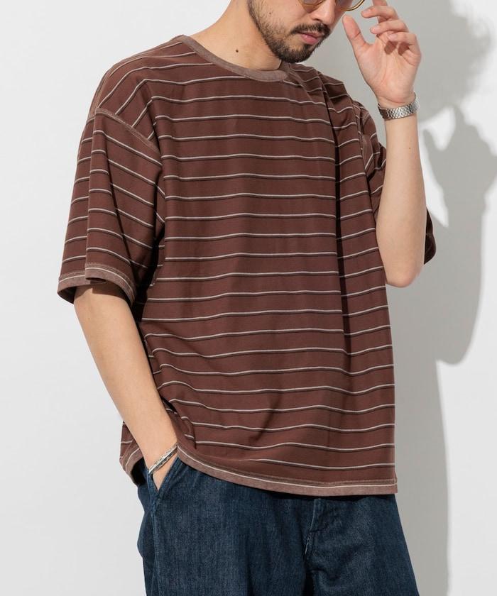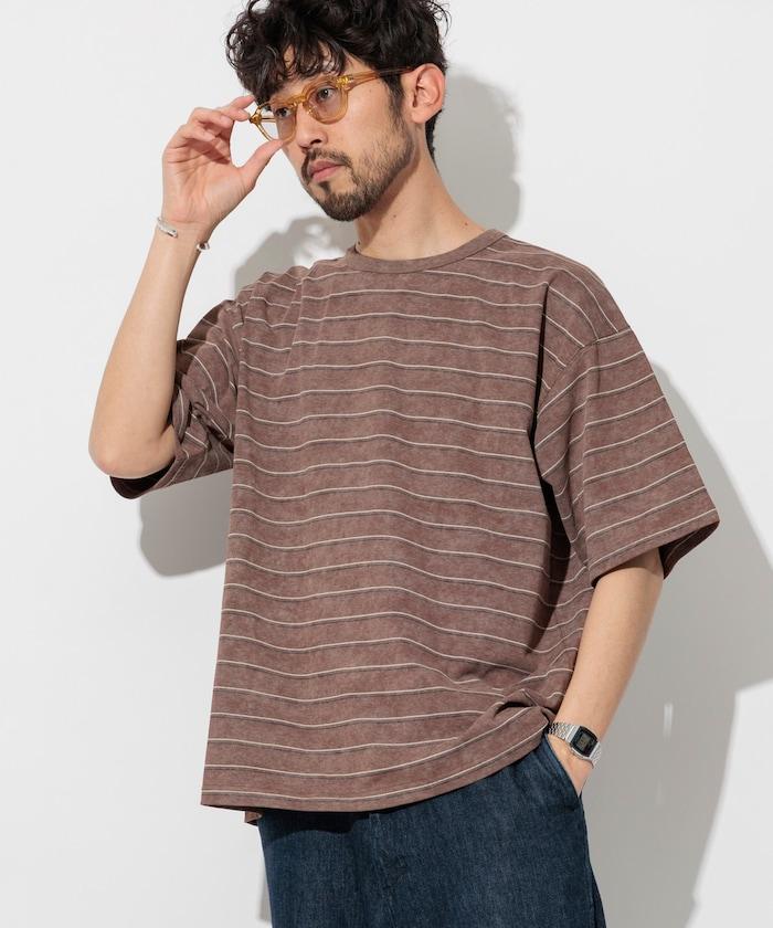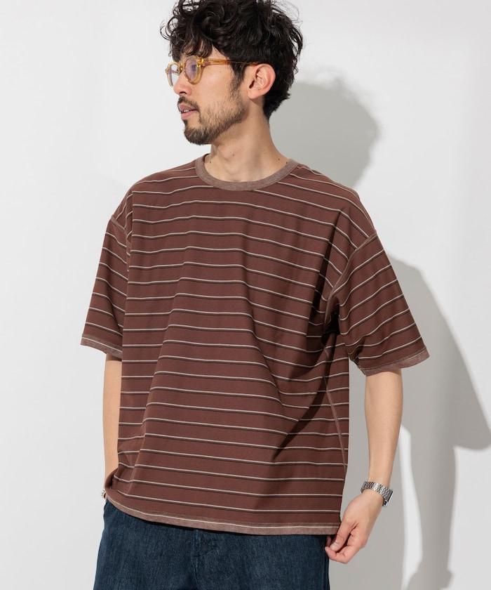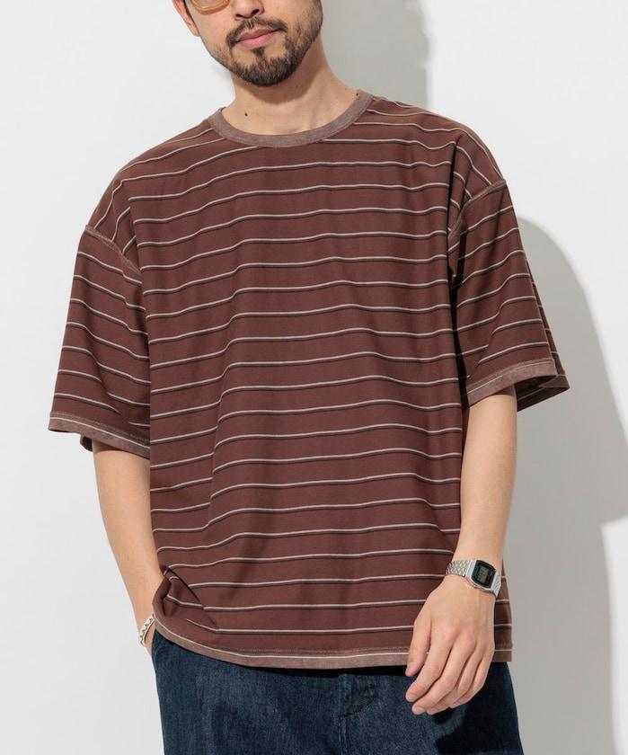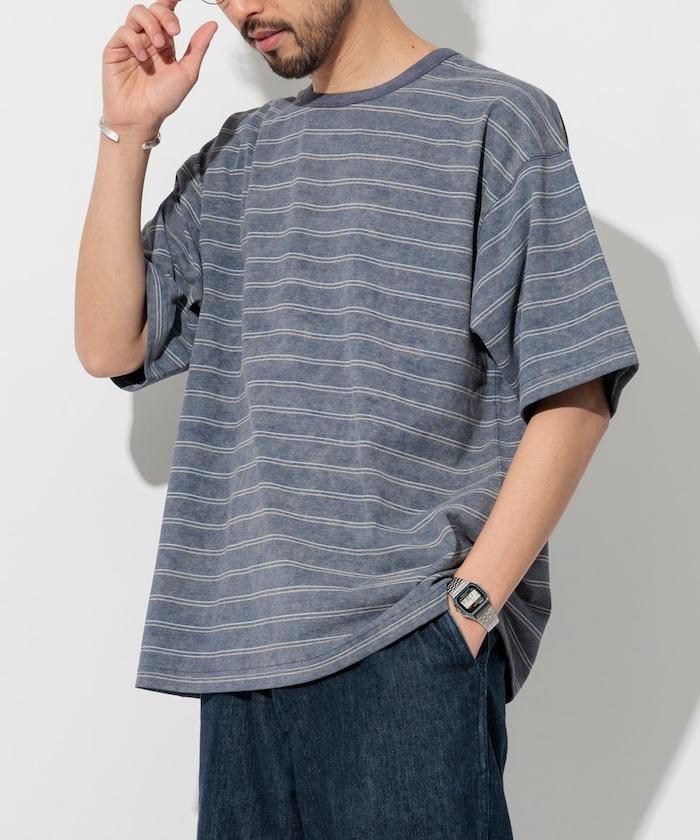 多條紋 T 恤,褪色印花,凹凸有致。