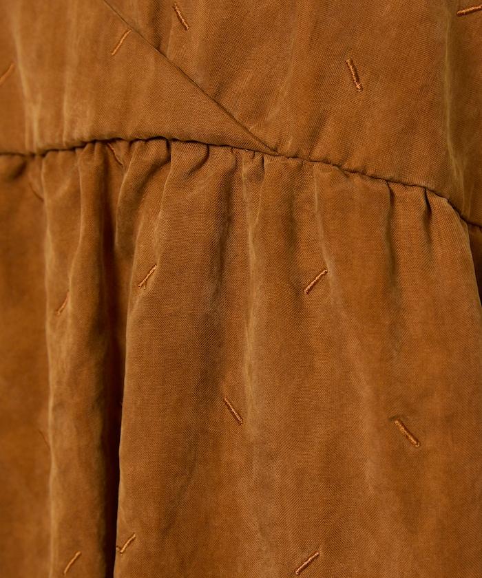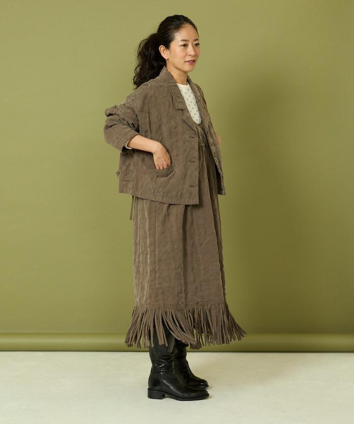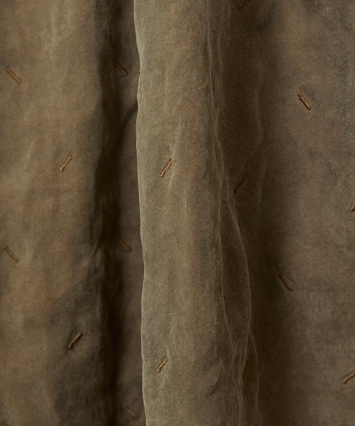 面料在縫製後經過水洗,使其呈現出獨特的皺紋和凹凸紋理,就像隨著時間推移而變質的舊絲綢一樣。