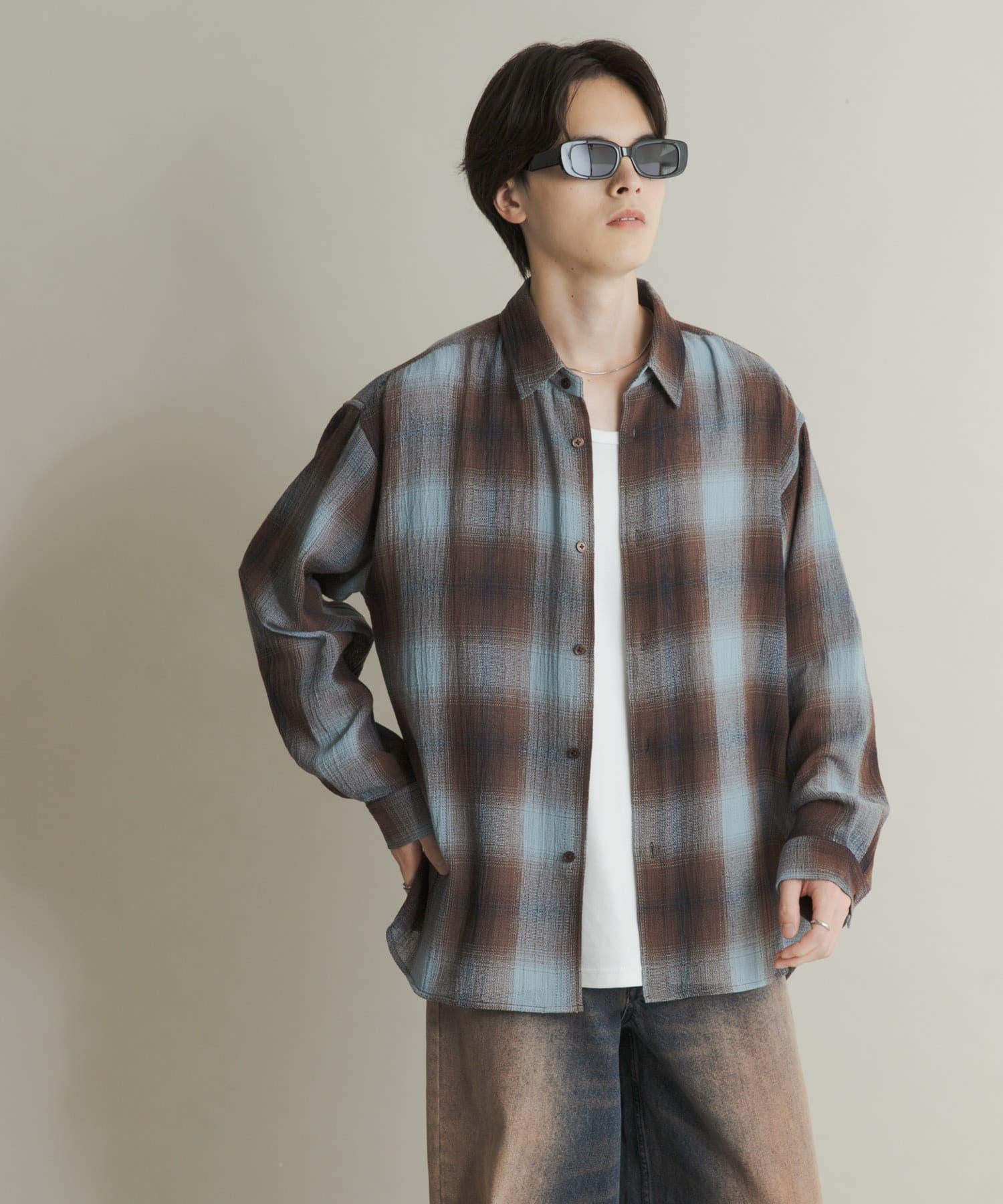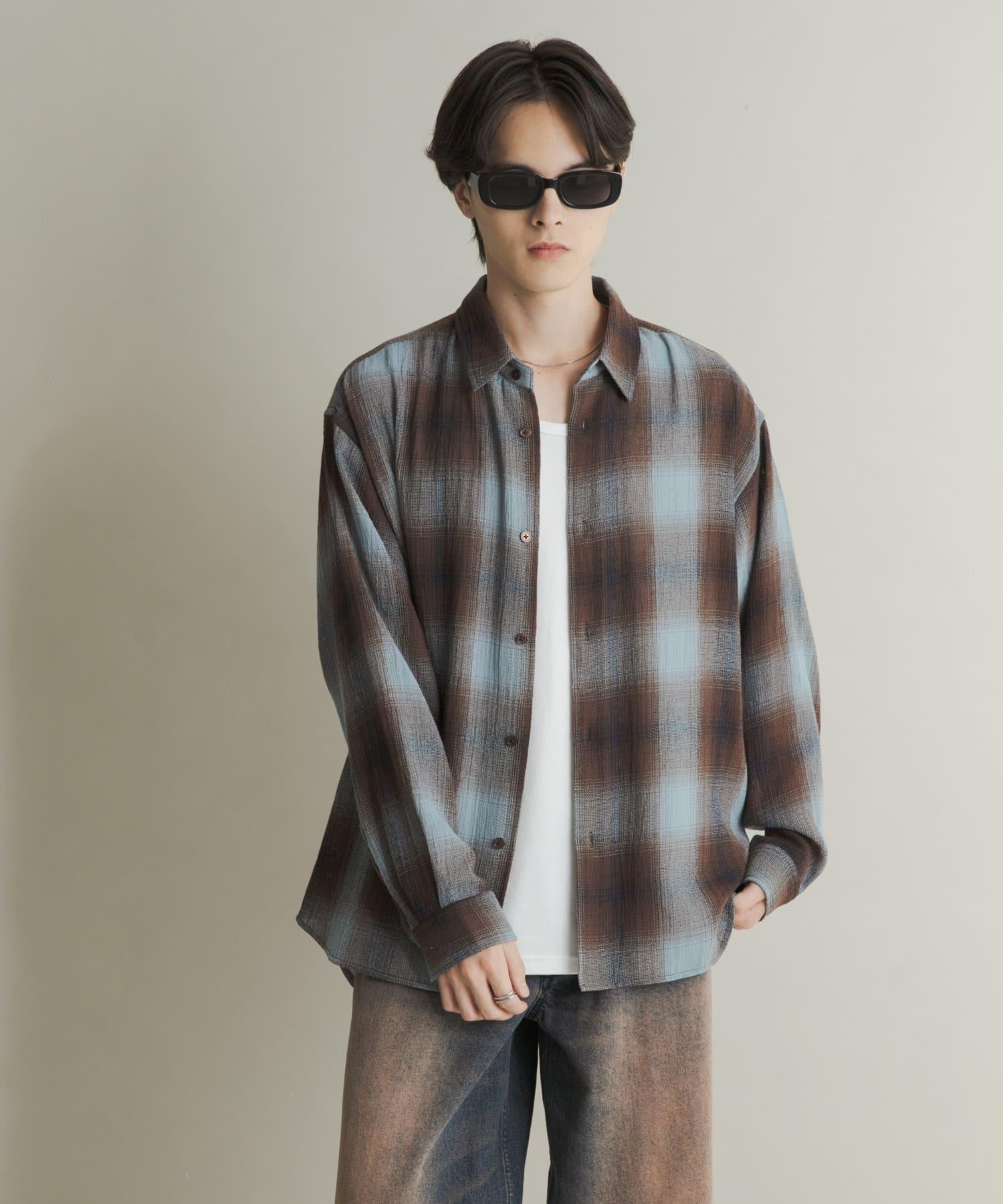 漸變格紋常規領襯衫