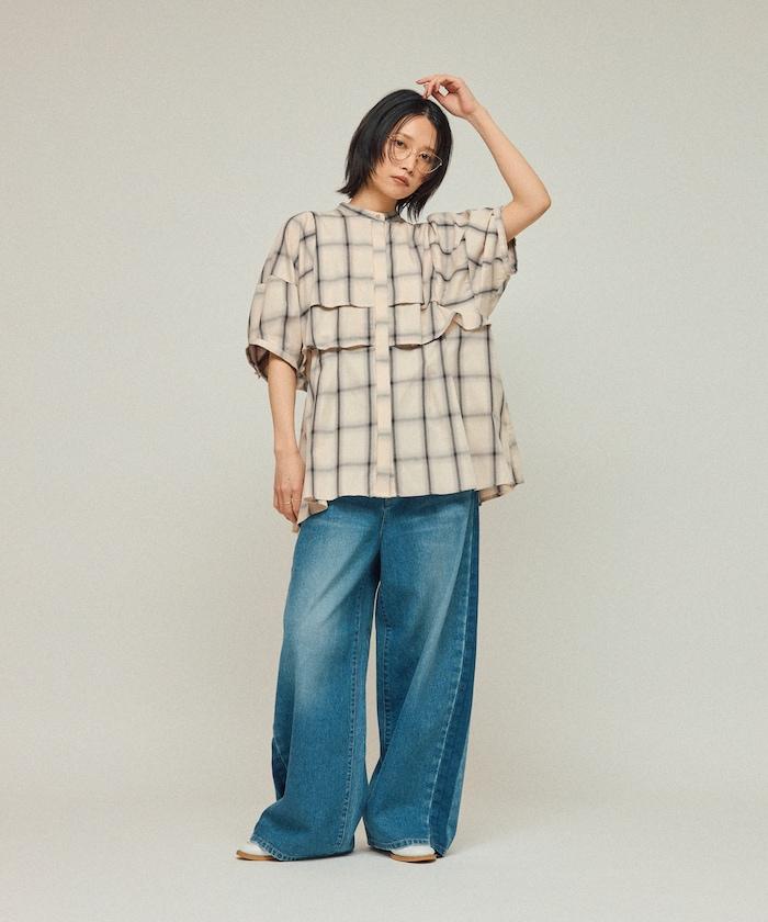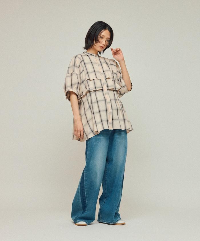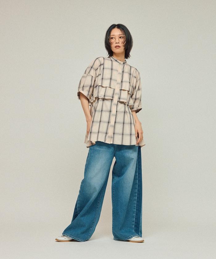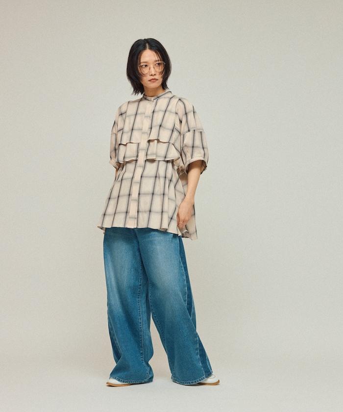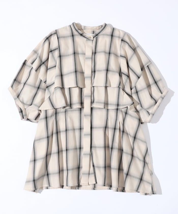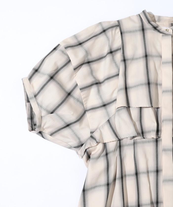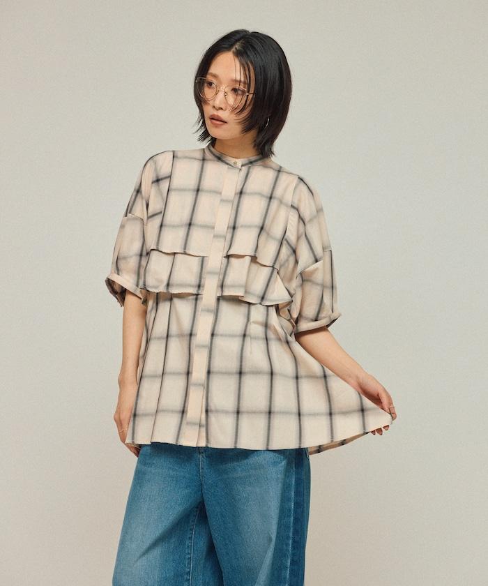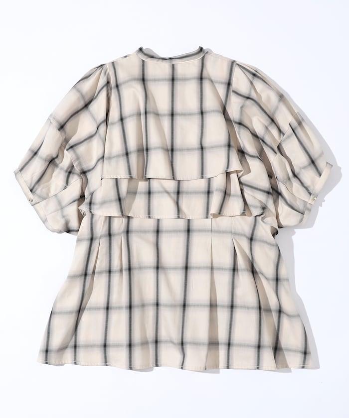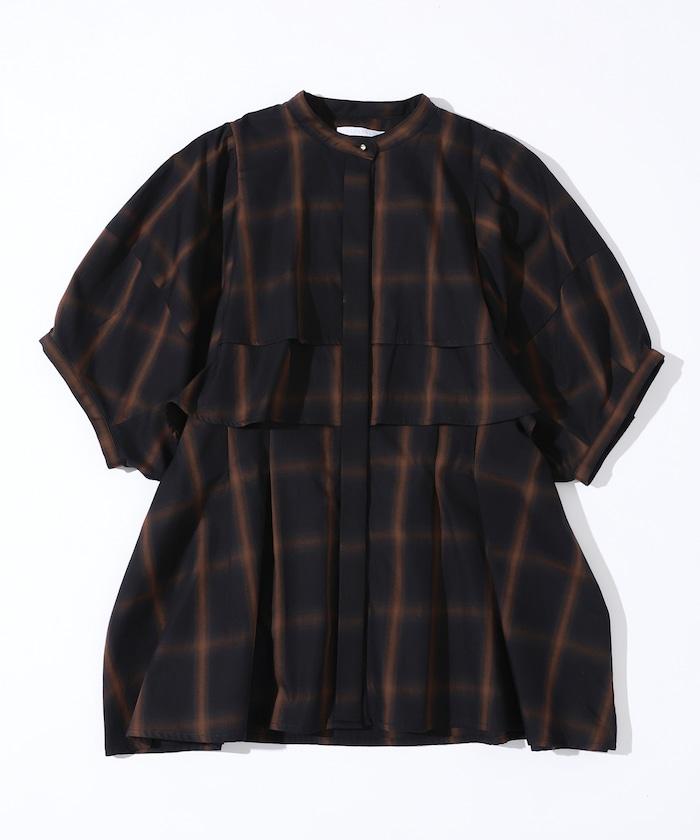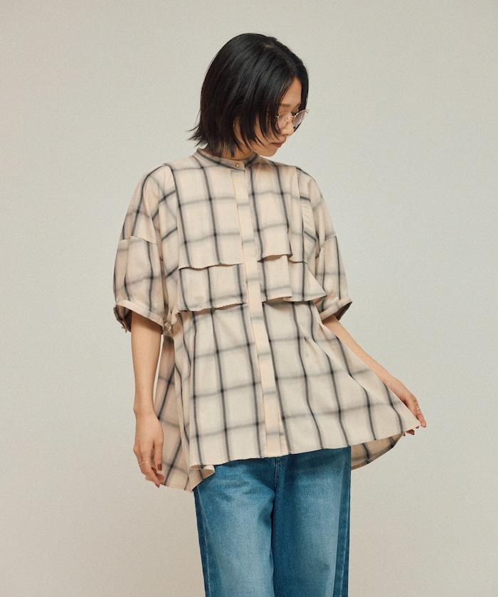 漸變格紋 波浪領襯衫 / 5分袖格紋襯衫