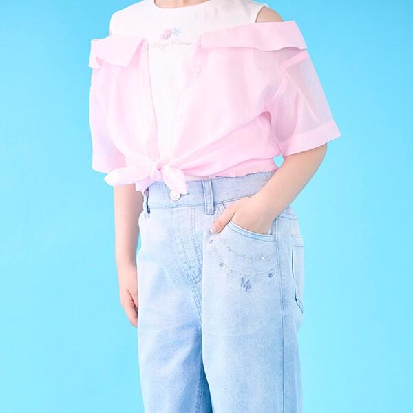 左側口袋開口處的鏈式刺繡鑲嵌著星星和水鑽,閃閃發光。