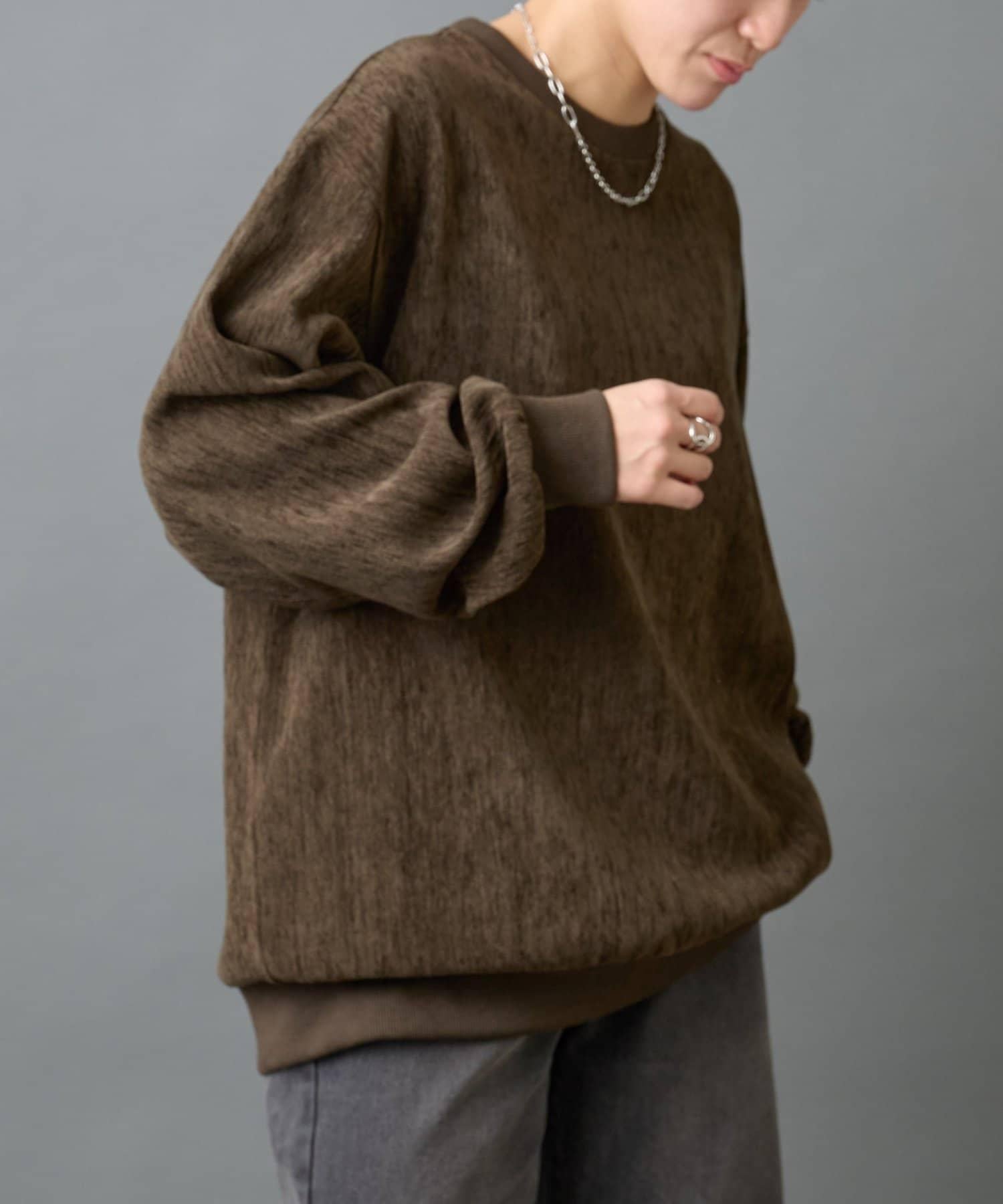 圓領套頭衫由柔軟蓬鬆的編織紗線製成。
