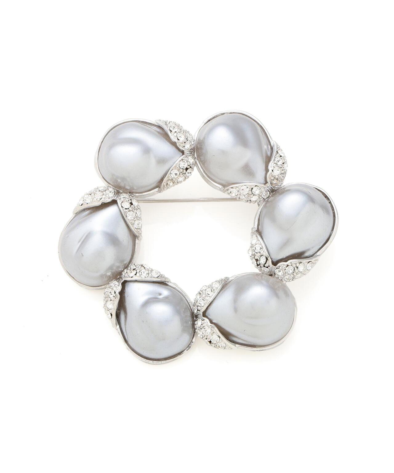 灰色圓形胸針,外觀精緻 灰色珍珠色胸針。胸針的自然形狀使其看起來像一顆真正的巴洛克珍珠,但它非常輕巧,可以搭配高規格的針織衫。
