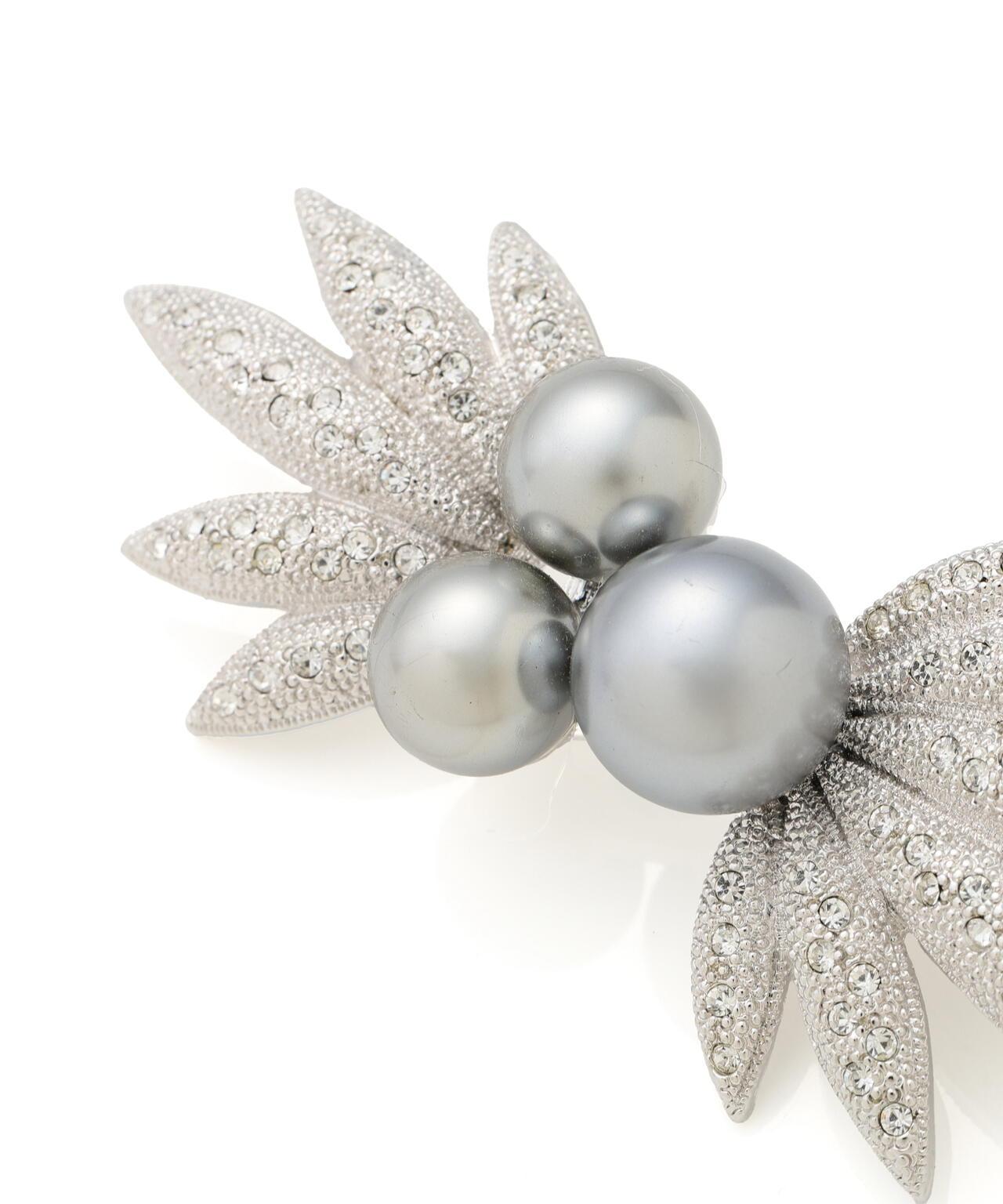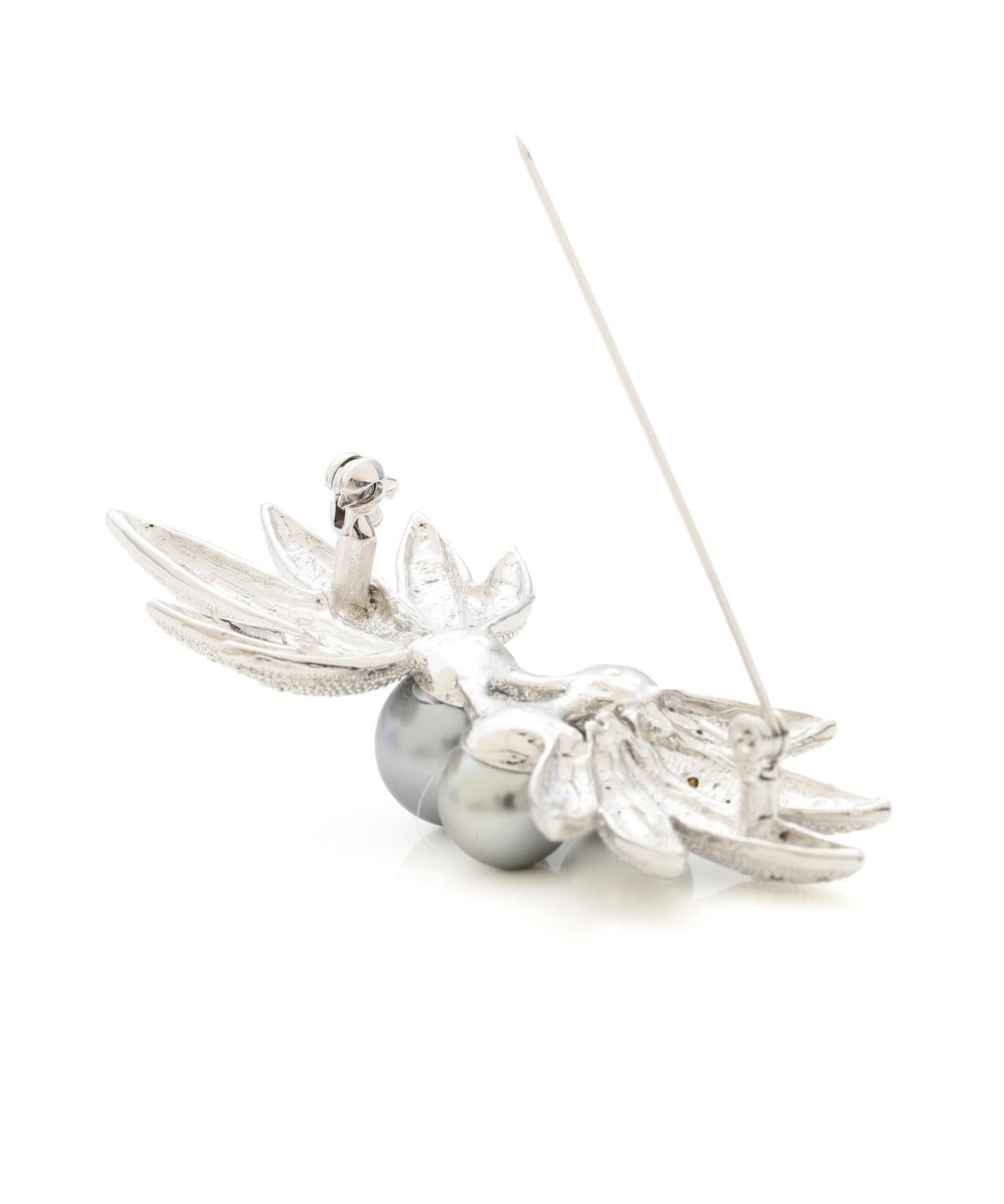 絲帶形狀的胸針增添了一絲魅力。這款胸針佩戴在中間位置時非常均衡,比如作為鑰匙領的點綴,或者以領結的樣式加在襯衫領上。