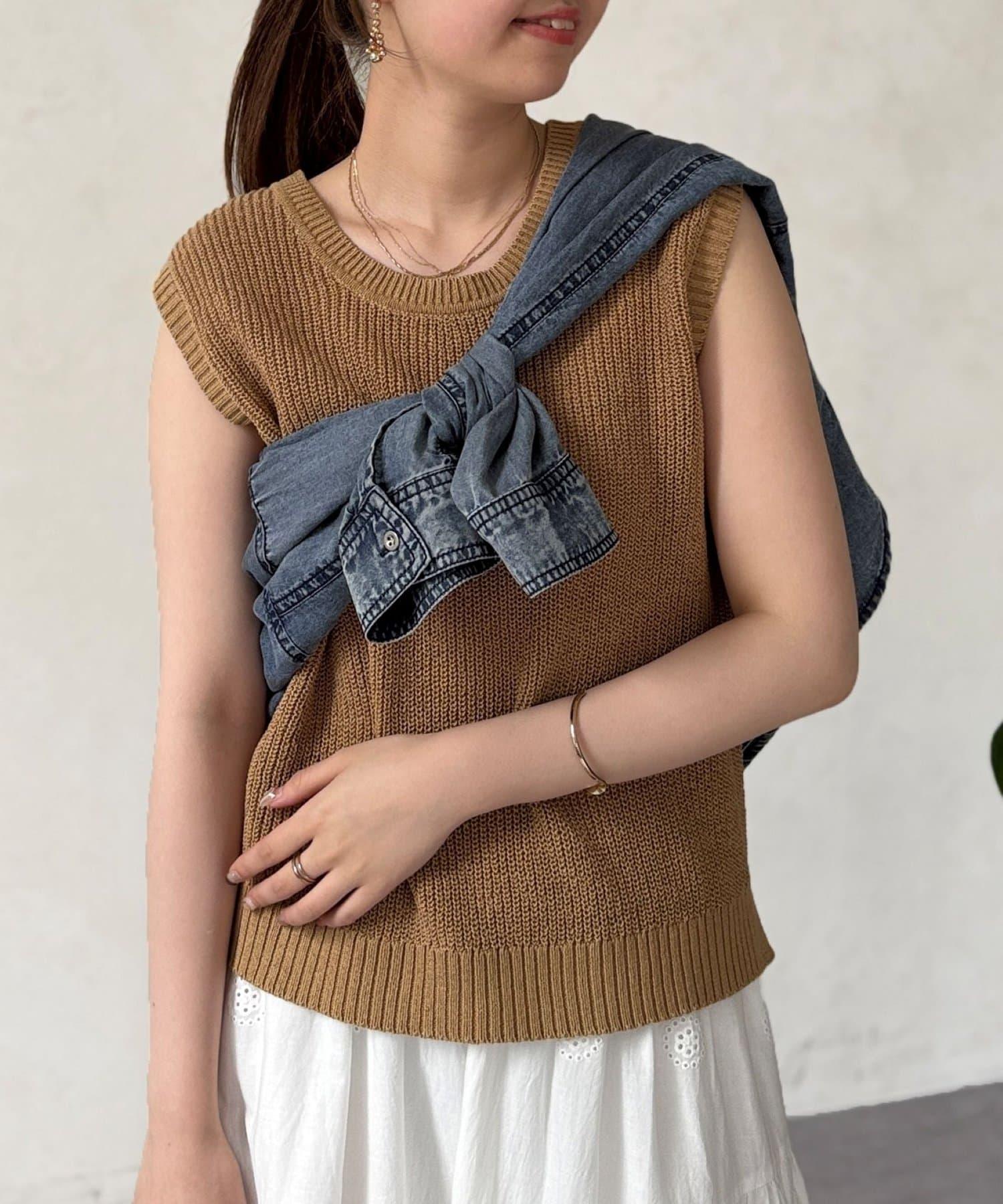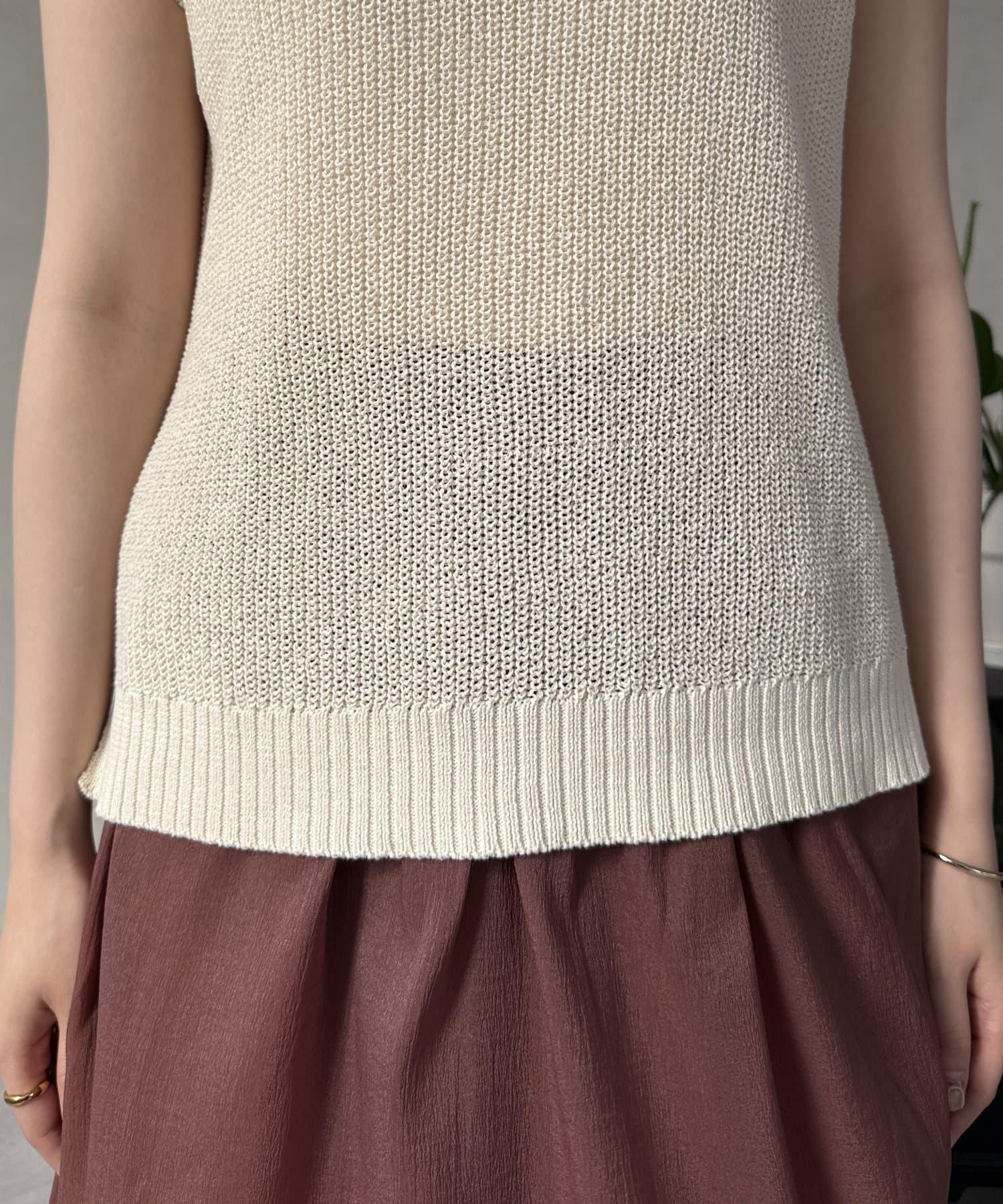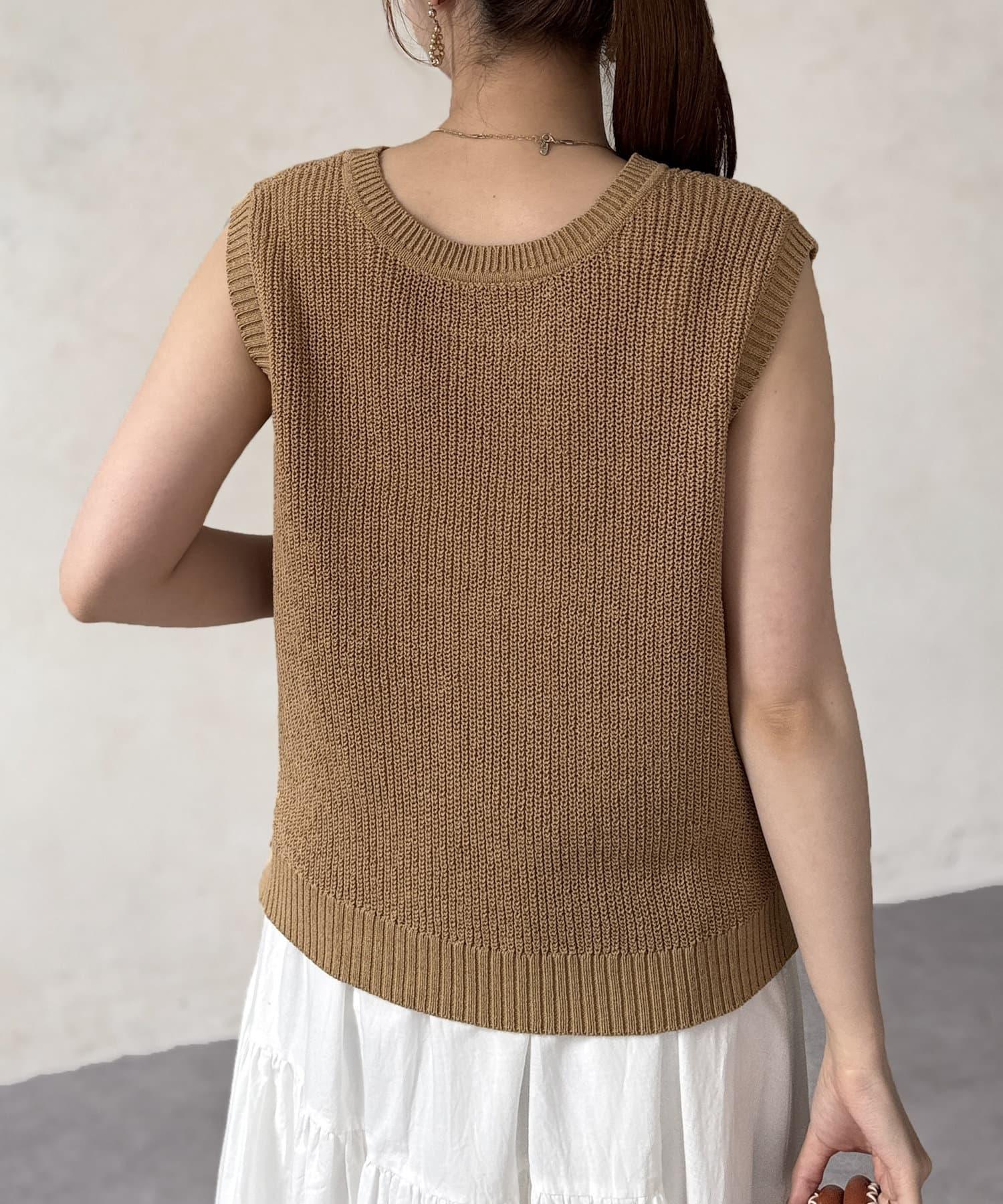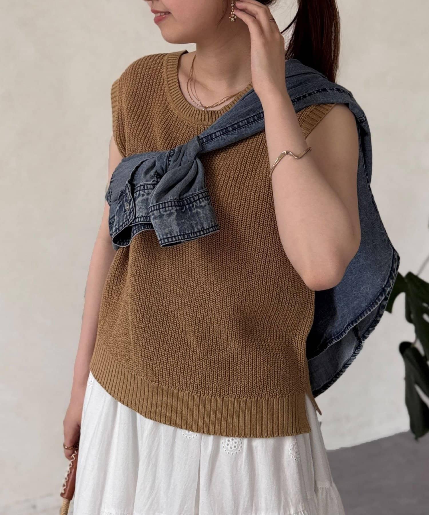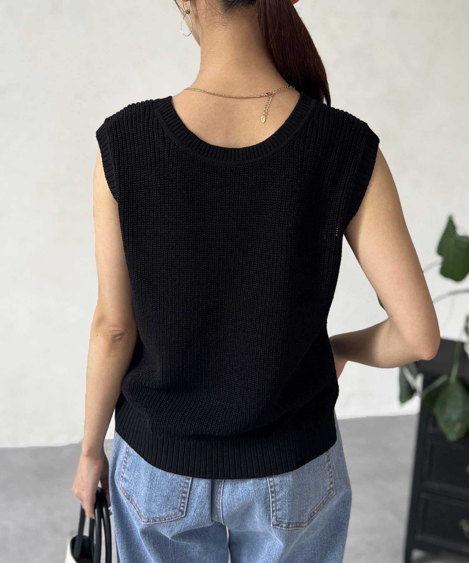 無袖針織衫,版型寬鬆,不挑身材線條。