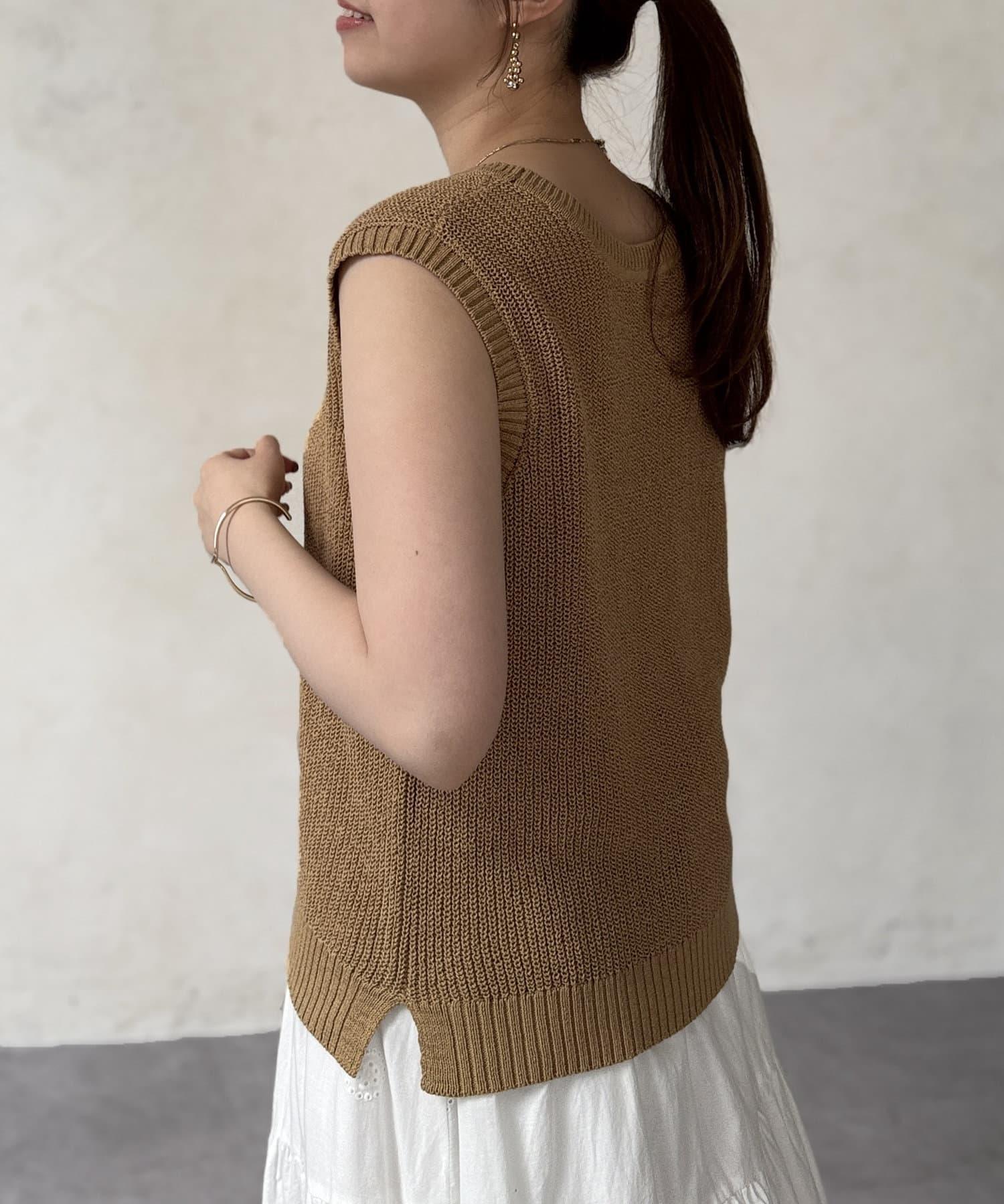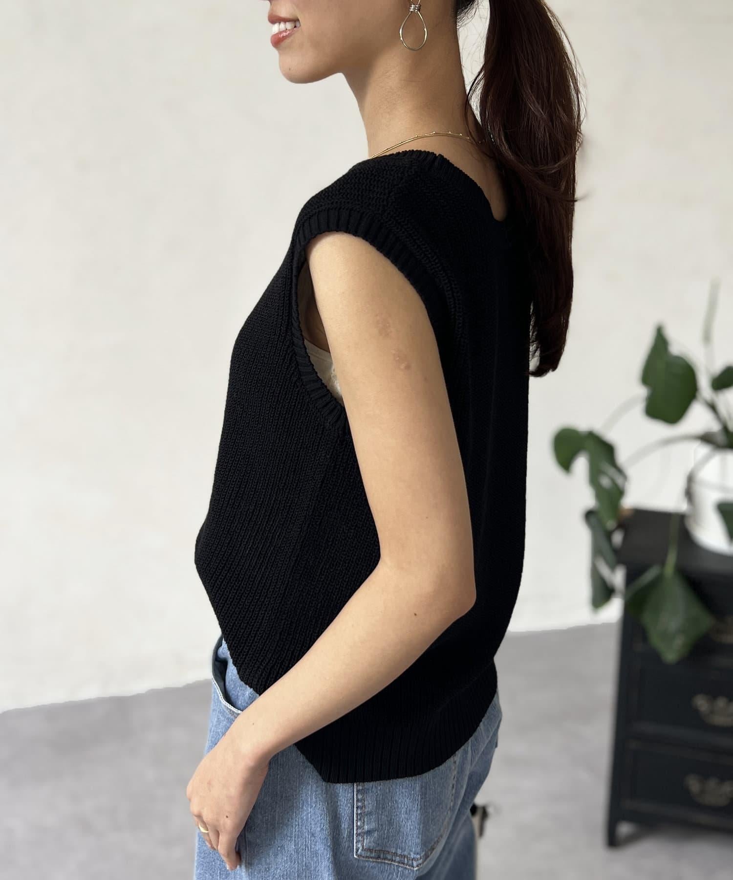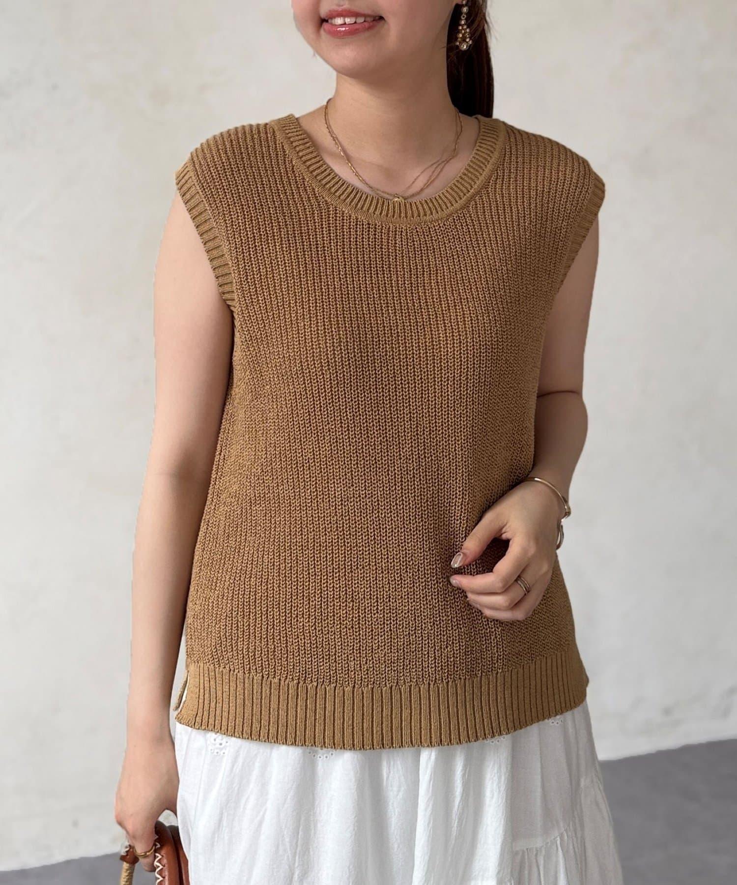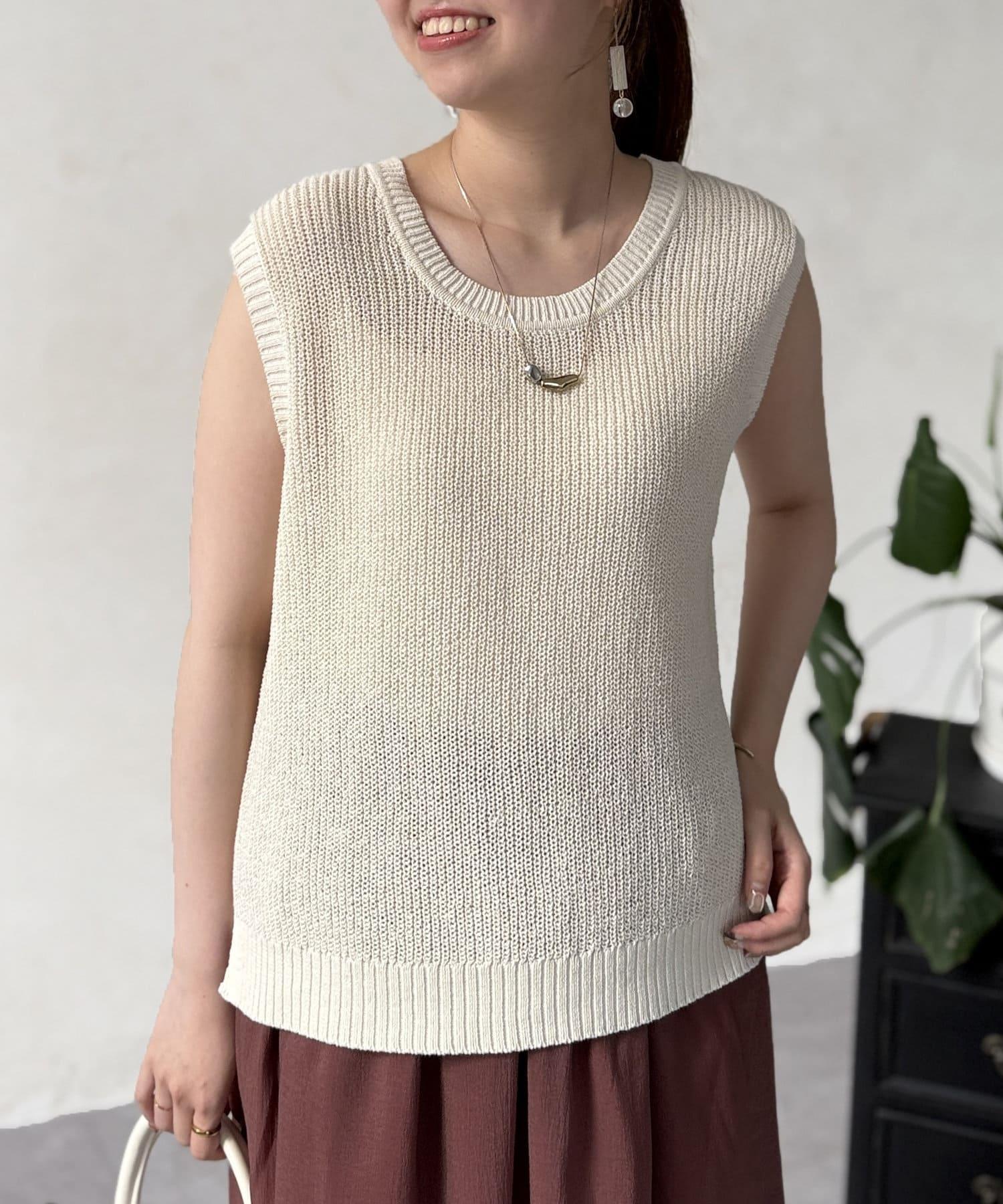 無袖針織衫,版型寬鬆,不挑身材線條。