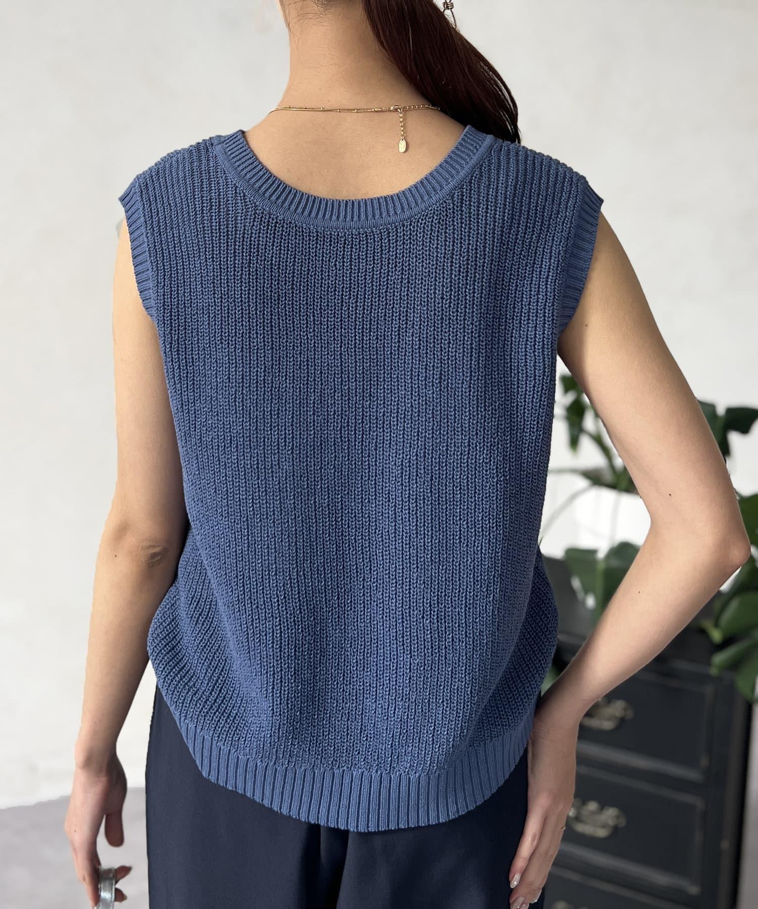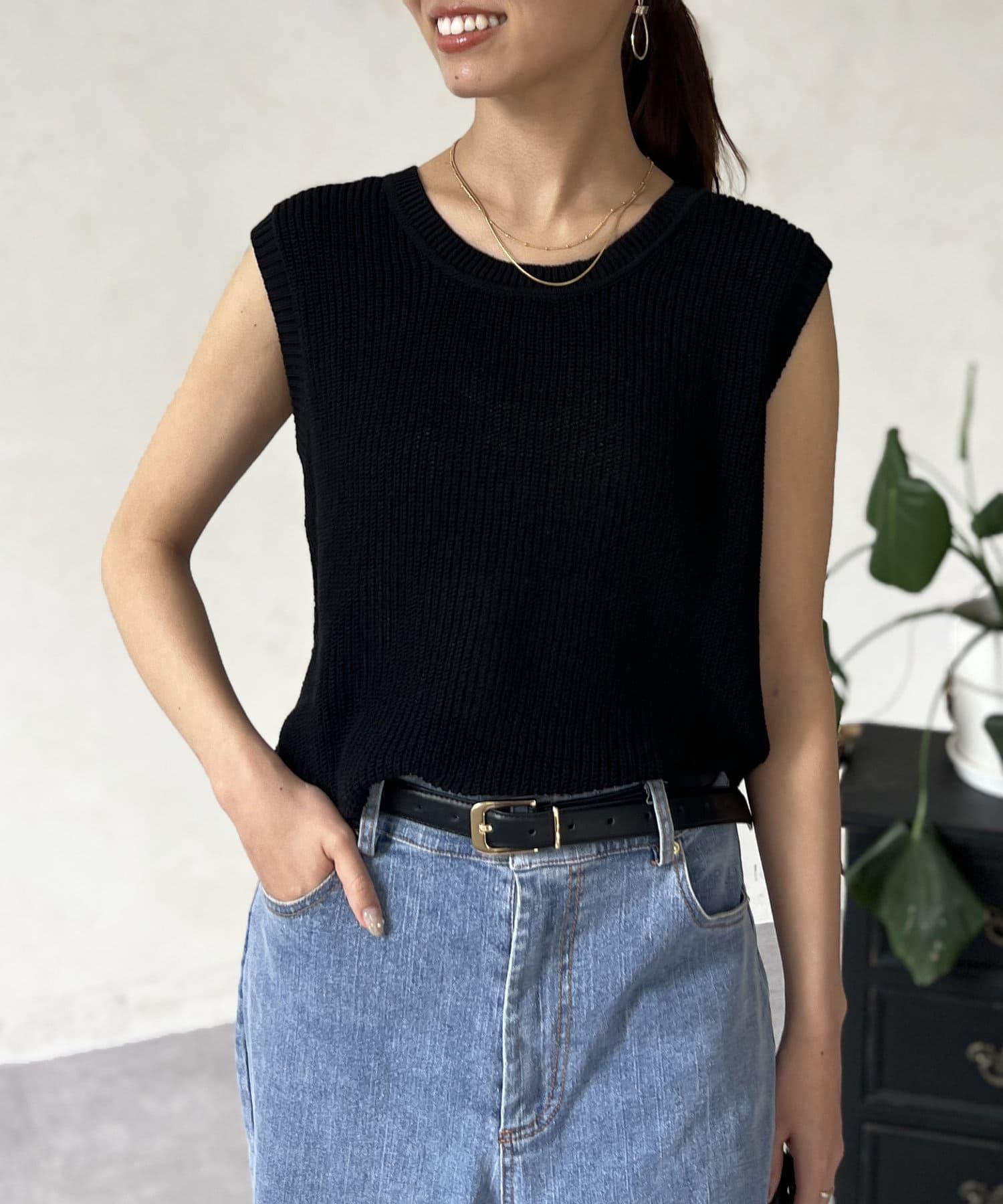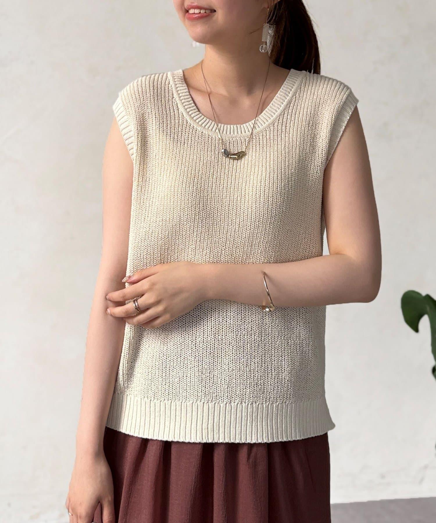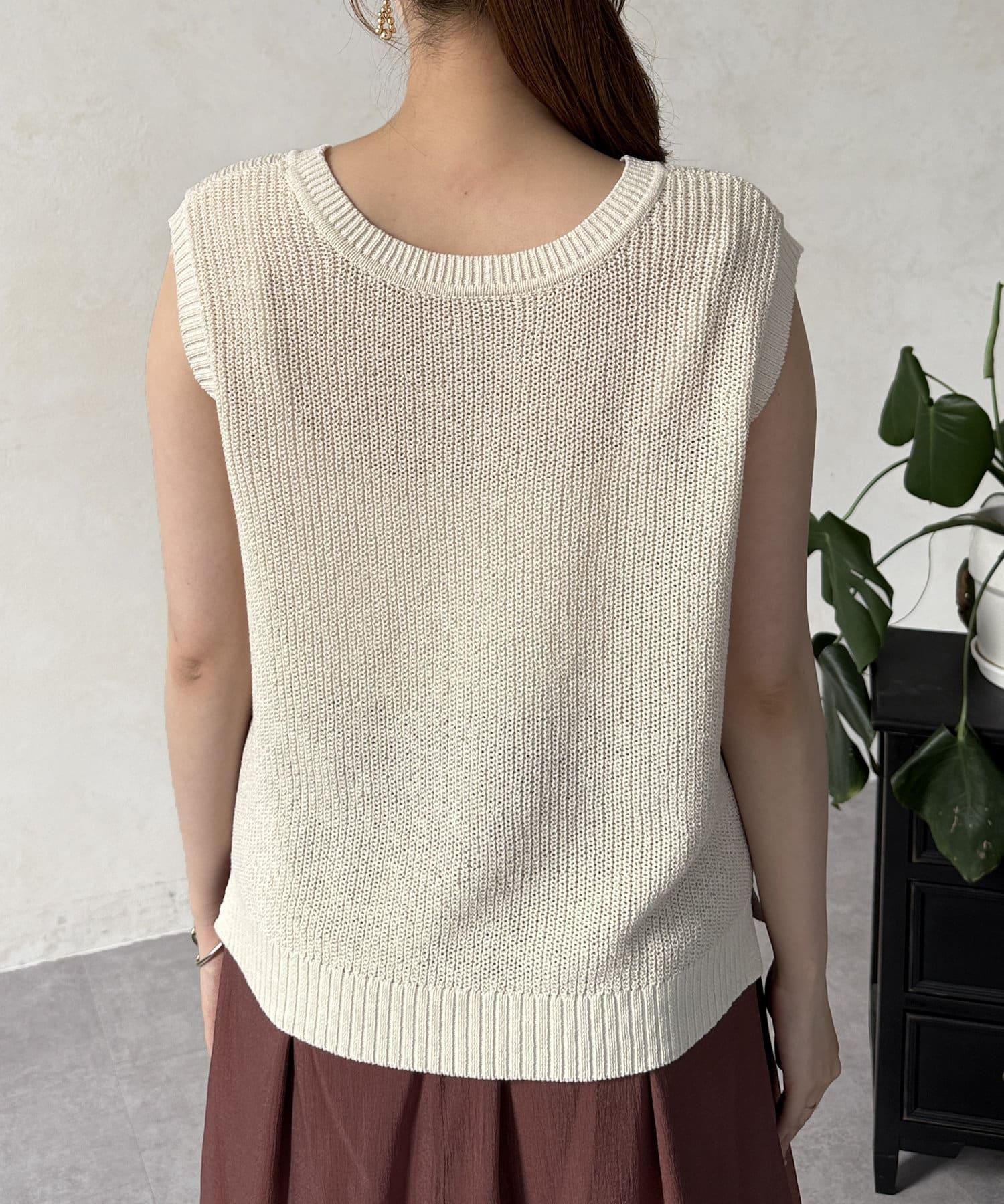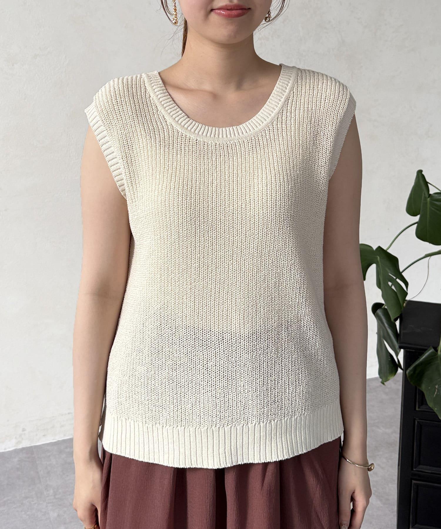 無袖針織衫,版型寬鬆,不挑身材線條。