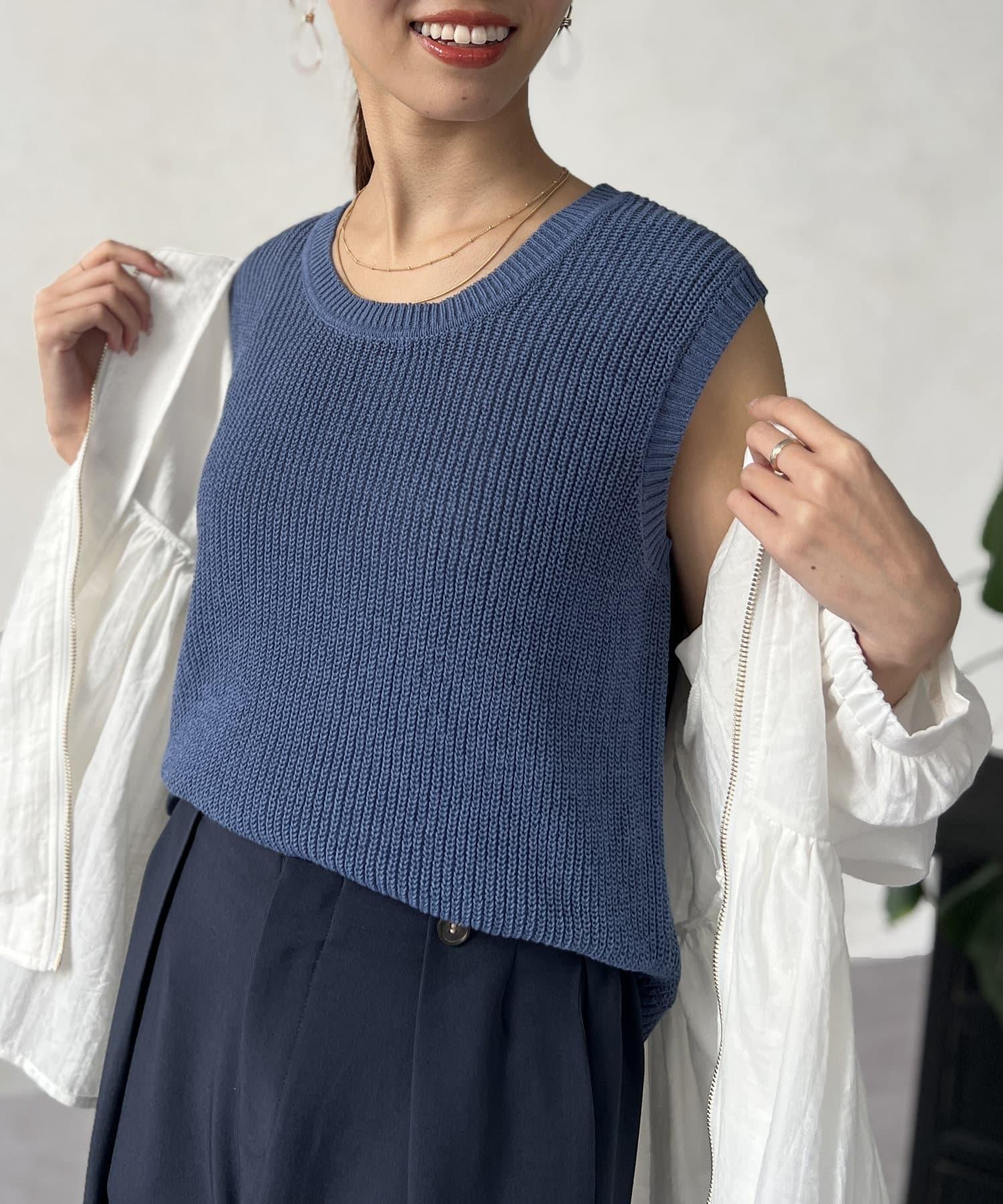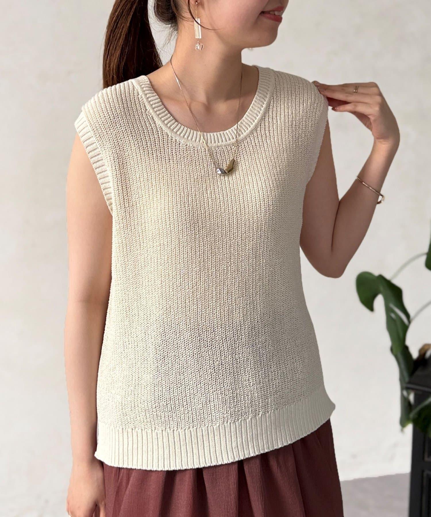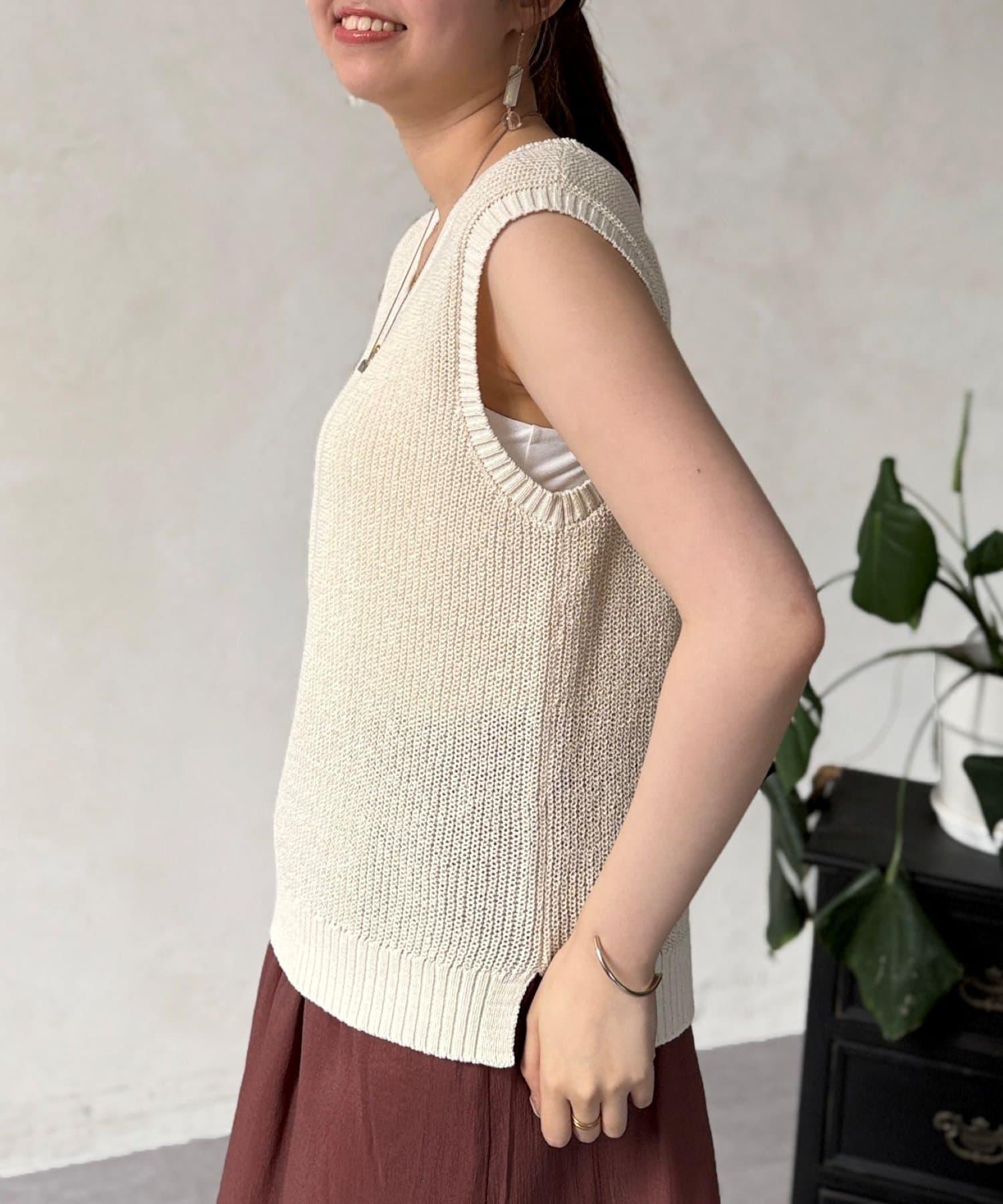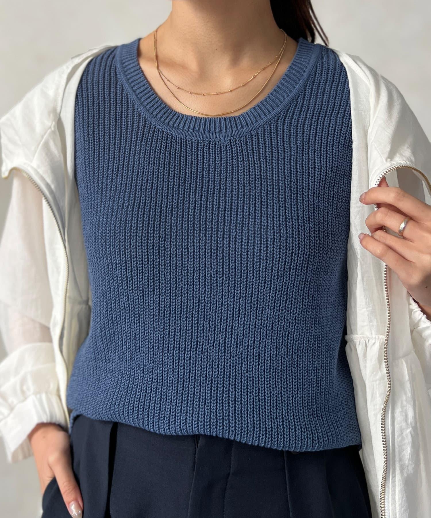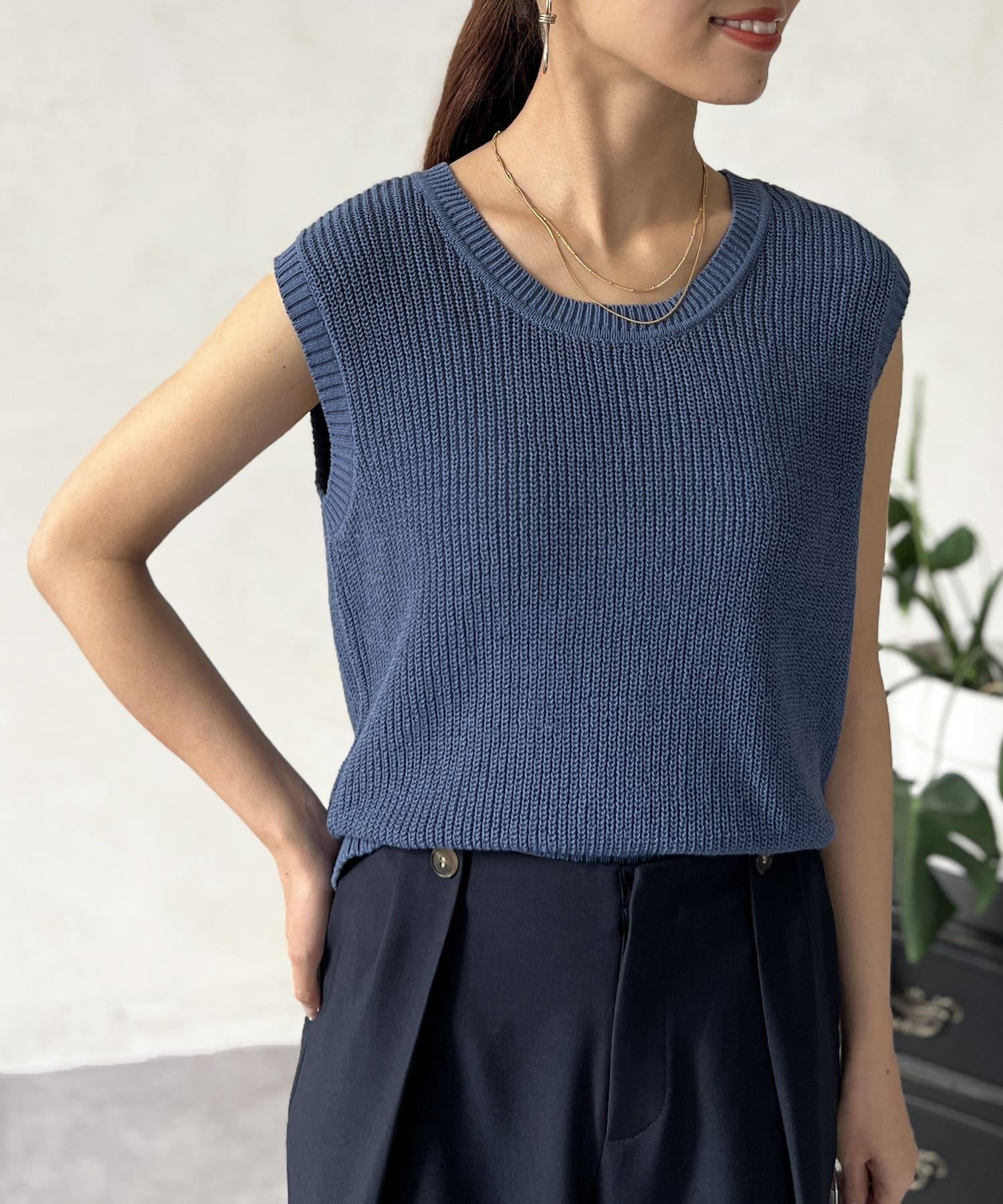 無袖針織衫,版型寬鬆,不挑身材線條。