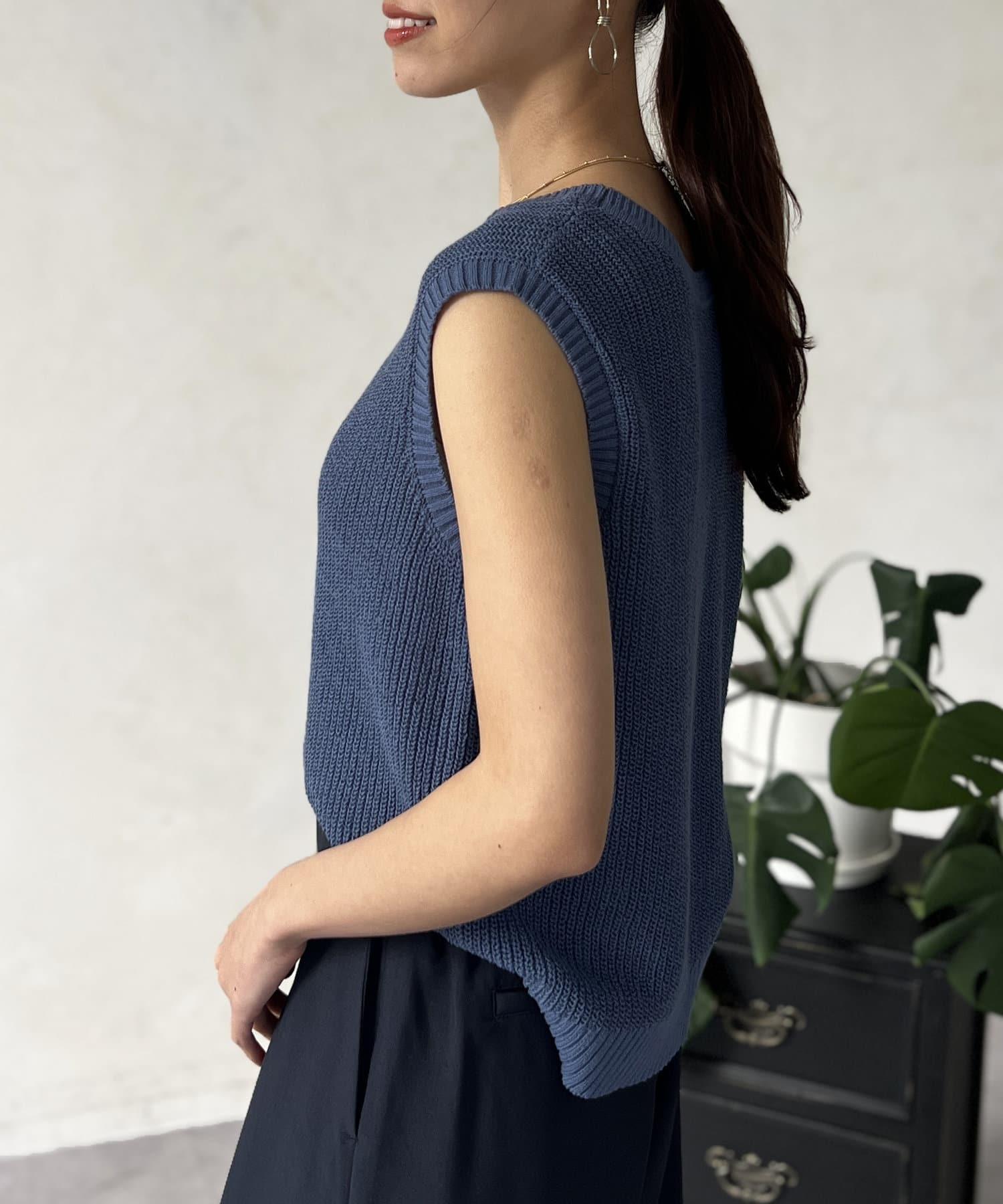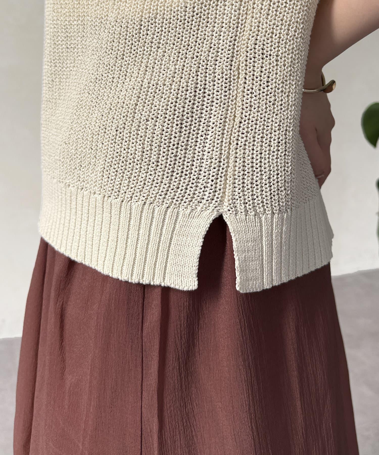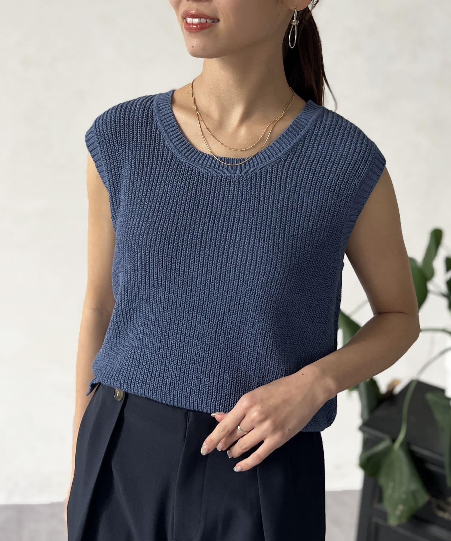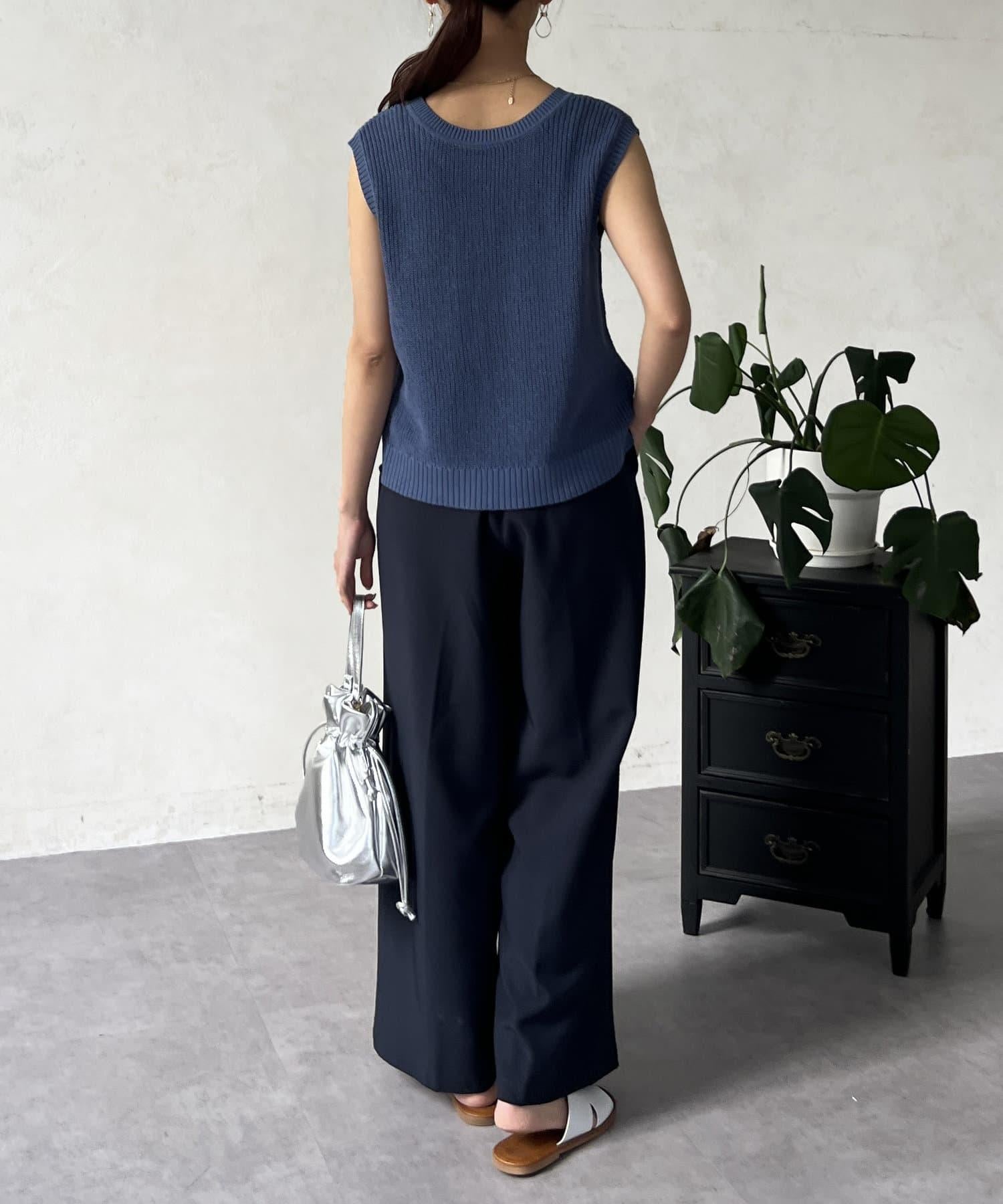 無袖針織衫,版型寬鬆,不挑身材線條。